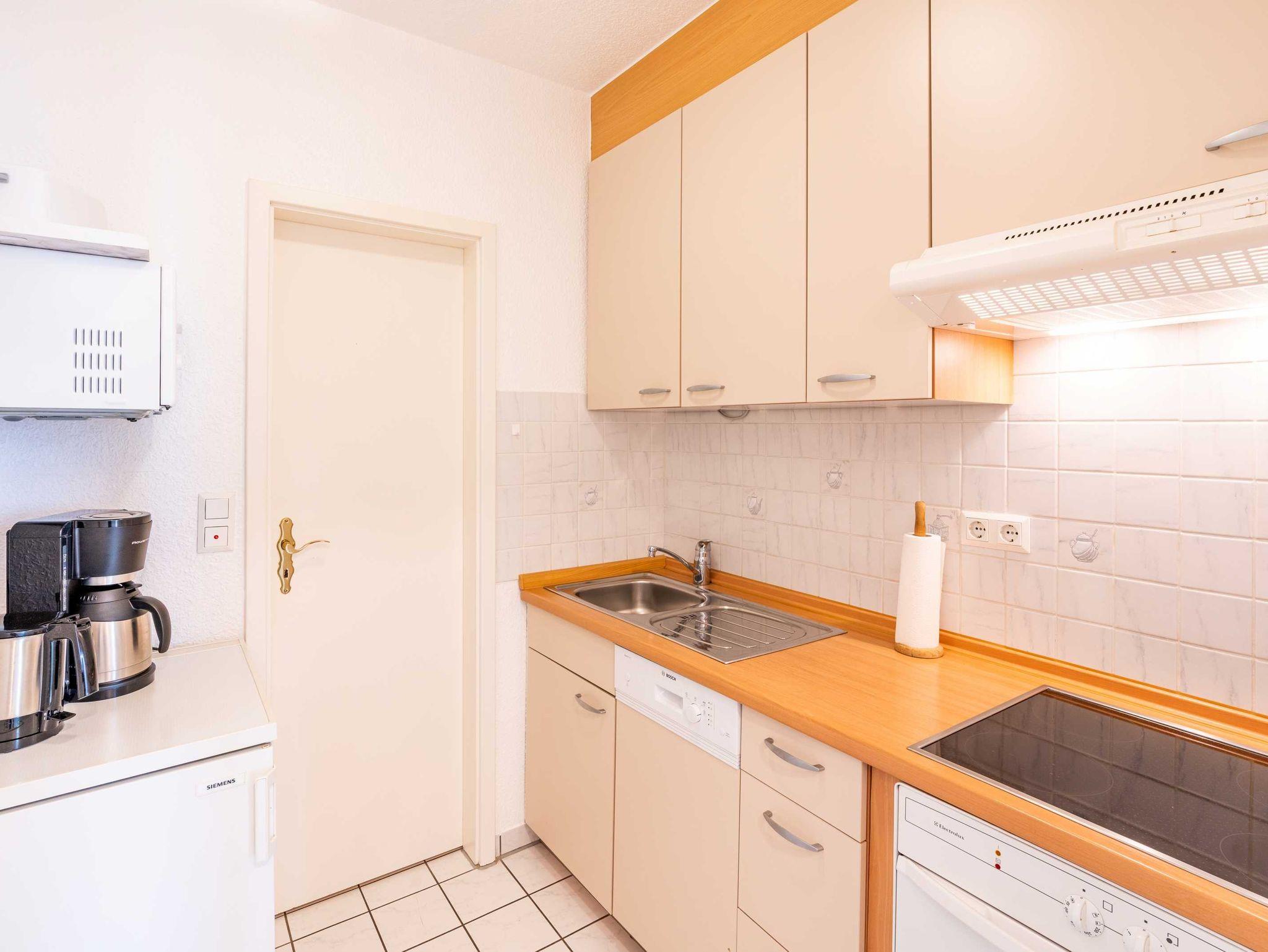 Die 44m² große Ferienwohnung im Erdgeschoss bietet Platz für 2 Personen. Sie verfügt über ein Wohnzimmer mit gemütlicher Couch und Flachbild-TV sowie ein Schlafzimmer mit Doppelbett. Die voll ausgestattete Ceranherd, Backofen, Geschirrspüler, Wasserkocher, Kaffeemaschine usw. lässt keine Wünsche offen. Das Bad hat DU/WC. Das Highlight der Wohnung ist die geschlossene Veranda mit angrenzender Terrasse.