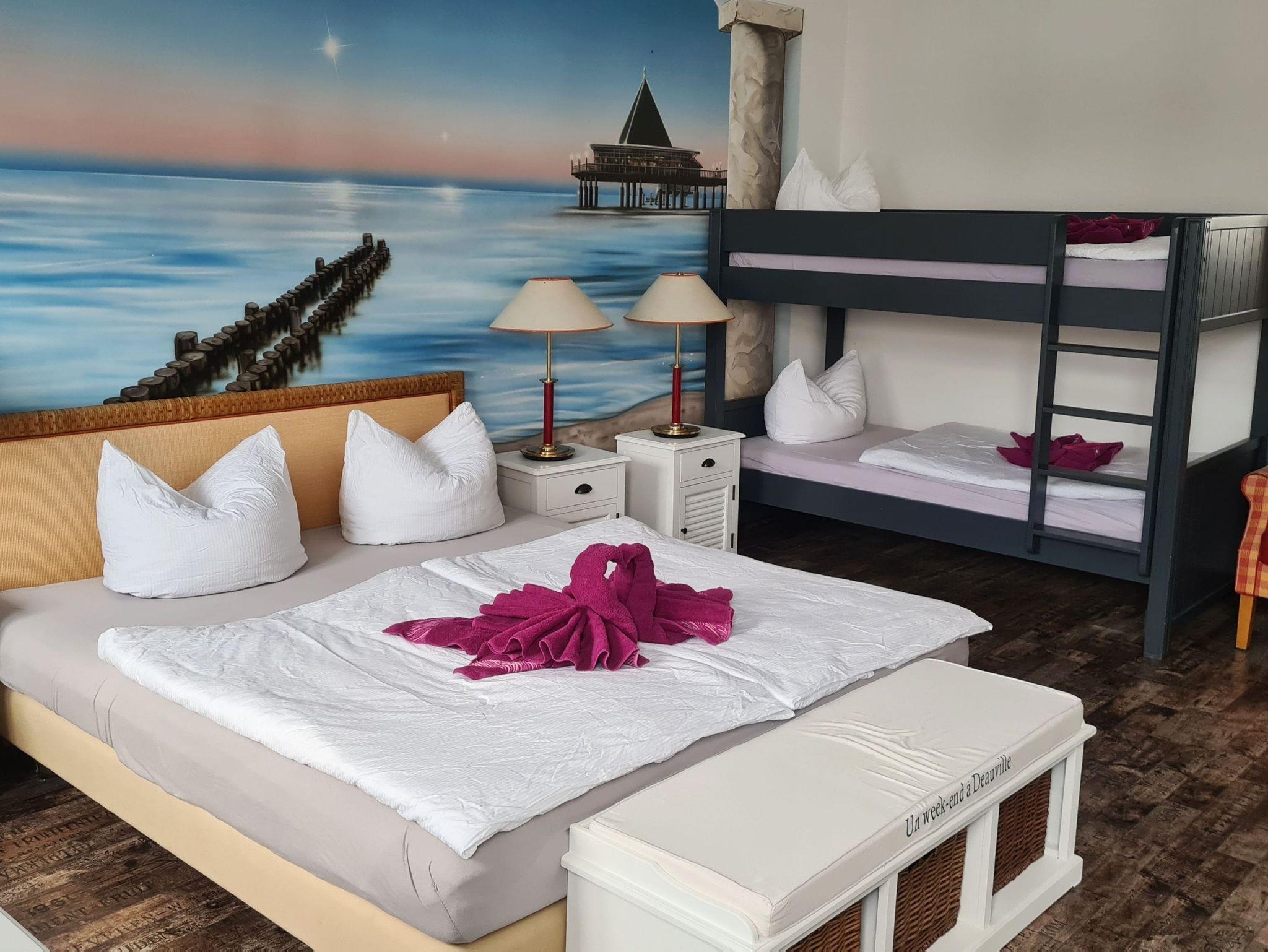 Im Erdgeschoss des Hauses befindet sich unser Fischrestaurant, Ihren PKW und Ihre Fahrräder können Sie auf unserem Hof (mit angrenzendem Biergarten) abstellen. Auf Wunsch können Sie Frühstück vor Ort für 10 pro Person hinzubuchen.