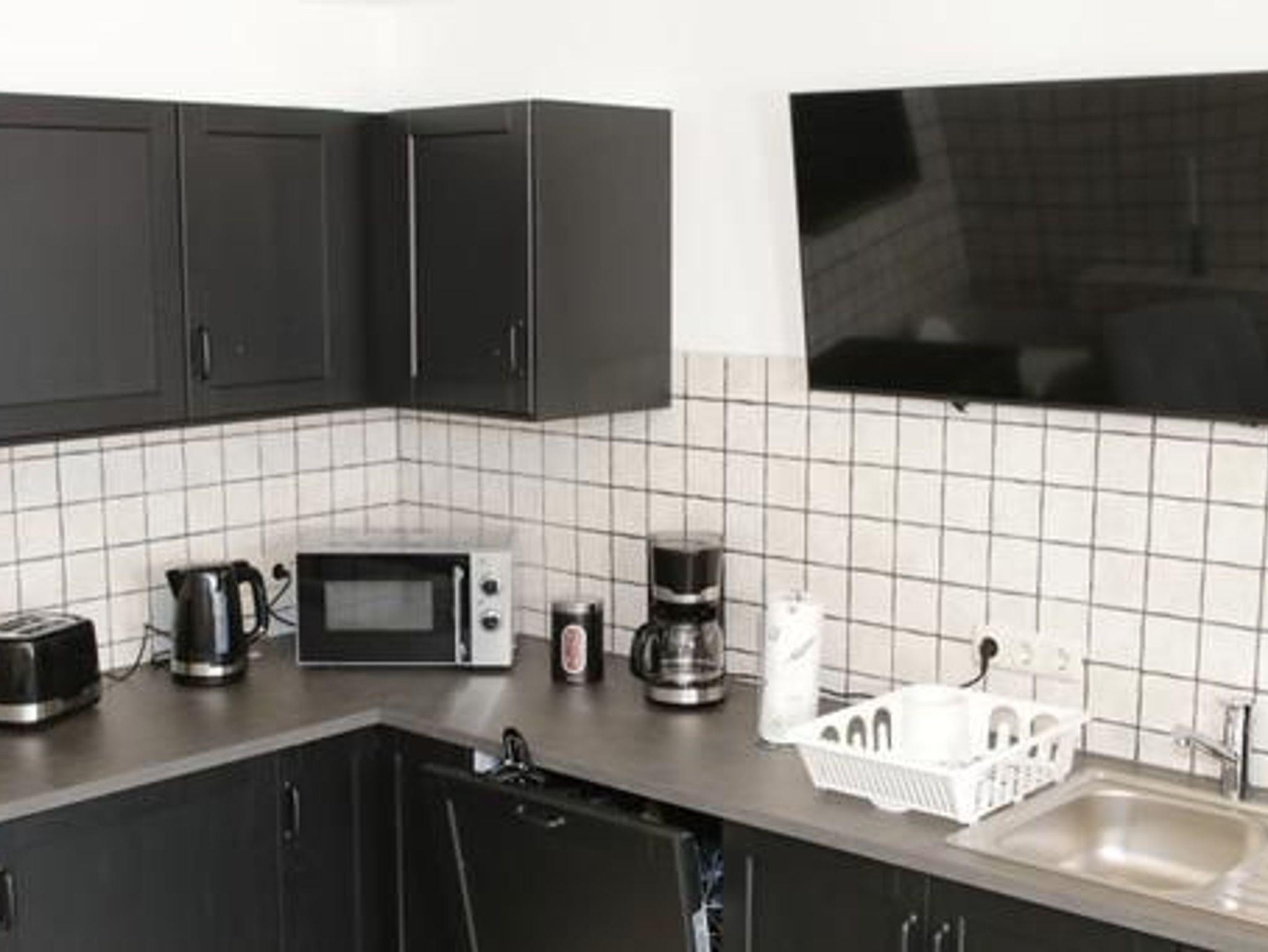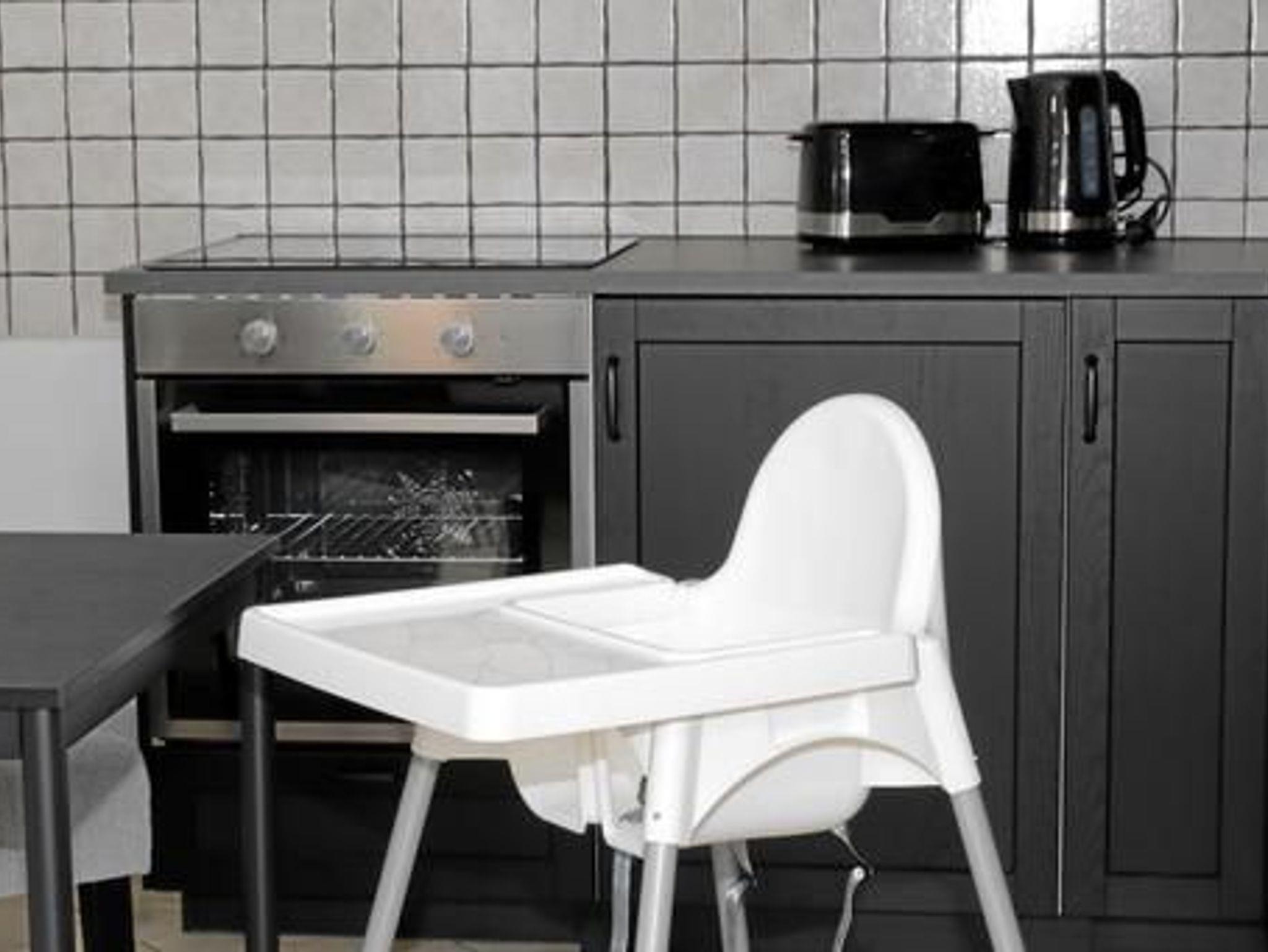 • Küche mit Fenster, Kühlschrank mit Eisfach, Mikrowelle, Kaffeemaschine, Wasserkocher, Toaster, Eierkocher, Mixer, Herd mit 4 Platten, Essecke, Flachbildfernseher/Kabelanschluss, HiFi/CD Player, superkomfortables Dauerschläfer-Schlafsofa für 2 Personen + 1 Babybett