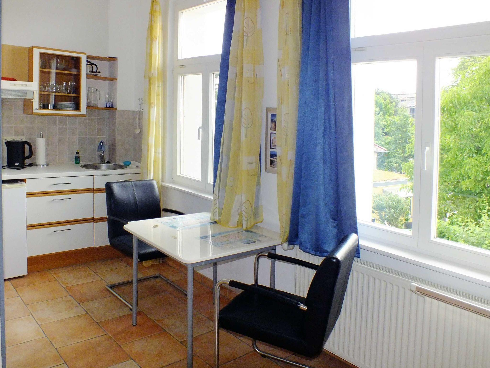 Die Appartements sind alle unterschiedlich in Zuschnitt und Einrichtung. - NICHTRAUCHERHAUS - Rauchen ist ausschließlich außerhalb des Hauses möglich. Auf der Hofseite befinden sich eine Gemeinschaftsterrasse mit Tischen und Liegestühlen sowie eine kleine Grünfläche mit einer Schaukel und Sandkasten für die kleinen Gäste. Eine Grillmöglichkeit steht Ihnen außerdem zur Verfügung, für die Nutzung bitten wir Sie sich mit anderen Mietern abzusprechen.