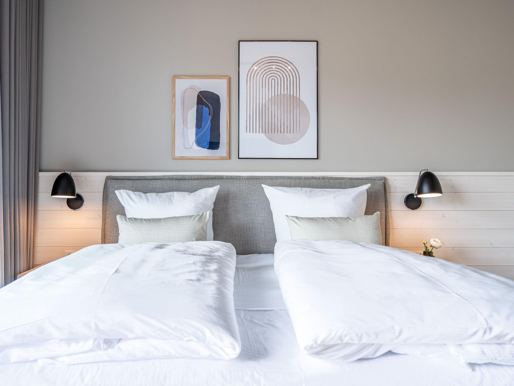 Die 2024 fertig gestellte Strandterrasse liegt direkt an der belebten Strandpromenade und bietet einen einzigartigen Ausblick auf die Grand Dame der historischen Seebrücken sowie die historische Konzertmuschel, einem beliebten Treffpunkt für Kunst und Kultur. Dahinter liegt die Ostsee ? ein Panorama, das zu den schönsten in den Kaiserbädern gehört. Es ist wie das Abtauchen in eine andere Zeit. In eine Zeit, in der man mit Stock, Sonnenschirm und Hut fürs „Sehen und gesehen werden“ über die Promenade schlenderte; aber auch in eine Zeit, in der ? damals wie heute ? Zeit einmal für eine kurze Weile keine Rolle spielt. Weil man angekommen ist im Loslassen, Entspannen und Genießen. Es ist dieser besondere Geruch nach Meeresluft und Freiheit, der in Erinnerung bleibt. Dazu die Bilder, die man mitnimmt. Von langen Strandspaziergängen, vom Lachen in fröhlich schäumenden Ostseewellen, von der Zeit in einem wunderschönen Urlaubsdomizil. Denn genau das ist die Strandterrasse mit ihren 56 modernen und exklusiven Ferienappartements direkt gegenüber der Ahlbecker Seebrücke. Die Ein-, Zwei- oder Dreizimmerwohnungen ? zwischen 40 und 70 Quadratmeter groß ? sind von einer Innenarchitektin gemeinsam mit unserem Erfahrungsschatz an Gästewünschen mit viel Liebe zum Detail und ganz individuell konzipiert worden. Entspannung und Wohlfühlen stehen an erster Stelle. Alles ist aufeinander abgestimmt und sorgt für eine gemütliche Atmosphäre. Wählen Sie zwischen einem Domizil in einem hellen, sandfarbenen Designkonzept oder einem Appartement mit anthrazitfarbenen Farbakzenten. Alle Appartements verfügen gleichermaßen über eine stilvolle und komfortable Einrichtung, die passgenau angefertigt worden ist, sowie über moderne Küchen und Bäder. Jedem Schlafzimmer ist ein eigenes Bad mit Dusche zugeordnet (außer App. B4.5). Die Appartements besitzen fast alle einen Balkon ? viele schauen sogar zur Ostsee hinaus. Die meisten Feriendomizile haben einen Elektrokamin und Infrarotsaunen. Im Erdgeschoss befindet sich ein separater Gemeinschaftsraum für Fahrräder. Außerdem besteht die Möglichkeit, im Gemeinschaftswaschraum 2 Waschmaschinen [&] Trockner zu nutzen. Ergänzt wird das Angebot durch eine Gemeinschaftssauna, die täglich von 11:00 bis 22:00 Uhr nutzbar ist. In der Tiefgarage (Einfahrtshöhe 2,03 Meter) steht für jede Wohnung 1 Pkw-Stellplatz zur Verfügung. Ist alles zur Zufriedenheit untergebracht? Dann kann der Urlaub ja beginnen. Und beim Blick vom Balkon über die Ostsee treffen sich zum Sonnenaufgang das Heute und das Damals. Gelassenheit legt sich beim Gang hinunter an den Strand auf die Seele. Jetzt darf die Zeit stehenbleiben.