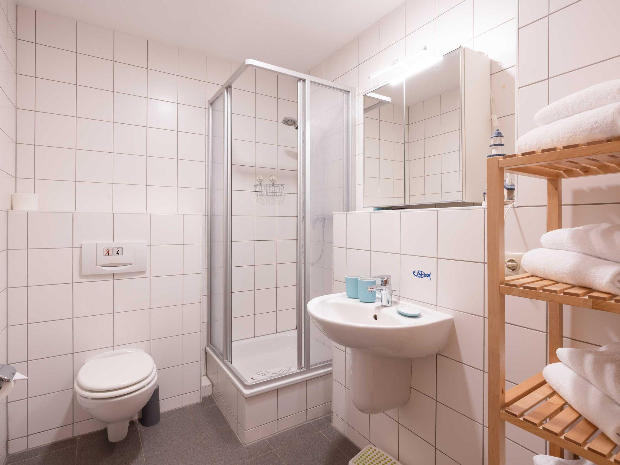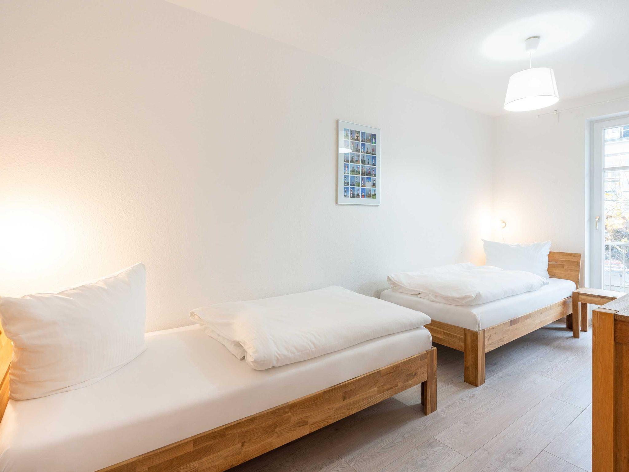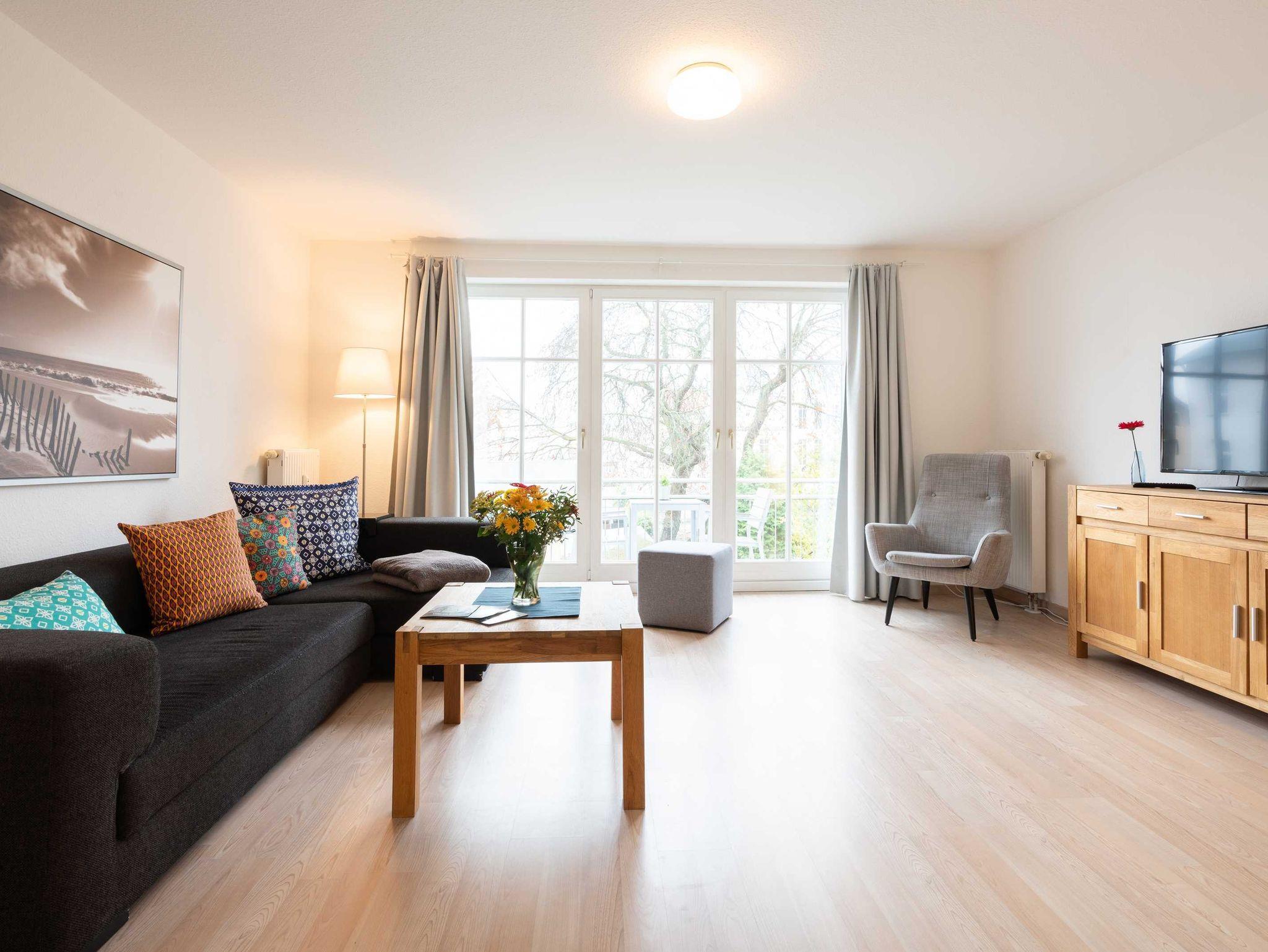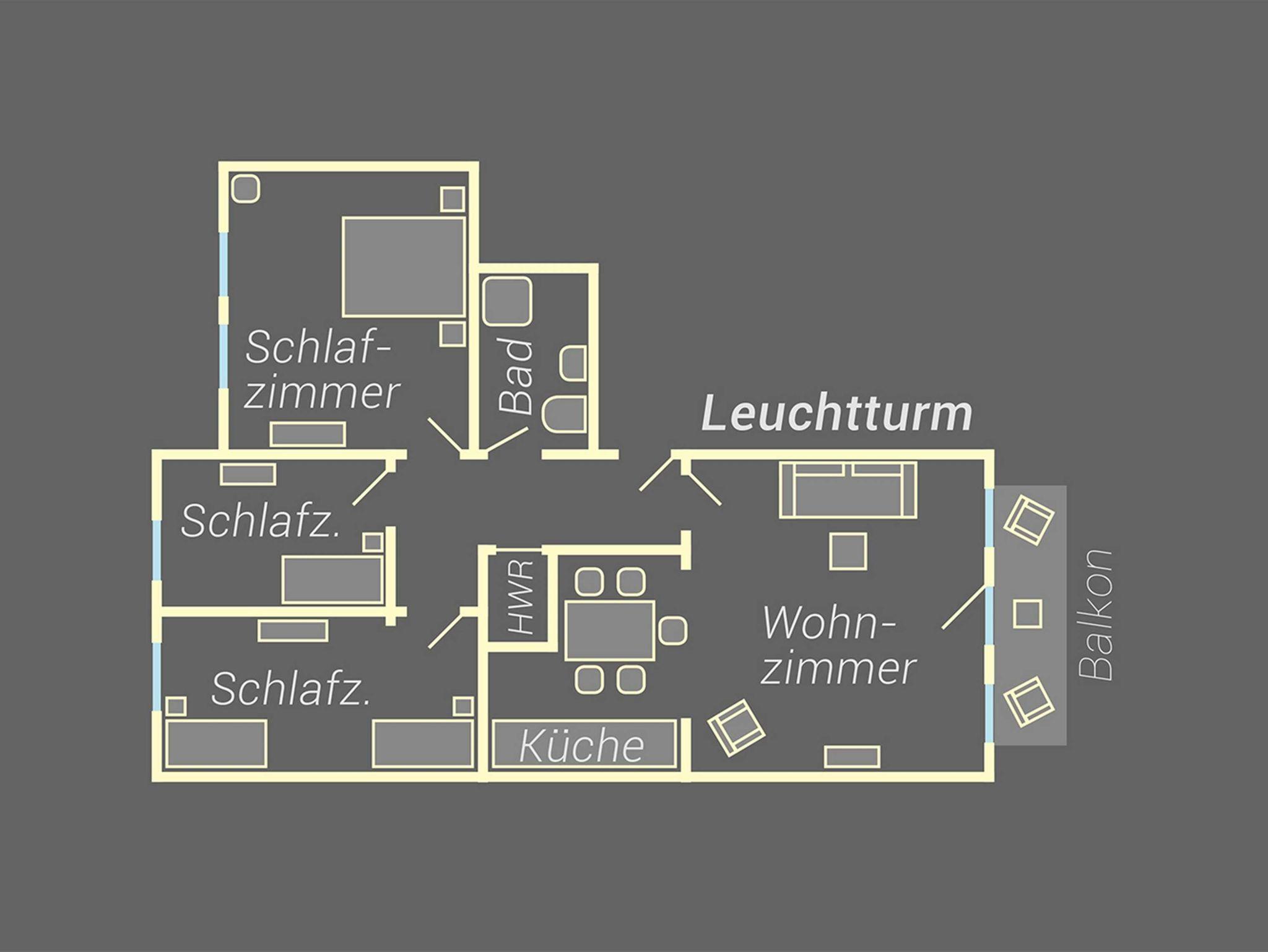 Das ca 80 qm große Appartement Leutturm verfügt über drei Schlafzimmer (ein Doppelbett, zwei Einzelbetten, ein Einzelbett), eine großzügige Küche und ein gemütliches Wohnzimmer. Bad mit Waschtisch, Dusche und WC. Vom Balkon hören Sie das beruhigende Rauschen der Ostsee.