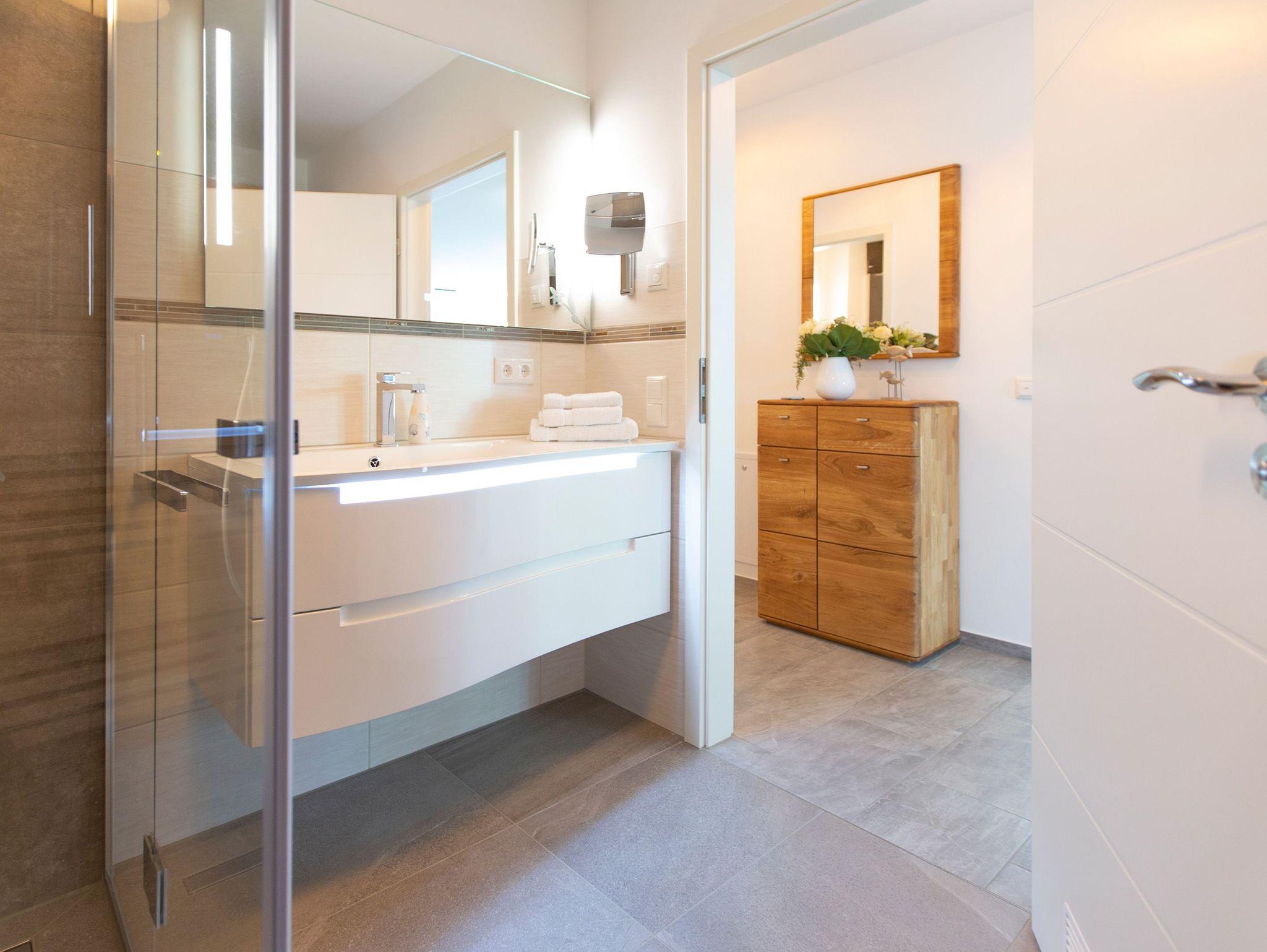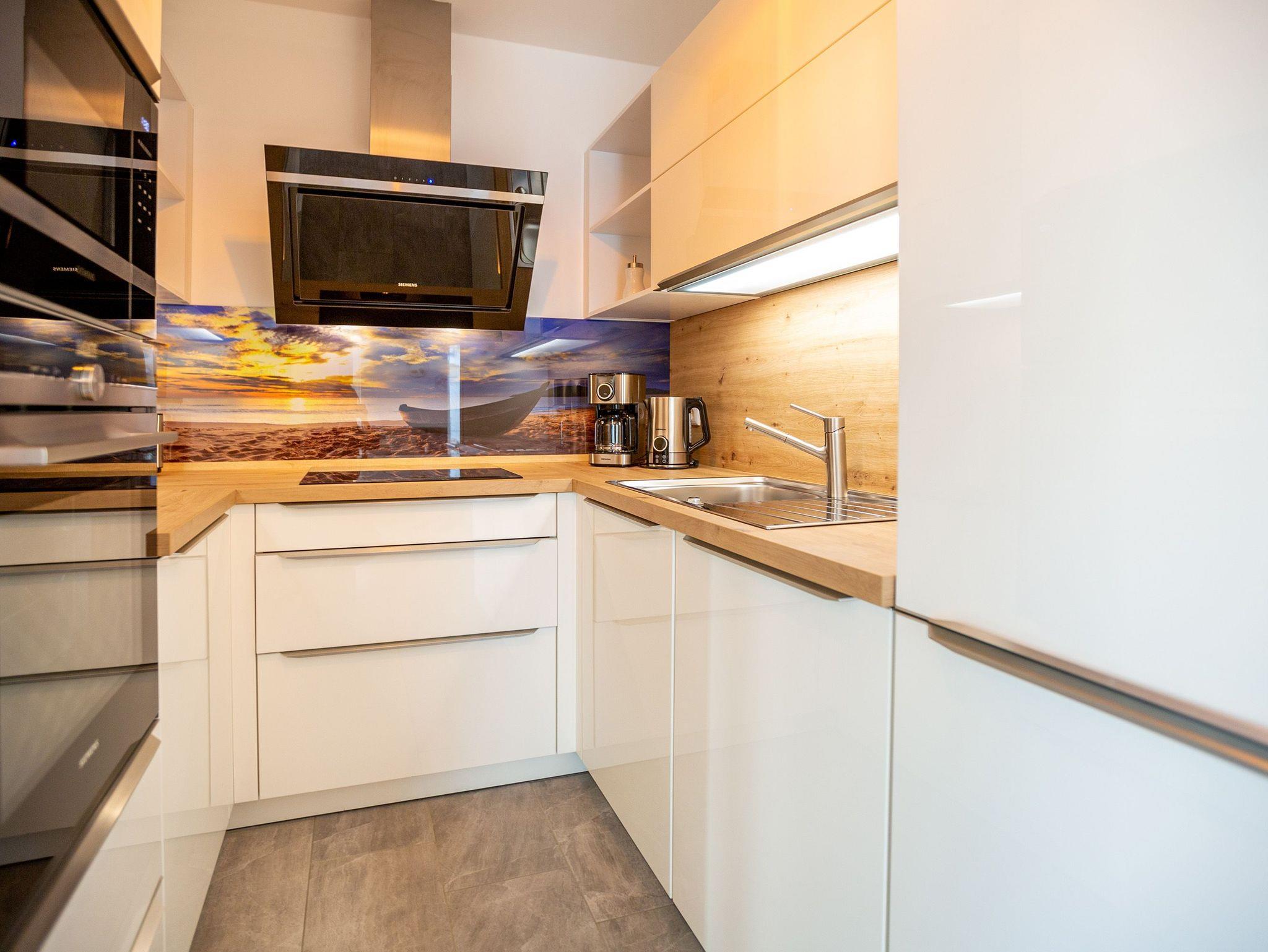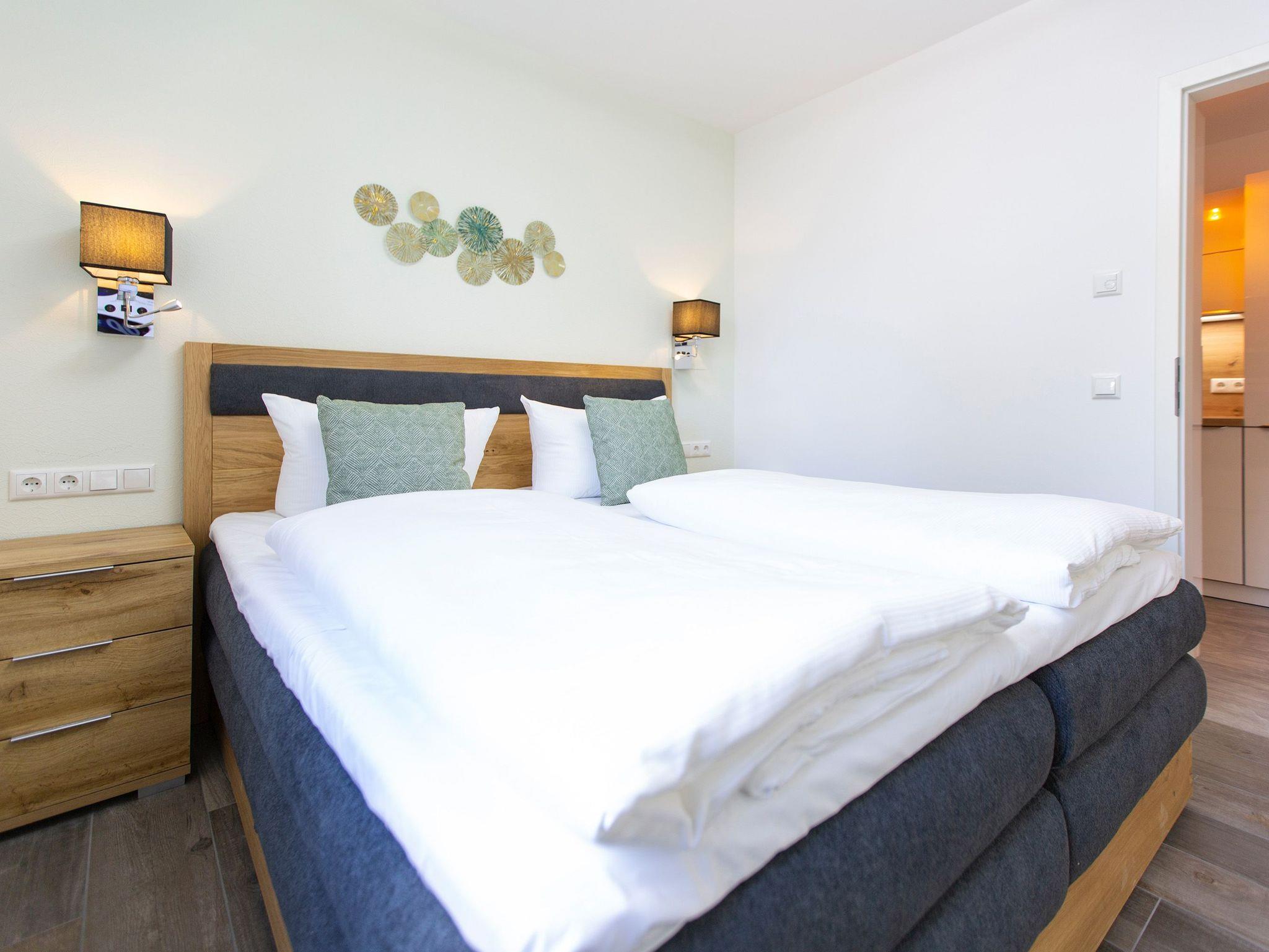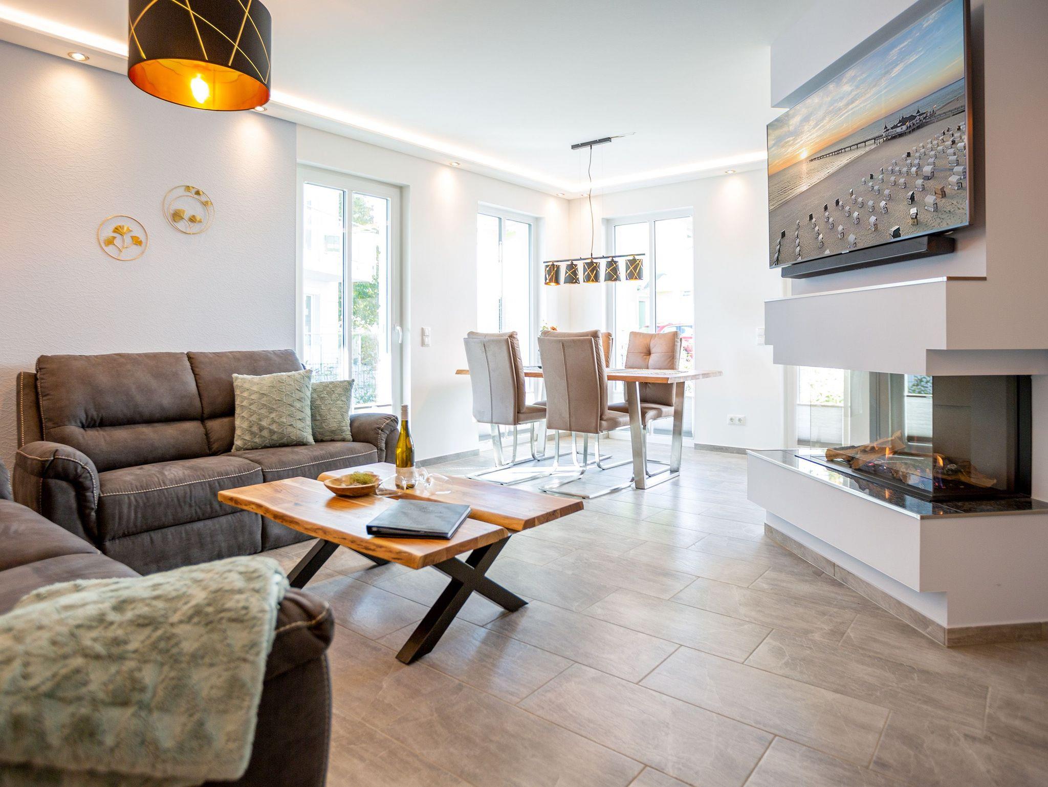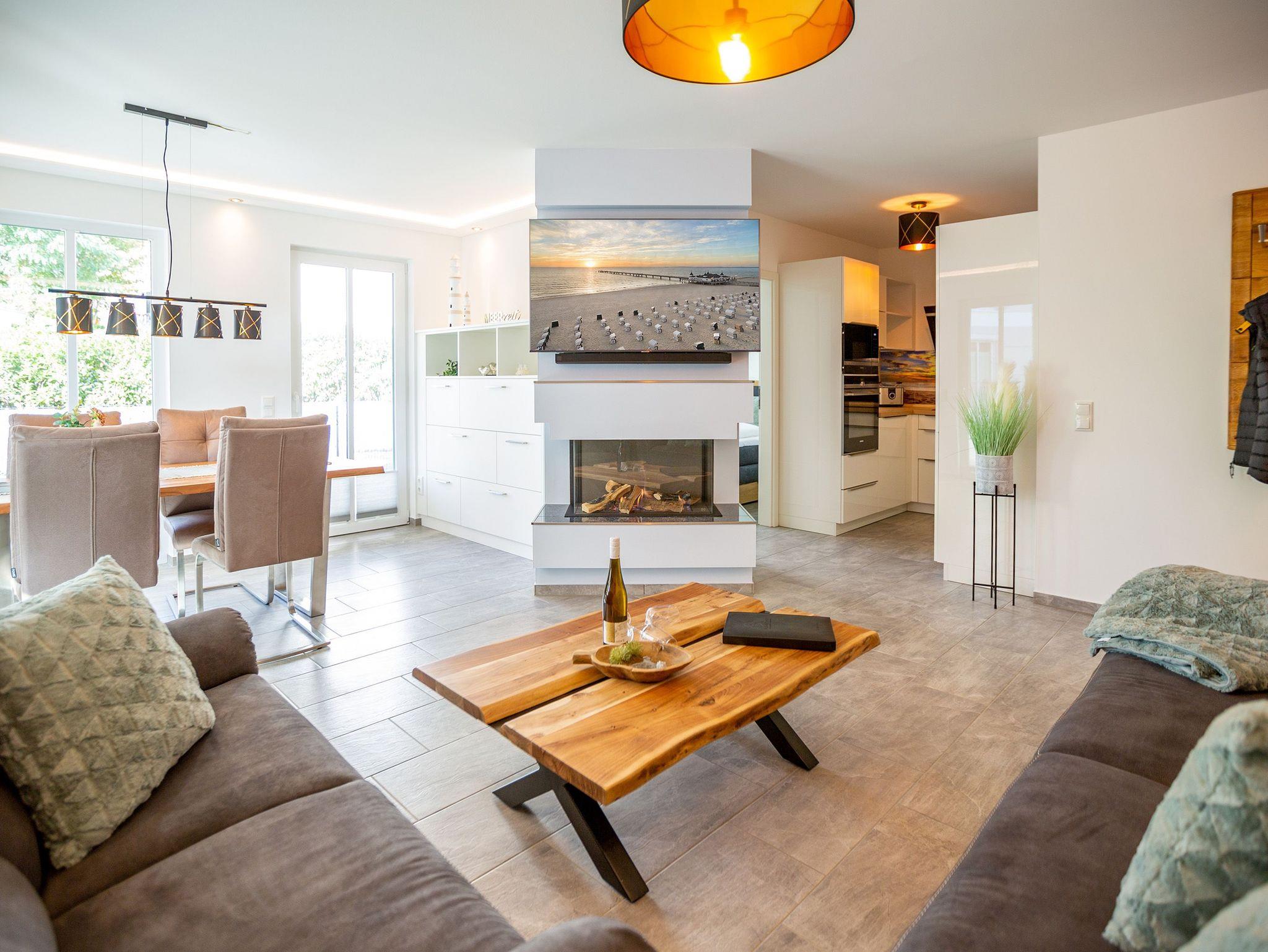 In diesen 2021 errichteten Häusern trifft Helligkeit auf Moderne und bietet Ihnen in seinen stilvoll eingerichteten Zwei- bis Drei-Zimmer Appartements Komfort auf höchster Ebene. Die offen gestalteten Wohn-Ess-Bereiche überzeugen durch ein stylisches Ambiente und ihr großzügiges Raumkonzept. Die teilweise mit Kochinseln ausgestatteten Küchen integrieren sich perfekt in den ebenso schlichten wie modernen Wohnraum. Alle Appartements verfügen über zwei Bäder oder ein Bad und ein zusätzliches Gäste-WC. Um Ihre Auszeit am Meer zusätzlich zu verschönern, wurden alle Appartements mit Gaskamin und Finnischer Sauna ausgestattet. Genießen Sie von den großzügigen Balkonen und Terrassen den Ausblick auf die parkähnliche Grünanlage oder verbringen Sie Ihren Abend auf dem frei zur Verfügung stehenden Grillplatz mit Sitzecke und Grill. Ein kostenloser PKW-Stellplatz in der Tiefgarage (Einfahrtshöhe 1,95m, Anfahrt über die Straße ?Kieferngrund? Höhe Hausnummer 17) gehört ebenso zum Komfort dieser Appartement-Häuser wie kostenfreies W-Lan. Für E-Autos steht am Objekt eine E-Ladesäule mit 2 Ladeplätzen (gesamt 22 kW) auf dem Grundstück kostenpflichtig zur Verfügung. Eine Waschmaschine und ein Trockner können Sie gegen Gebühr über die kostenlose App WeWash nutzen.