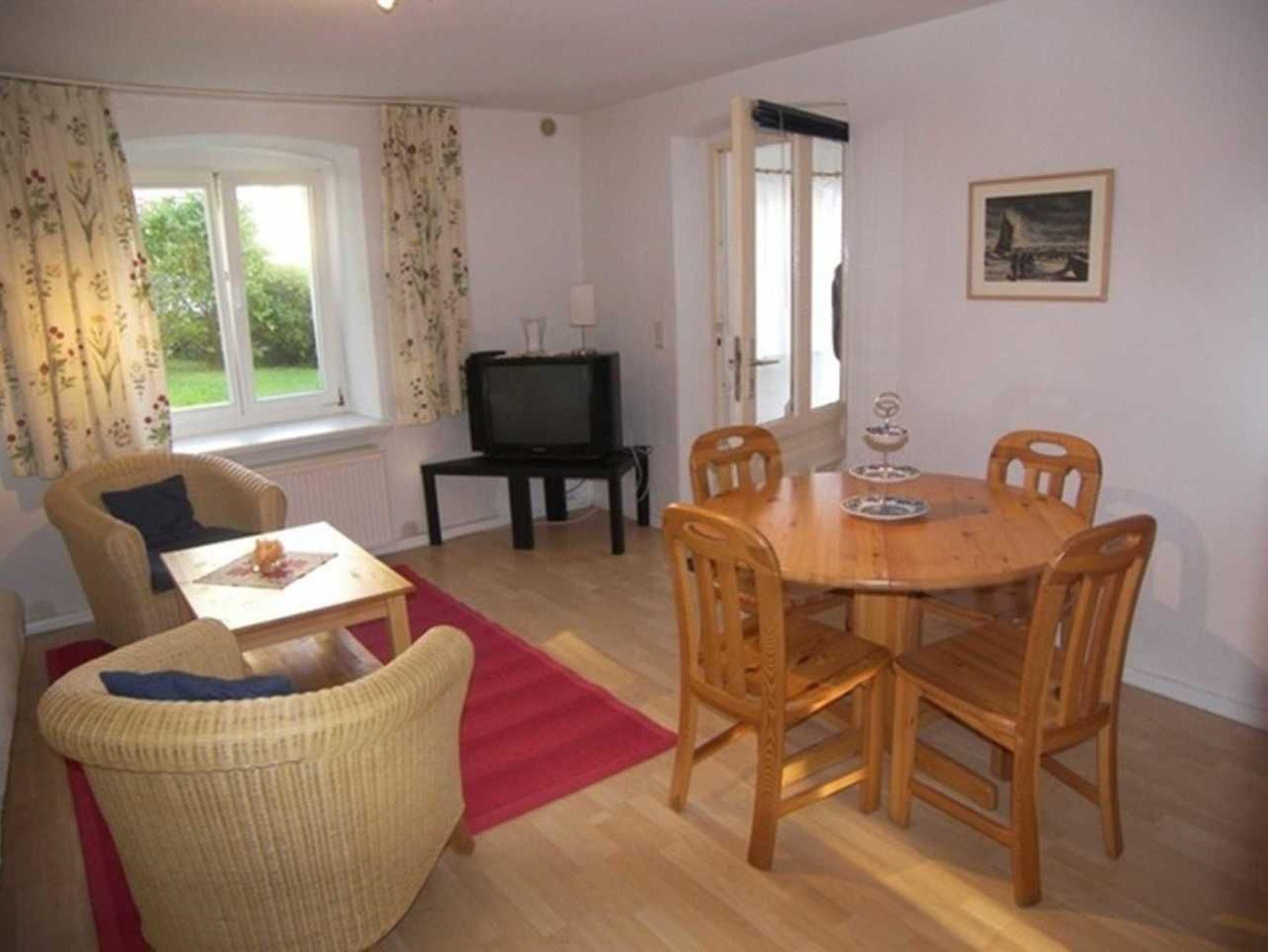 Die Ferienwohnung verfügt über zwei Zimmer - ein separates Schlafzimmer und ein Wohnzimmer mit Schlafcouch, TV, CD-Player, Couchtisch, zwei Sesseln und einem runden Esstisch. Hier können Sie entspannen und Ihren Urlaub an der Ostsee genießen.