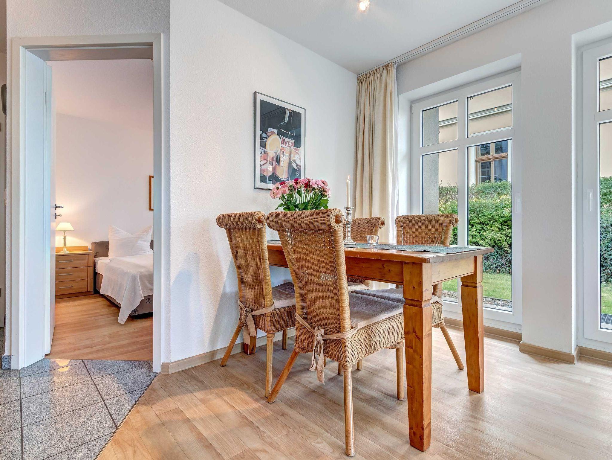 1. Reihe, direkt an der Strandpromenade mit TERRASSE zur Seeseite! FAHRSTUHL im Haus! Schönes 3-Zimmer-Apartment (ca. 55 m²) mit moderner guter Ausstattung. Zwei separate Schlafzimmer, Wohnzimmer mit Essplatz, Küchenbereich, Duschbad, Gäste-WC, Terrasse zur Promenadenseite, zus. kleine Terrasse neben dem Eßplatz. Die Wohnung verfügt über einen Tiefgaragen-Pkw-Stellplatz. In der Garage können auch Fahrräder und ähnliches untergestellt werden. In unserer Villa Germania nebenan gibt es eine Sauna. Von der Villa Aquamarina aus können Sie das Ortszentrum und die bekannte Ahlbecker Seebrücke in ca. 3 Minuten zu Fuß erreichen. Zum Strand sind es 50 m.