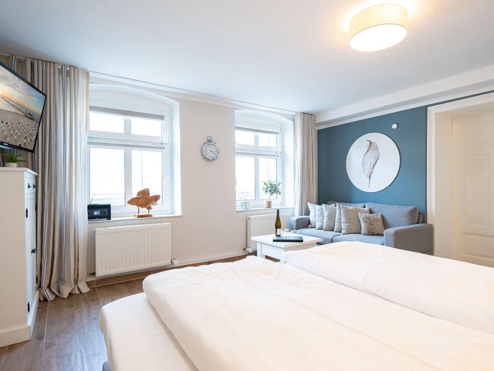 Ein kleines und gemütliches Urlaubsdomizil wartet im Untergeschoss der Villa Albertine in Ahlbeck nur darauf, Ihnen eine schöne Urlaubsauszeit zu bescheren. Das Ein-Zimmer-Appartement bietet auf 30 Quadratmetern alles, was Sie für ein paar entspannte Tage an der Ostsee benötigen ? egal ob zu zweit oder allein oder auch mit ihrem geliebten Haustier. Das große Doppelbett im kombinierten Wohn-Schlafzimmer schenkt wunderbare Urlaubsträume. Ein bequemes Sofa und ein Flat-TV sorgen für Gemütlichkeit und Unterhaltung an weniger sonnigen Urlaubstagen. Die zum Wohnraum hin offene Küche ist mit einem Zwei-Platten-Herd, einer Mikrowelle, Kühlschrank und Geschirr ausgestattet. Zum Essen gibt es in der Küche einen Holztisch zum gemütlichen Zusammensitzen. Das Badezimmer verfügt über eine Dusche, ein Waschbecken und ein WC. Damit Sie sich in Ihrem Urlaub rundum wohlfühlen, haben wir für Sie die Betten bei Anreise bereits bezogen und Handtücher liegen bereit. Zu dieser Wohnung gibt es keinen Pkw-Stellplatz.