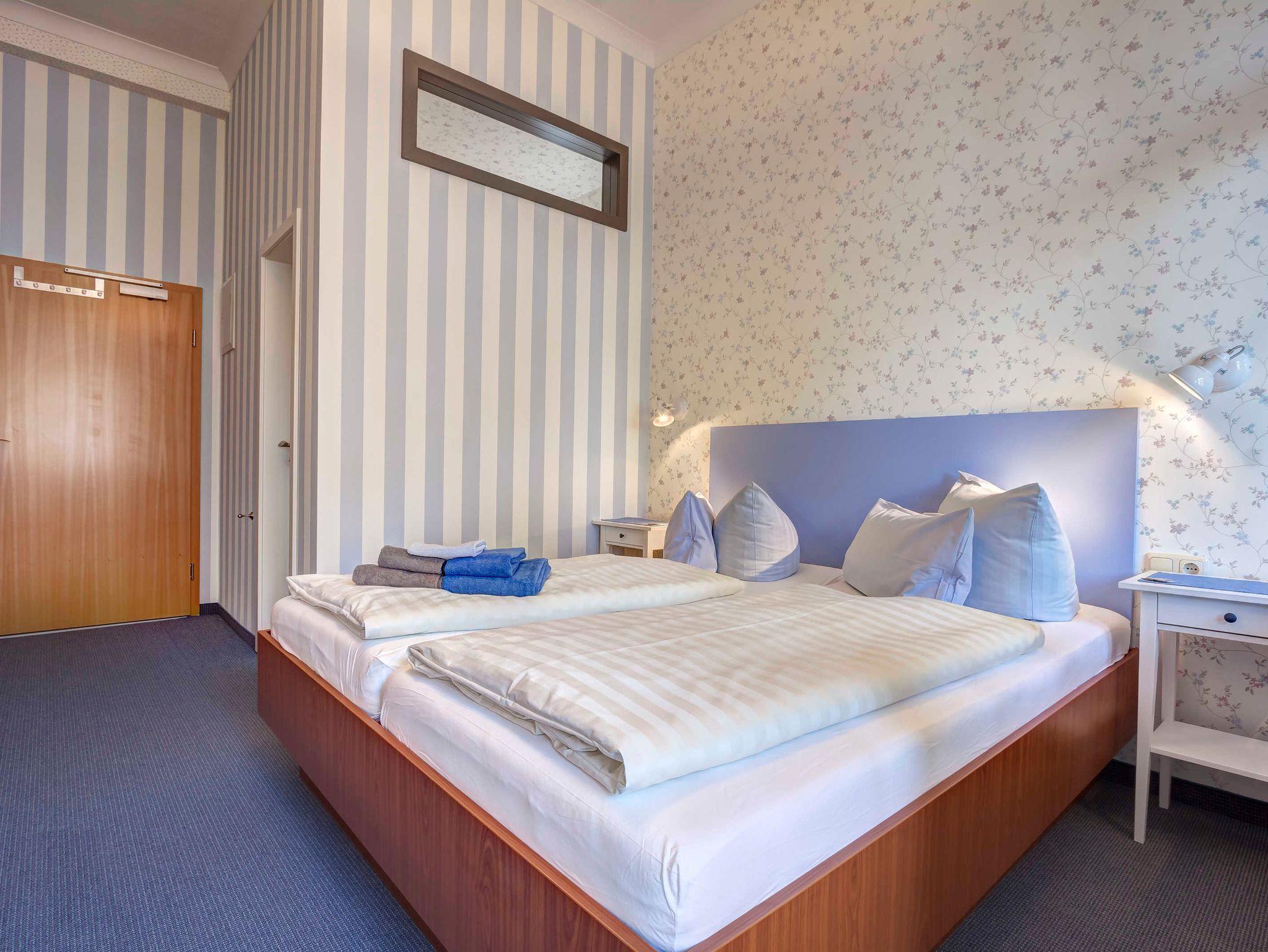 Das liebevoll von Familienhand geführte ***Hotel direkt an Ahlbecks Strandpromenade steht seinen Gästen seit 1999 zur Verfügung, Das Gebäude ist mit erheblichem Aufwand renoviert worden, und somit können wir unseren Gästen nun 18 Hotelzimmer verschiedener Kategorien anbieten, die modernen Ansprüchen voll gerecht werden, doch weiterhin das Flair der Wilhelminischen Epoche vermitteln. Weitere Renovierungen finden nahezu jeden Winter statt. Eine Zwischenreinigung der Zimmer erfolgt täglich außer samstags. Alle Zimmer sind auch zur Einzelnutzung buchbar. Zusätzliche Personen können in den meisten Kategorien dazugebucht werden (Aufbettungen). Kinder sind ab 6 Jahren herzlich willkommen. Eine Zimmerstornierung ist bis 15 Tage vor Anreise kostenfrei möglich, danach berechnen wir 80% der Gesamtsumme als Stornogebühr. Bei Nichtanreise berechnen wir 100%. Diese Regelung gilt nicht, wenn Sie eine nicht stornierbare Rate gebucht haben. In dem Fall ist zu jeder Zeit der volle Buchungsbetrag zu zahlen.