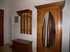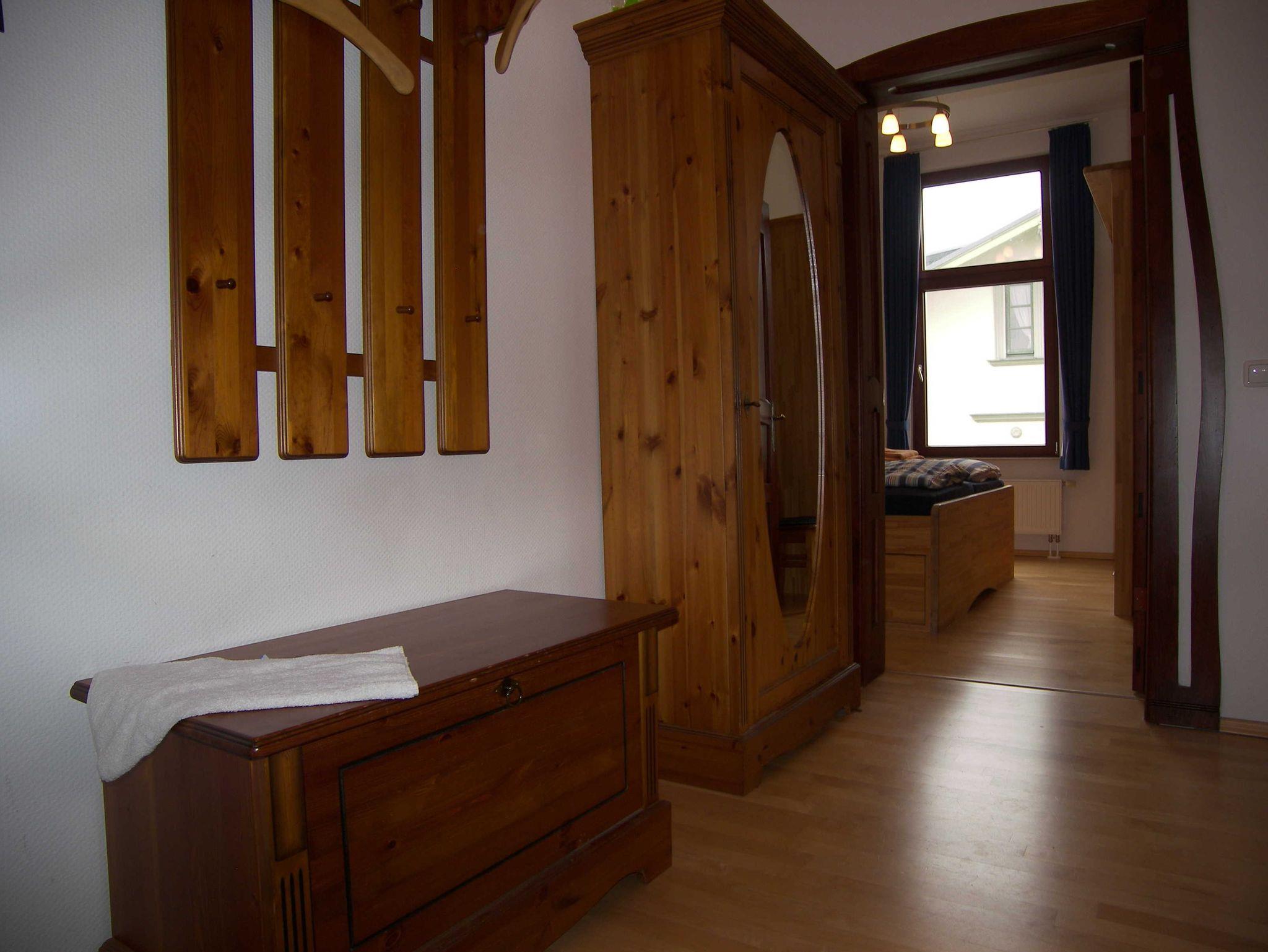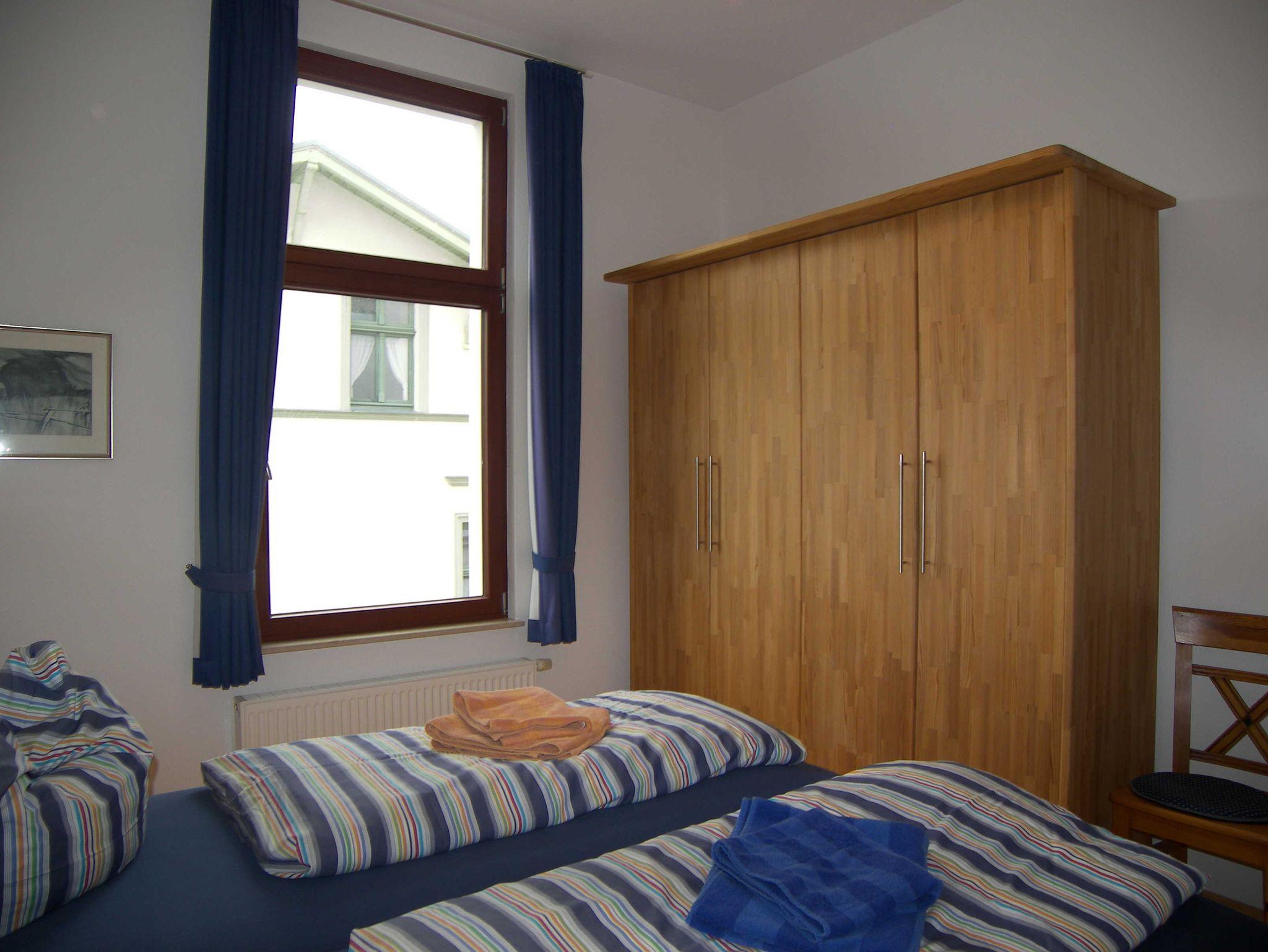 Im kombinierten Wohn- /Schlafraum befinden sich ein italienisches Doppelbettschlafsofa mit dazugehörigem Zweisitzer, Couchtisch, Satelliten-TV, Mini HiFi-Anlage mit DVD-Player. Durch ein Seitenfenster des kombinierten Wohn- /Schlafraumes und vom dort abgehenden Balkon hat man zwischen den Häusern hindurch seitlichen Blick zum Meer und bis zum Mittag Sonne. Ein Tisch mit 4 Stühlen und Schrankregal bilden den Essbereich. Eine kleine Auswahl an Büchern und CDs steht Ihnen zur Verfügung. Der vom kombinierten Wohn- /Schlafraum optisch getrennte Küchenbereich verfügt unter anderem über einen Backofen, 4-Platten-Ceranherd, Spülmaschine, Kaffeemaschine, elektrischer Brotschneidemaschine, Kühlschrank und reichlich Geschirr. Das Schlafzimmer hat ein Doppelbett (Maße: 1,80 x 2,00 m) mit geteilter Matratze, einen großen Kleiderschrank, zwei Nachttische sowie dazu passende Lampen. Im Badezimmer befinden sich Fön, Dusche, WC, Lüftung (weil kein Fenster vorhanden) sowie ein Urinal. Für die wohlige Wärme wird dort durch eine Fußbodenheizung gesorgt. Als Fußboden im Küchenbereich sowie im Bad wurden Fliesen gewählt und für die übrige Fläche helles Parkett mit vereinzelten Teppichläufern. In der Diele befindet sich ein Garderobenschrank. W-Lan ist in der Wohnung vorhanden. Nach telefonischer Anfrage beim Verwalter (Herrn Grimm) kann ein Kinderhochstuhl sowie ein Babybett zur Verfügung gestellt werden. Zur Wohnung gehört ein kostenloser PKW-Stellplatz auf dem Grundstück.