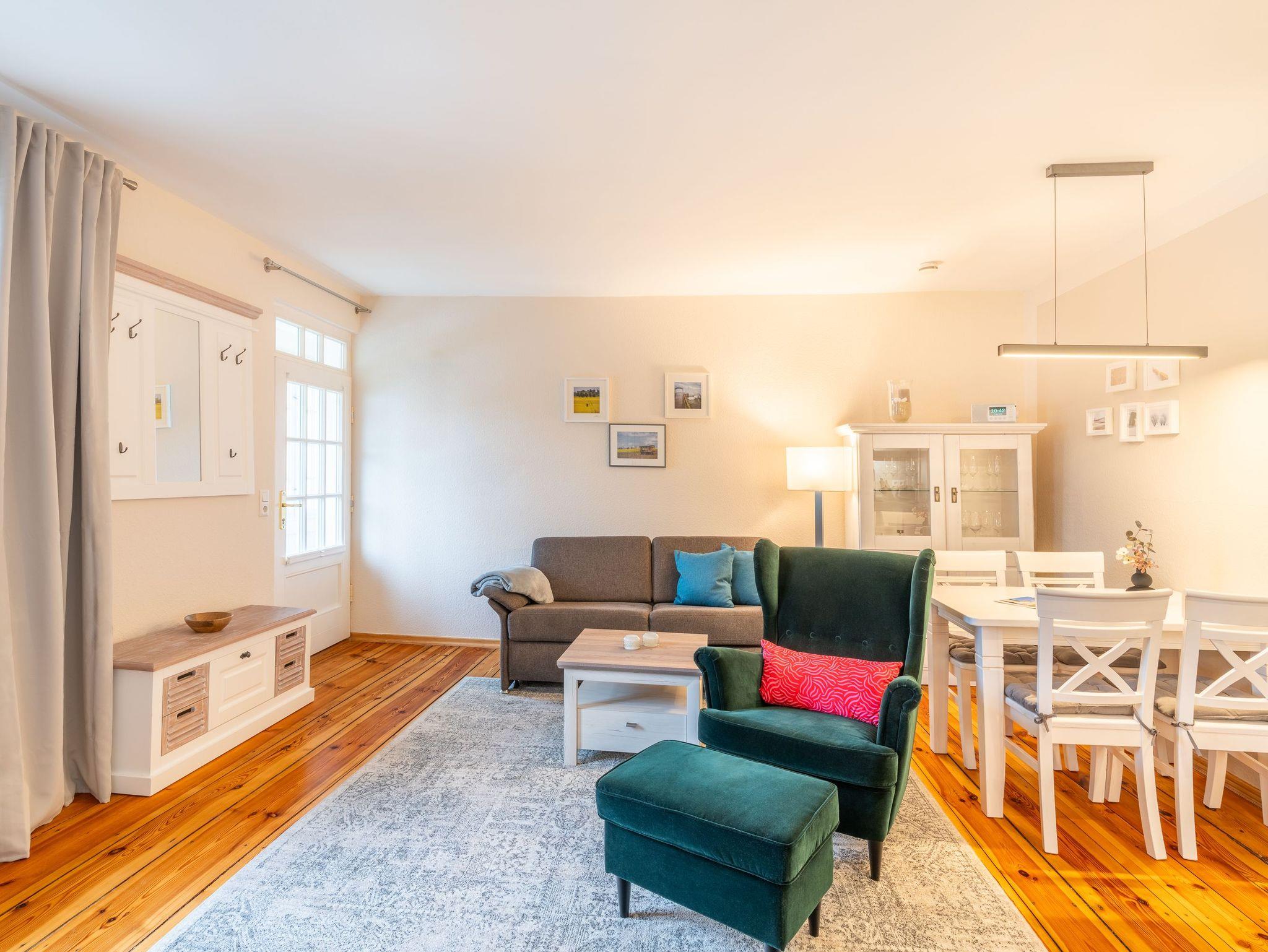 Das stillvoll neu möblierte 2-Raum-Appartement im Glanz der alten Bäderarchitektur befindet sich im 1. Obergeschoss und verspricht eine erholsame Urlaubszeit auf 41 Quadratmetern mit bis zu 4 Personen.
