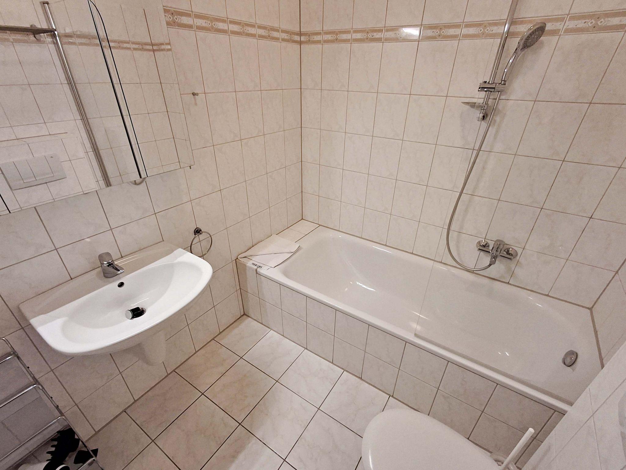 Für Kurzweil und Entspannung sorgt eine Gemeinschafts-Sauna, Dampfbad sowie ein Ruheraum. Ein Pkw-Stellplatz befindet sich am Haus (überdacht) und Ihre eigenen Räder können Sie gern im Fahrradraum abstellen. Waschmaschine und Trockner stehen gegen Gebühr zur Verfügung.