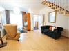Das geräumige Wohn-Esszimmer im Erdgeschoss wartet mit einer gemütlichen Sitzgruppe, einem Flachbildfernseher, einem schönen Esstisch sowie einer vollausgestatteten Küche mit Cerankochfeld, Mikrowelle und Geschirrspüler auf.