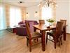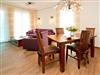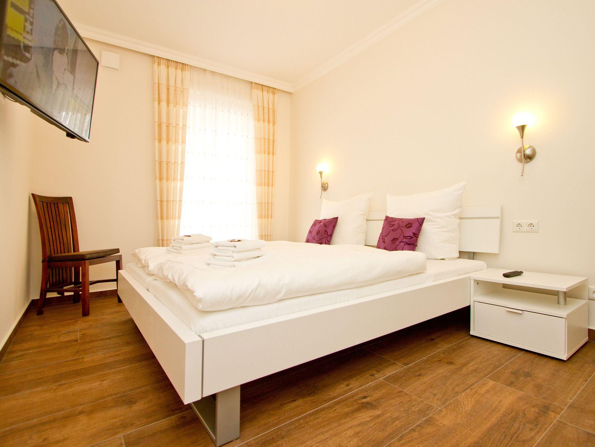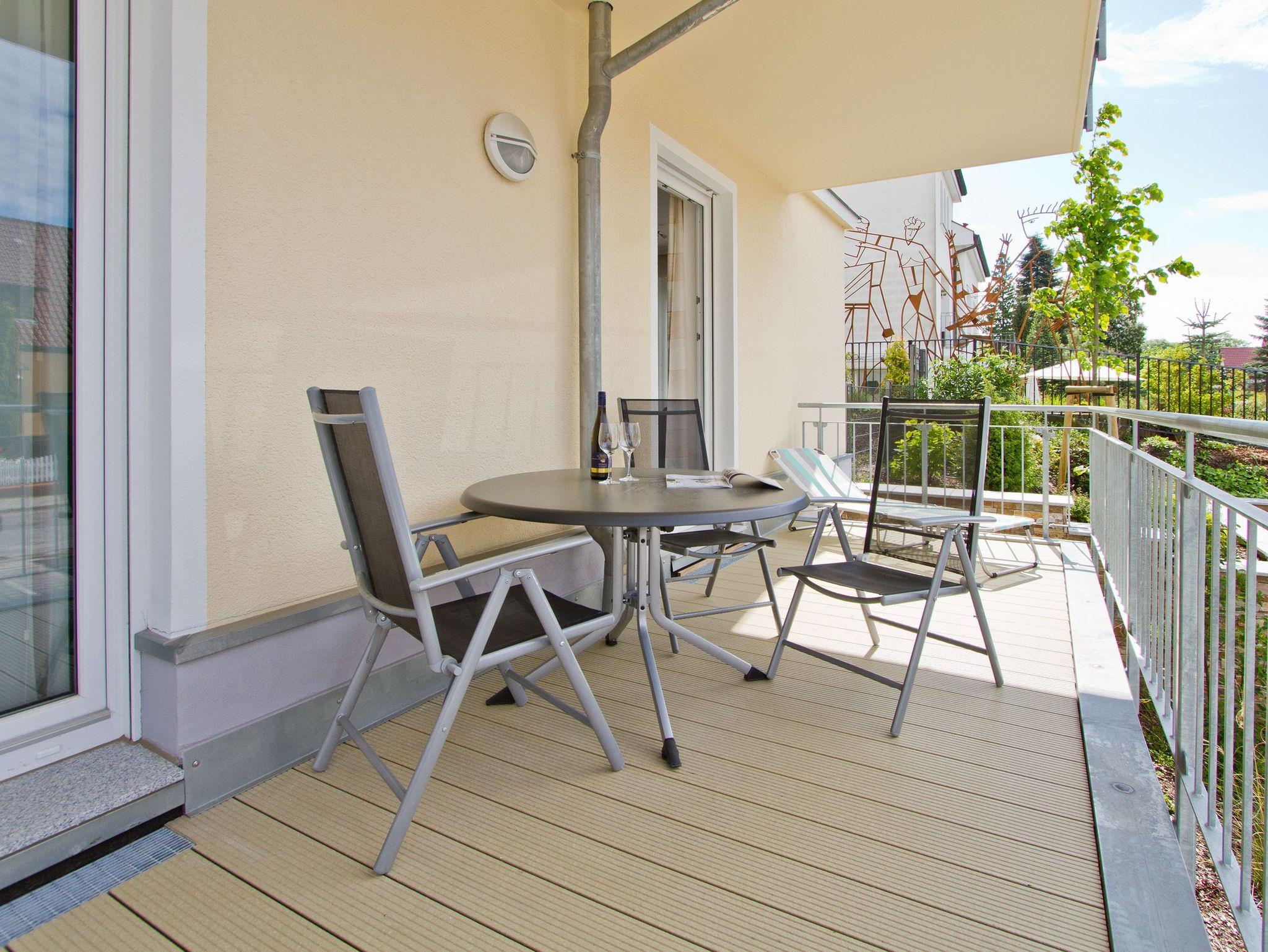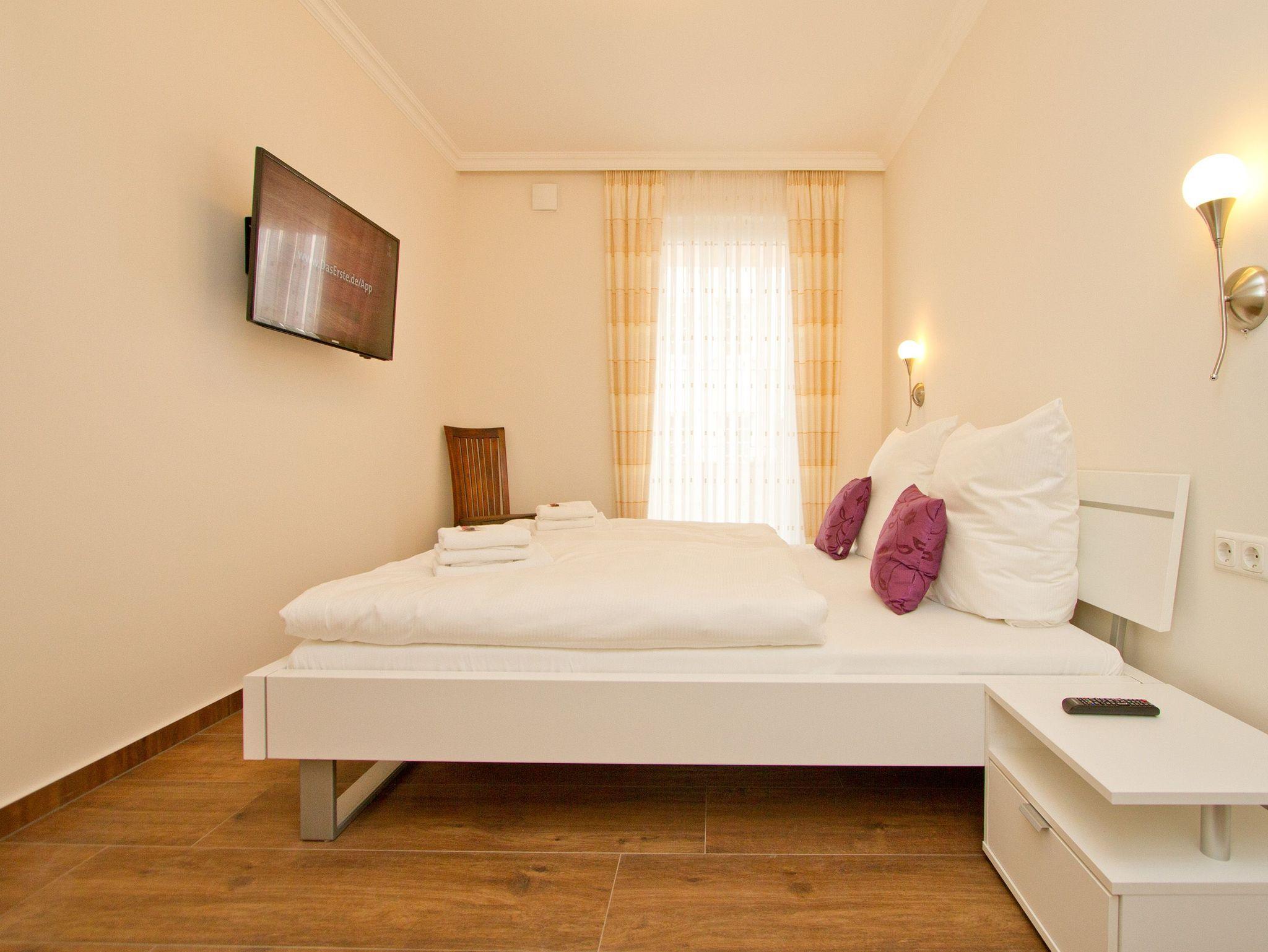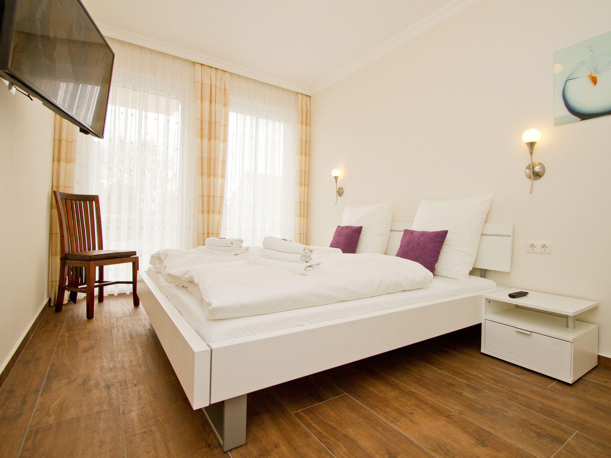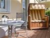Dünenpalais Ferienwohnung 6: Im Erdgeschoss des Südhauses befindet sich dieses schöne 3-Raum-Appartement für 4 Personen und ein Kleinkind (bis 3 Jahre im Kinderreisebett). Der gemütliche Wohnraum wird ergänzt durch die moderne, komplett ausgestattete Küchenzeile mit Essbereich. Die beiden Schlafzimmer sind mit Doppelbetten (1,80 m x 2 m) und je einem Flat-TV ausgestattet, hier findet sich auch genug Platz für ein Kinderreisebett (kann im Vorwege ohne Matratze [&] Bettzeug gegen einen Aufpreis bestellt werden). Zum hellen Bad mit großer Echtglasdusche und WC gibt es zusätzlich ein Gäste-WC. Ein besonderes Highlight ist die wohnungseigene Sauna (ideal für 2 Personen) und der per Fernbedienung bedienbare Gaskamin. Wer keine Lust auf Strand hat, macht es sich wahlweise auf dem großen, sonnigen Südbalkon (teilweise überdacht) oder der schönen Terrasse gemütlich, bequeme Gartenmöbel und ein Strandkorb sowie Sonnenliege warten hier auf Sie. Für Ihren Komfort steht die Erstausstattung Wäsche für Sie bereit. Ein Pkw-Stellplatz befindet sich in der Tiefgarage.