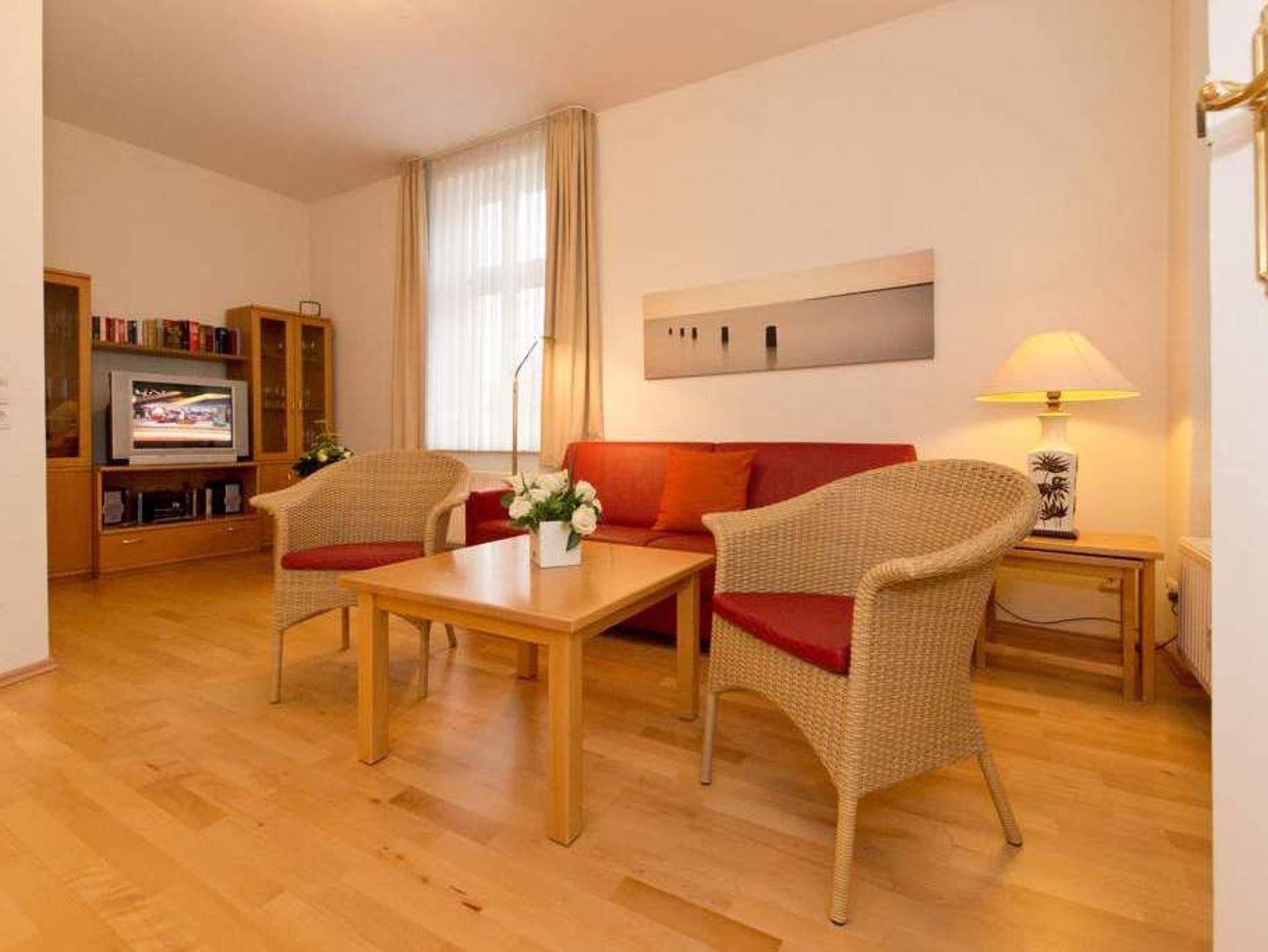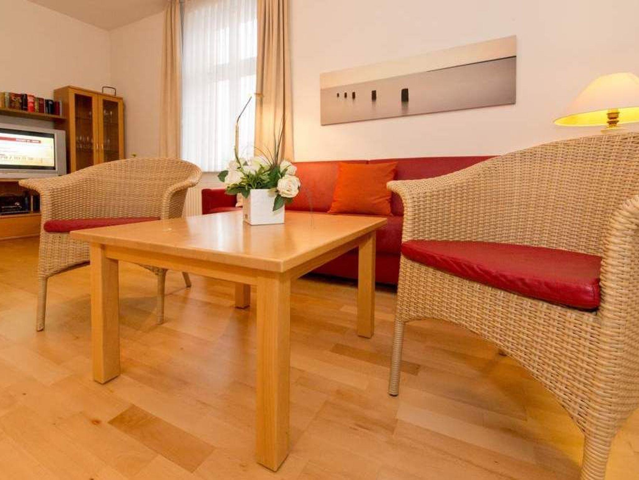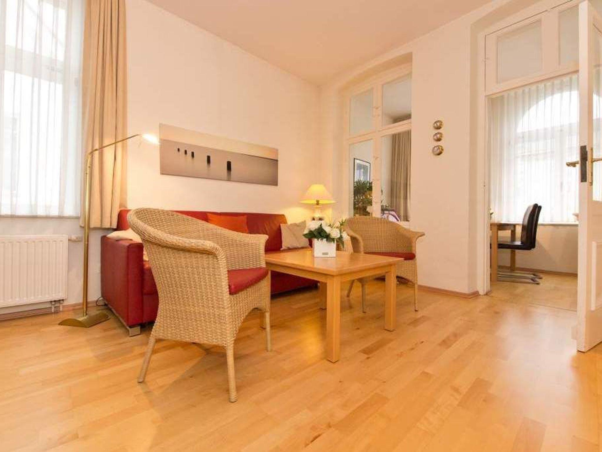 Die Ferienwohnung 5 in der Villa Linquenda empfängt 2 bis 4 Personen in klassischer Eleganz. Dieses 4-Sterne-Appartement vereint Komfort und Stil für einen rundum gelungenen Urlaub. Das Schlafzimmer mit Doppelbett öffnet sich auf einen sonnigen Balkon, auf dem Sie den Morgen genießen können. Abends lädt die geschützte Veranda zu einem Glas Wein ein. Ein großzügiger Wohnbereich mit Schlafcouch für bis zu 2 Personen und eine separate, voll ausgestattete Küche runden das Domizil ab. Ein PKW-Stellplatz am Haus gehört ebenfalls dazu.