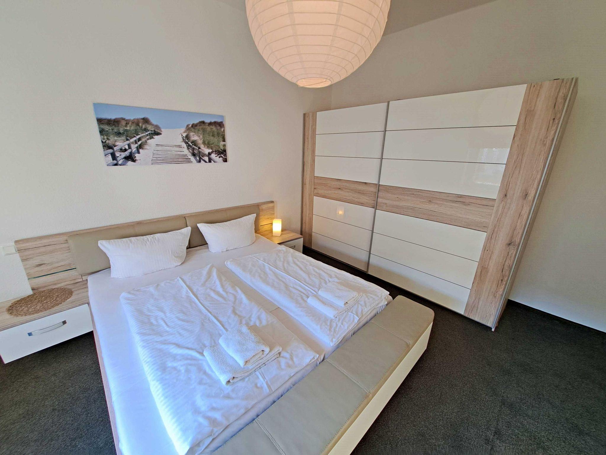 Herzlich willkommen in dieser sonnigen, modernen Nichtraucher-Wohnung im Erdgeschoss der Villa “Haus Bella”! Die ca. 53 qm große Unterkunft bietet Ihnen alles, was Sie für einen entspannten Aufenthalt brauchen. Das einladende Wohnzimmer ist mit einer bequemen Couchgarnitur ausgestattet, die auch als Schlafmöglichkeit genutzt werden kann, sowie einem Esstisch mit vier komfortablen Stühlen. Die integrierte Küchenzeile lässt keine Wünsche offen: Sie finden dort einen Elektro-Herd, Backofen, Kühlschrank, Kaffeemaschine, Wasserkocher und Toaster. Im Schlafzimmer erwarten Sie ein gemütliches Doppelbett, ein praktisches Wandklappbett sowie ein geräumiger Kleiderschrank, der ausreichend Stauraum bietet. Das großzügige Tageslicht-Bad mit Dusche und WC sowie einem Fön rundet die gelungene Ausstattung ab. Für Ihren Komfort stehen Ihnen der Parkplatz am Haus sowie kostenloses WLAN zur Verfügung.
