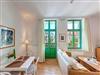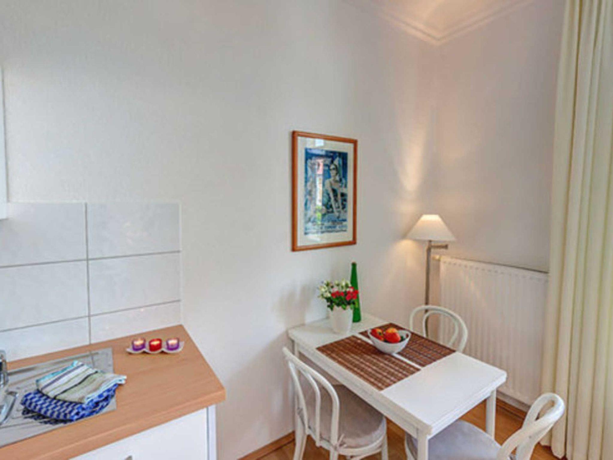 Das gemütliche 1-Zimmer-Appartement Nr. 4 befindet sich im Erdgeschoss der Villa Ostseewarte. Es verfügt über einen geräumigen Wohn- und Schlafraum mit einem Doppelbett, einer gemütlichen Sitzgruppe sowie einem Essplatz. Die integrierte Küchenzeile ist voll ausgestattetet mit Spülmaschine, Kaffeemaschine, Wasserkocher, Toaster und Mikrowelle. Das Bad verfügt über Dusche und WC. Zum Appartement gehört darüber hinaus ein Balkon. Ein Pkw-Stellplatz steht Ihnen auf dem Grundstück kostenfrei zur Verfügung und Ihre Fahrräder können Sie ebenfalls auf dem Grundstück in einem separaten Abstellraum unterbringen. Alle Wohnungen in der Villa Ostseewarte haben passwortgeschütztem DSL-WLAN Internetzugang (gerätegebunden, Euro 1,50 pro Tag und Gerät). Eine Waschmaschine können Sie gegen Gebühr gern nutzen (Münzgerät).