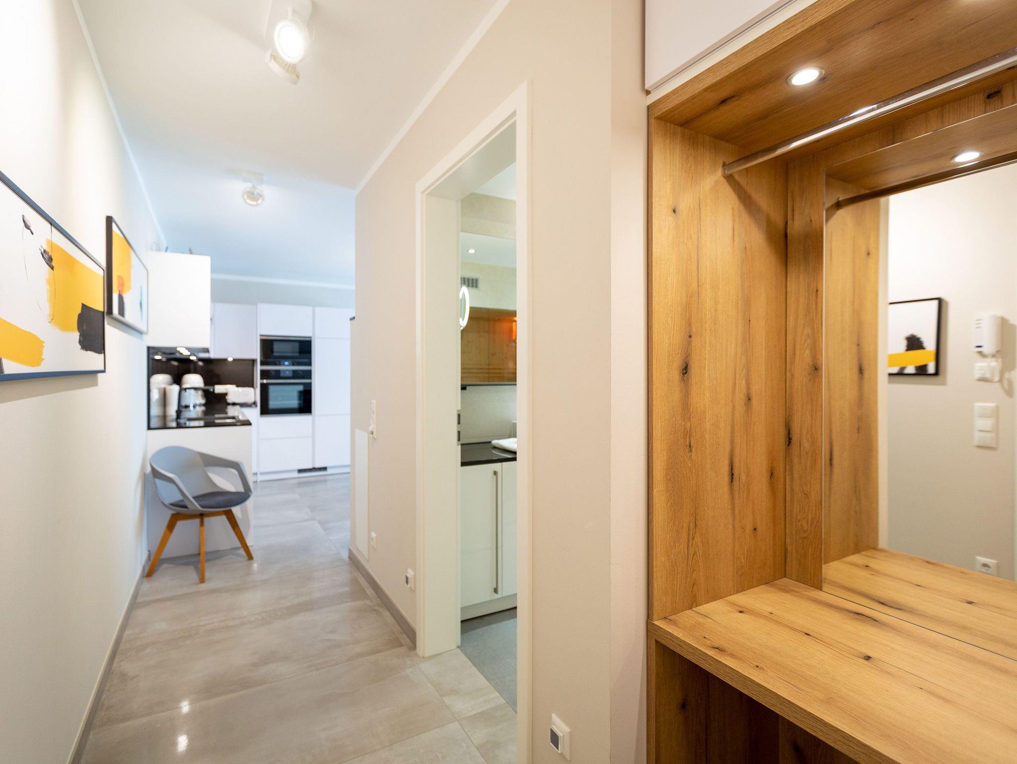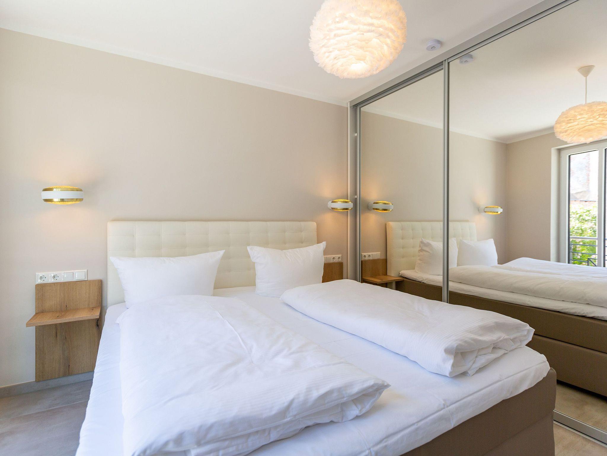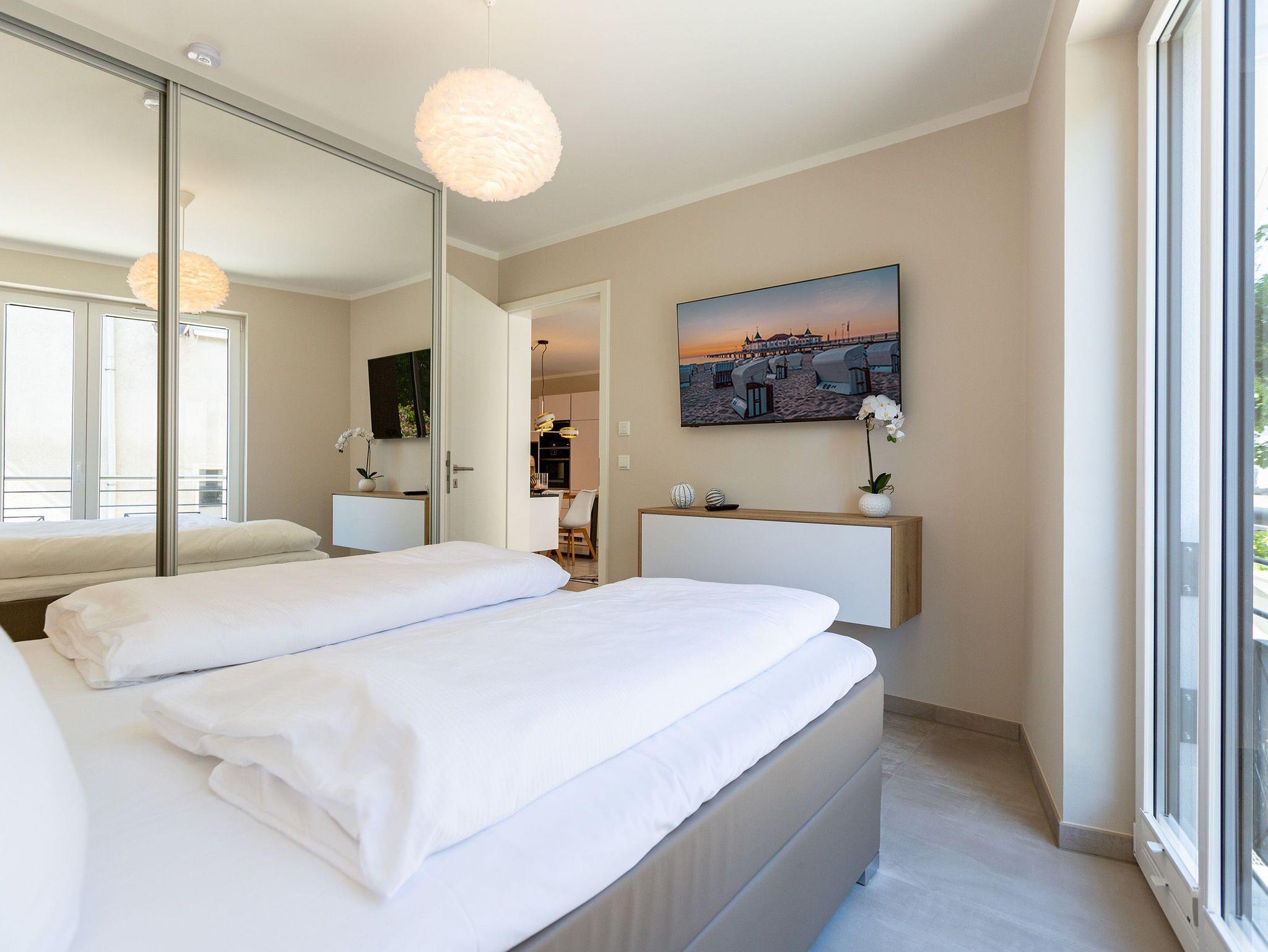 Ankommen, abschalten und neue Energie tanken. Im neu gebauten Quartier 7 im Herzen des Kaiserbades Ahlbeck fällt Ihnen das sicher ganz leicht. Moderne und stilvoll eingerichtete Appartements laden zum Wohlfühlen und Entspannen ein. In den ersten und zweiten Stock gelangen Sie via Fahrstuhl. Schöne, alte Villen umgeben die Anlage, verleihen dem Wohngefühl ein besonderes Flair. Die Zwei- und Drei-Zimmer-Appartements sind geräumig, offen und hell und teilweise mit einer Sauna oder einem Kamin ausgestattet. Wohnkomfort vom Feinsten lädt zum Faulenzen ein. Genießen Sie die frische Ostseeluft auf dem Balkon oder der Terrasse, denn jede Wohnung besitzt einen kleinen Außenbereich. An stürmischen Tagen können Sie von hier aus sogar die Wellen rauschen hören. Das beste Rezept für einen erholsamen Schlaf. Offene Wohnbereiche und voll ausgestattete Küchen sorgen für alle Annehmlichkeiten. Das Haus bietet eine Tiefgarage (Einfahrthöhe ca. 2,03 m). Einige Wohnungen verfügen über einen Kellerraum, der als Unterstellmöglichkeit für Fahrräder genutzt werden kann. Das WLAN-Netz ist für alle kostenfrei. Willkommen also in Ihrem kleinen Urlaubsparadies.