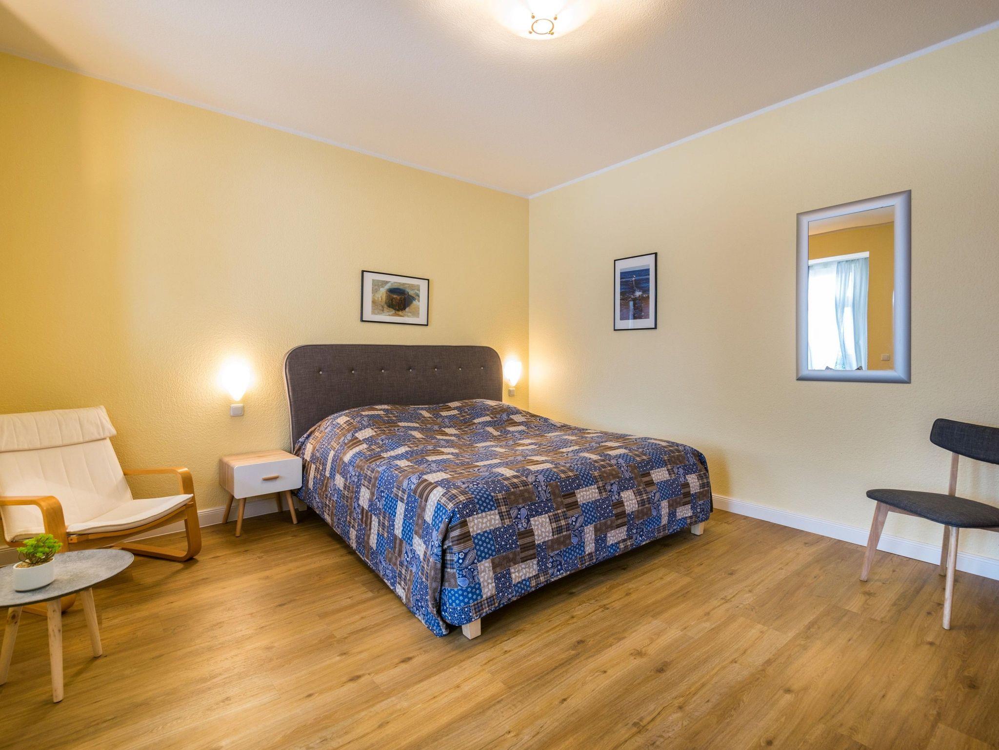 Die Ferienwohnung befindet sich im Erdgeschoss der Strandvilla Mirja und bietet auf 45 qm Platz für bis zu 3 Personen für Ruhe und Erholung. Das Wohnzimmer und Schlafbereich sind offen und verfügen über eine gemütliche Schlafcouch. Eine kleine Küche und ein Essplatz sorgen für schöne Momente am Morgen. Für Kleinkinder steht ein Baby-Reisebett mit Matratze und ein Hochstuhl zur Verfügung. Vor dem Objekt befindet sich eine kleine Terrasse für gemütliche Momente im freien. Hinter der Ferienwohnung befindet sich eine wunderschöne Sonnenterrasse für all unsere freundlichen Gäste zum Entspannen und Austauschen. Sie haben WLAN und einen Parkplatz vor dem Haus.