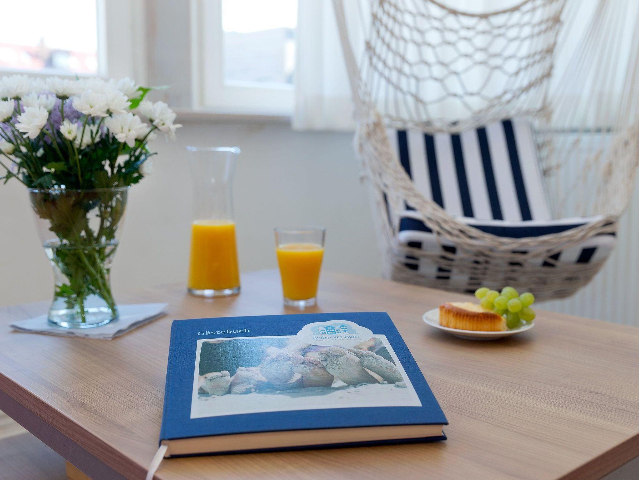 Damit Sie Ihre wohlverdiente Urlaubszeit bereits am Anreisetag in vollen Zügen genießen können, haben wir das Bett für Sie und das für Ihre lieben Mitreisenden bereits bezogen und ein Duschtuch sowie ein kleines Handtuch bereitgelegt. Die Aufbettung für ein Kind ist im Schlafzimmer im Babyreisebett (max. 3 Jahre) oder auf Faltmatratze (3 - 10 Jahre) 80 x 200 cm möglich. Wohn- und Schlafzimmer verfügen jeweils über bodentiefe Fenster mit kleinem Austritt. Das Badezimmer ist mit Dusche, WC, Handtuchtrockner und Fußbodenheizung ausgestattet.