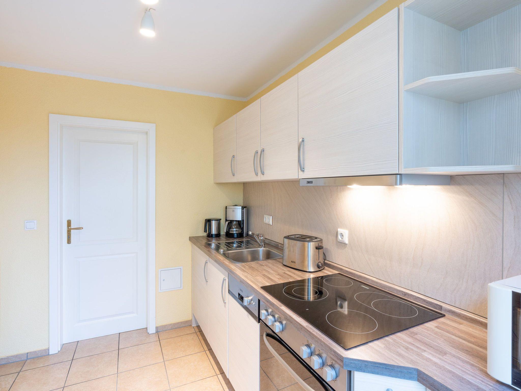 Der kombinierte Wohn- und Essbereich verfügt über eine gemütliche Sitzgelegenheit mit Sofa, Flat TV und Esstisch. Die modern ausgestattete Küche lässt Kochherzen höher schlagen und ist voll ausgestattet mit Herd, Backofen, Kühlschrank mit Tiefkühlfach, Geschirrspülmaschine, Mikrowelle, Kaffeemaschine, Toaster, Wasserkocher. Das liebevoll eingerichtete Schlafzimmer ist mit einem Doppelbett und Flat-TV ausgestattet. Eine Aufbettung mit einem Kleinkind bis 3 Jahre ist in einem Babyreisebett möglich. Das Babyreisebett können Sie gegen eine Gebühr hinzubuchen.