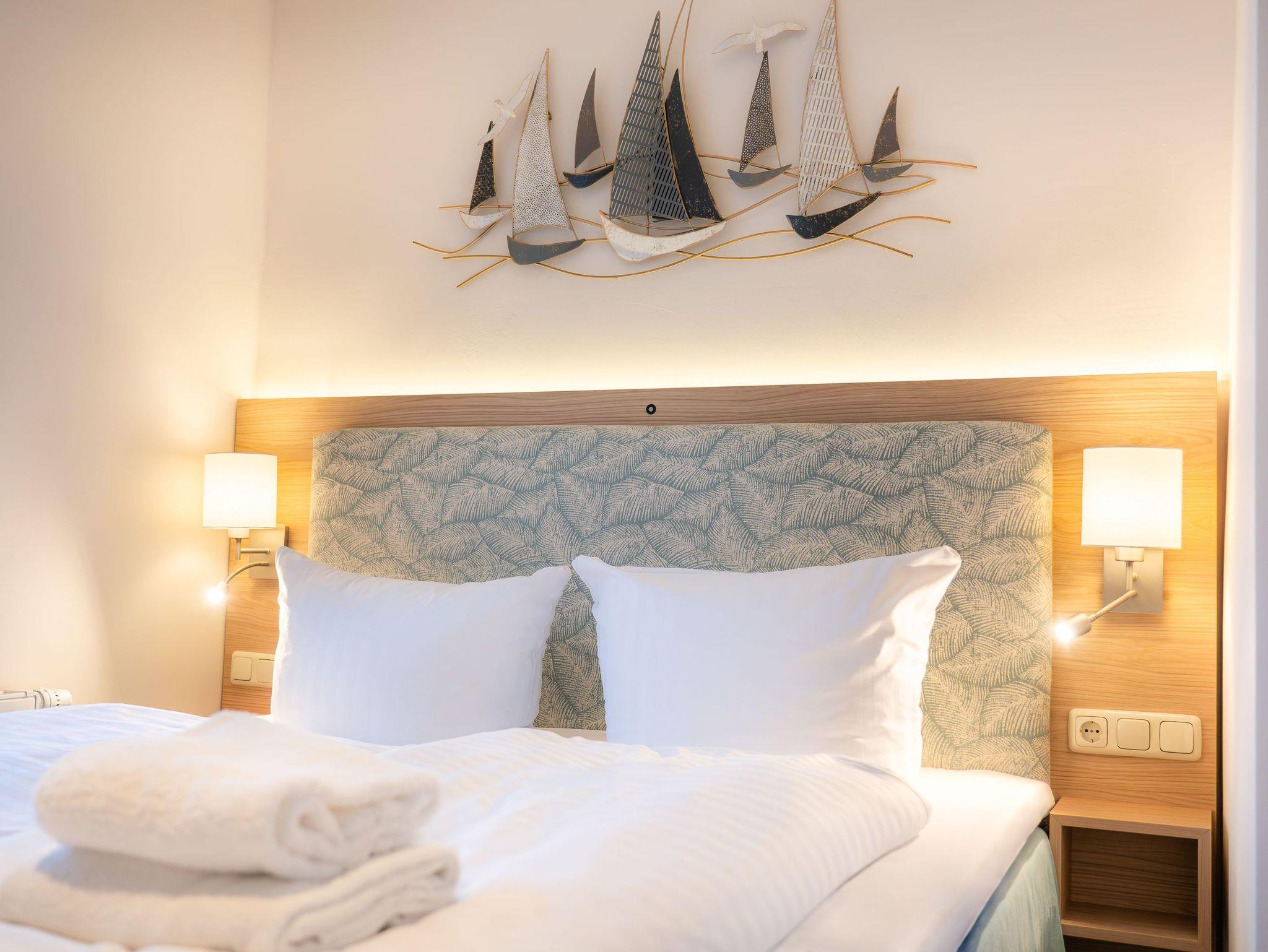Damit Sie Ihre wohlverdiente Urlaubszeit bereits am Anreisetag in vollen Zügen genießen können, haben wir das Bett für Sie und das für Ihre lieben Mitreisenden bereits bezogen und ein Duschtuch sowie ein kleines Handtuch bereitgelegt.