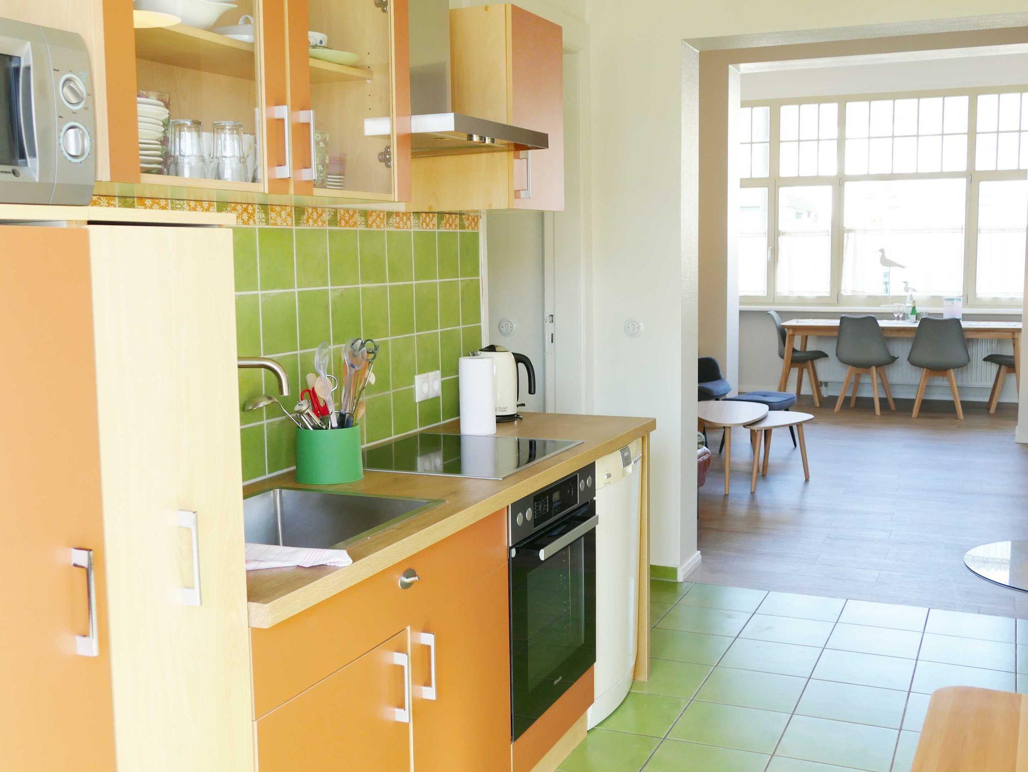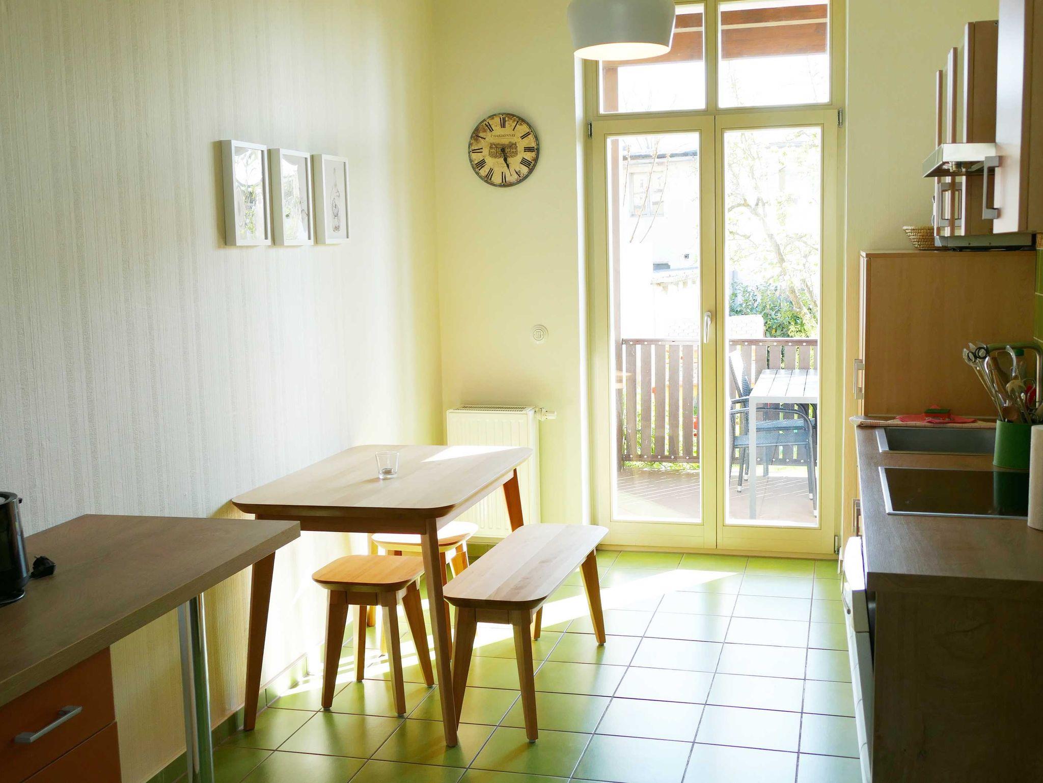 Die 85 qm große Ferienwohnung Anne befindet sich im Erdgeschoss und ist farbenfroh und mit viel Liebe eingerichtet. Sie verfügt über einen möblierten Balkon zur Gartenseite (Südseite). Die Wohnung ist aufgeteilt in Wohnzimmer und 2 Schlafzimmer (wobei ein Schlafzimmer (Doppelbett) als Durchgangszimmer zum 2. Schlafzimmer (Rollbett) dient, Essbereich und komplett ausgestatteter Küche, Bad mit Dusche und WC.