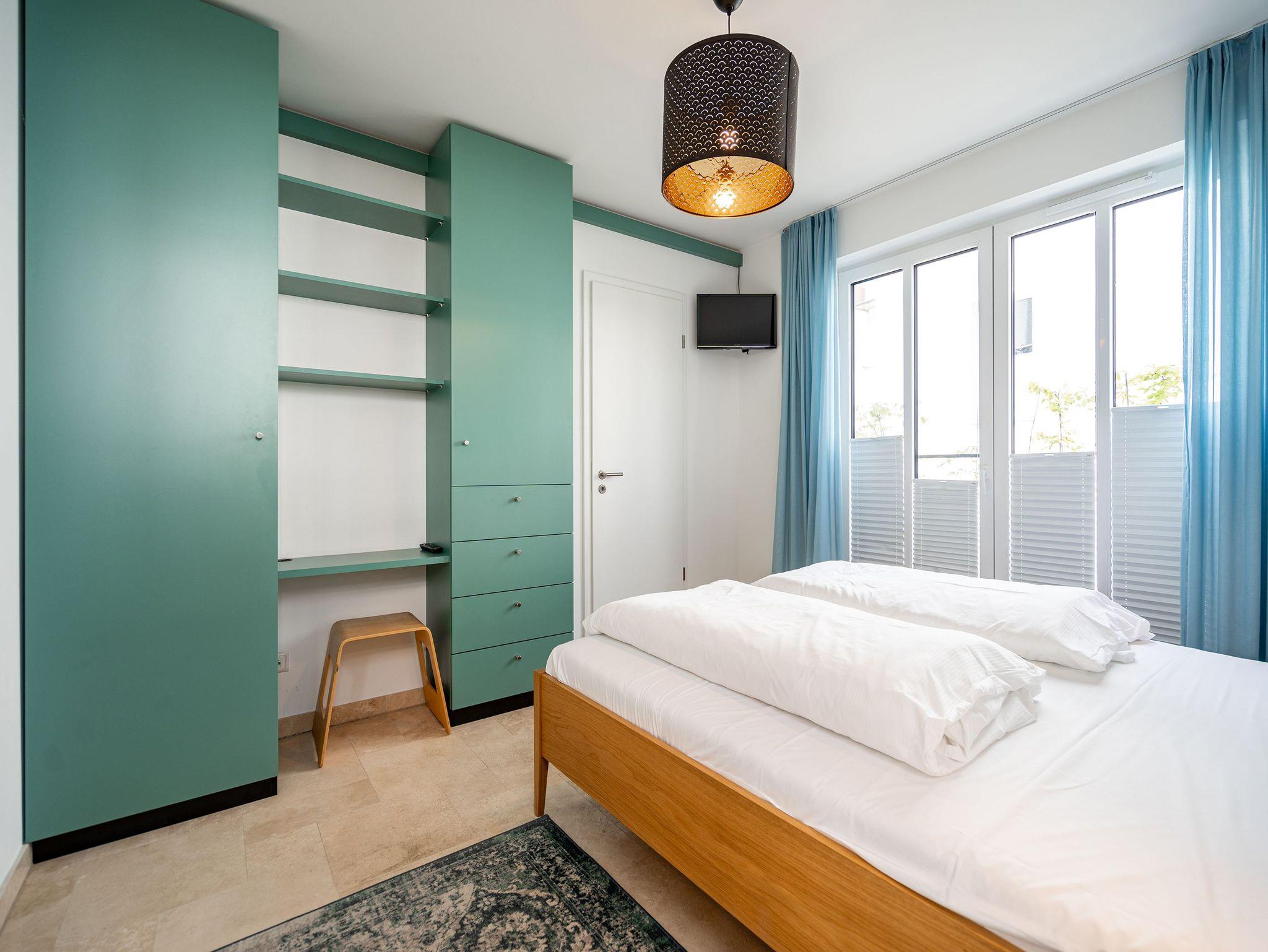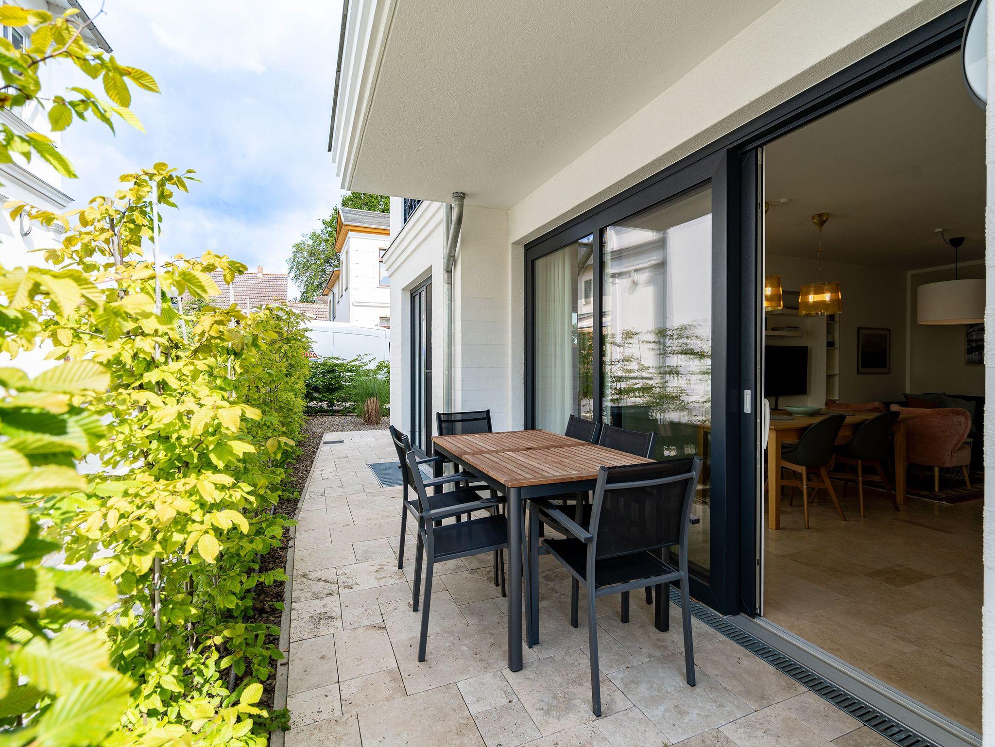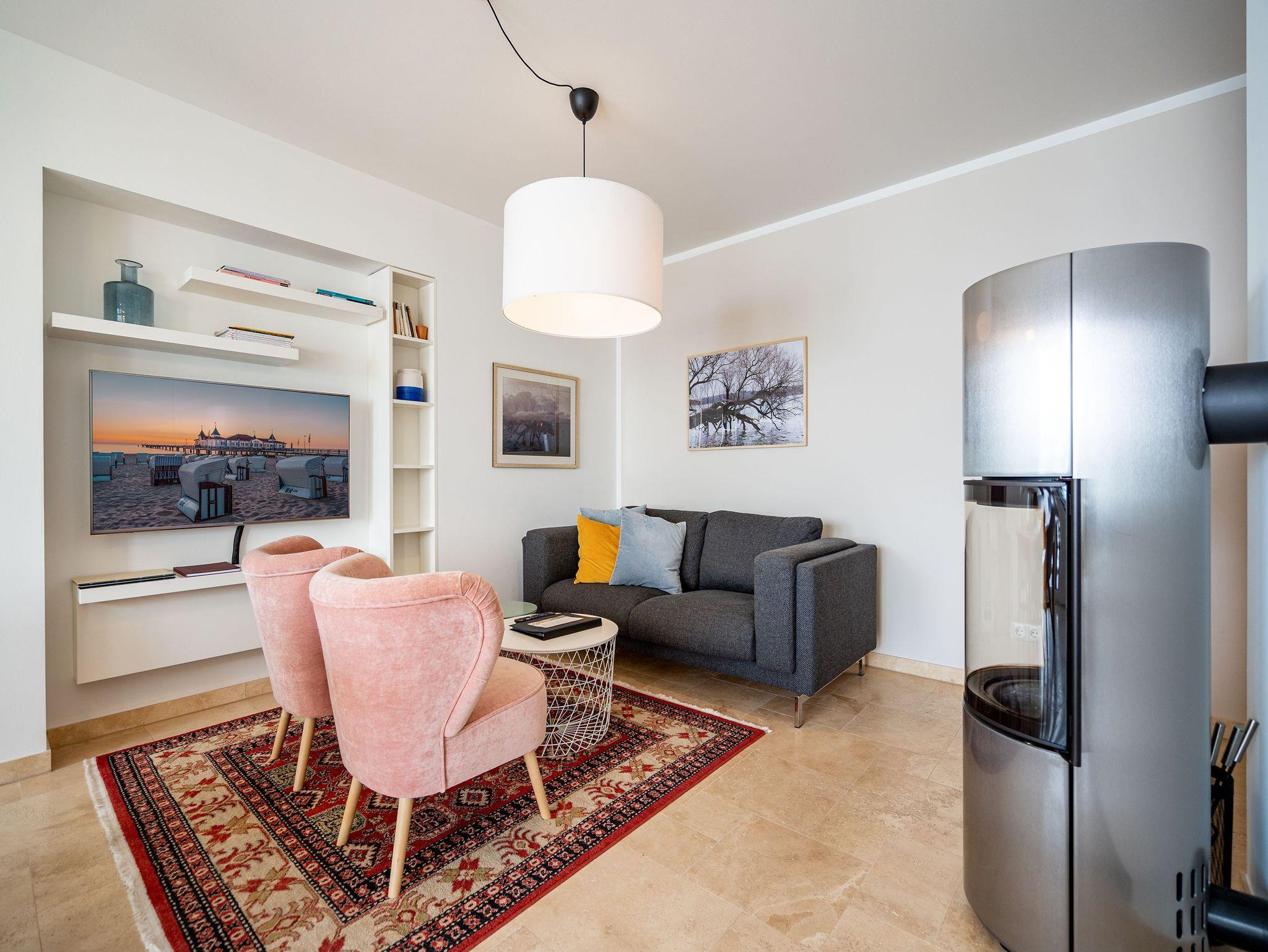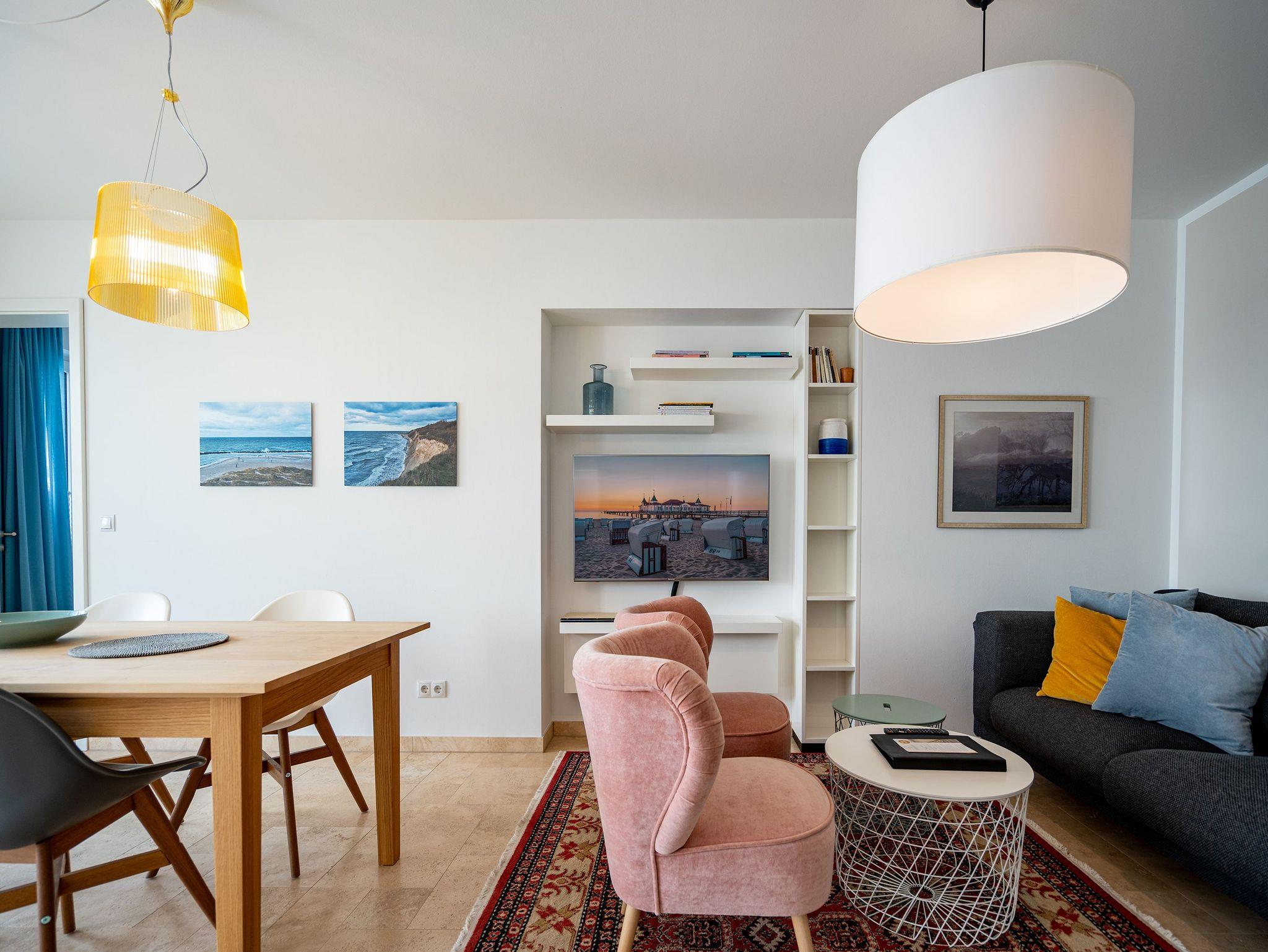 Ankommen, abschalten und neue Energie tanken. Im neu gebauten Quartier 7 im Herzen des Kaiserbades Ahlbeck fällt Ihnen das sicher ganz leicht. Moderne und stilvoll eingerichtete Appartements laden zum Wohlfühlen und Entspannen ein. In den ersten und zweiten Stock gelangen Sie via Fahrstuhl. Schöne, alte Villen umgeben die Anlage, verleihen dem Wohngefühl ein besonderes Flair. Die Zwei- und Drei-Zimmer-Appartements sind geräumig, offen und hell und teilweise mit einer Sauna oder einem Kamin ausgestattet. Wohnkomfort vom Feinsten lädt zum Faulenzen ein. Genießen Sie die frische Ostseeluft auf dem Balkon oder der Terrasse, denn jede Wohnung besitzt einen kleinen Außenbereich. An stürmischen Tagen können Sie von hier aus sogar die Wellen rauschen hören. Das beste Rezept für einen erholsamen Schlaf. Offene Wohnbereiche und voll ausgestattete Küchen sorgen für alle Annehmlichkeiten. Das Haus bietet eine Tiefgarage (Einfahrthöhe ca. 2,03 m). Einige Wohnungen verfügen über einen Kellerraum, der als Unterstellmöglichkeit für Fahrräder genutzt werden kann. Das WLAN-Netz ist für alle kostenfrei. Willkommen also in Ihrem kleinen Urlaubsparadies.