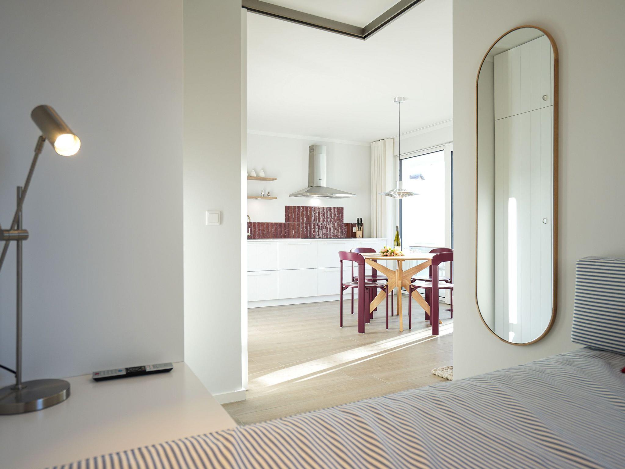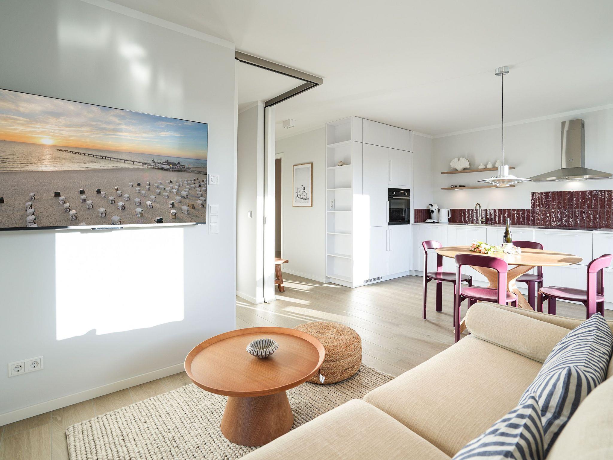 Die Villa Kamadori im Friedrich-Ebert-Ring im Seebad Ahlbeck ist eine exklusive, moderne Stadtvilla in strand- und zentrumsnaher Lage. Das stilvolle Haus beherbergt acht hochwertige 3-Raum-Appartements und ein 2-Raum-Appartement ? ideal für Paare und Familien, die Wert auf Komfort, Design und eine ruhige Umgebung legen. Alle Wohnungen sind geschmackvoll eingerichtet und bieten ein helles, modernes Ambiente. Je nach Appartement gehören Sauna und/oder Kamin zur Ausstattung und sorgen für eine besonders angenehme Wohlfühlatmosphäre ? perfekt für erholsame Tage zu jeder Jahreszeit. Ein Aufzug führt bequem in alle Etagen. Für Fahrräder steht ein gemeinschaftlich genutzter Abstellraum zur Verfügung. Jede Wohnung verfügt über einen eigenen Stellplatz in der Tiefgarage (Durchfahrthöhe 1,85m) ? praktisch und komfortabel.