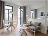 Klein, aber fein und absolut kuschelig ist das 31 Quadratmeter große 1-Raum-Appartement A 2.6 im Haus A im 2. Obergeschoss. Es ist für bis zu zwei Personen ein idealer Rückzugsort direkt am Meer. Ein Wohlfühlort, der durch seine liebevolle Einrichtung und das moderne, nordische Designkonzept aus hellen und warmen Farben besticht. In dem offenen Wohn-Essbereich, in den eine kleine, aber hochwertig und voll ausgestattete Küchennische integriert ist, besticht durch seine Behaglichkeit und den seitlichen Seeblick, den Sie vom Süd-Ost-Balkon aus genießen können. Ob vom Bett oder von den beiden Sesseln aus ? ein 43-Zoll-Flachbildfernseher sorgt für spannende Filmabende. Am schönen Esstisch oder am Tisch auf dem Balkon schmeckt das Frühstück bei Morgensonne und gesunder Seeluft gleich noch einmal so gut. Das komfortable Boxspringdoppelbett (1,80m x 2,00m) verspricht erholsame Nächte und schöne Urlaubsträume, und ein großer Kleiderschrank bietet ausreichend Stauraum für Ihre Kleidung und persönlichen Gegenstände. Für Erfrischung sorgt das innenliegende Bad mit einer Dusche, einem WC und einem Waschtisch. Zur Wohnung gehört ein PKW-Stellplatz in der Tiefgarage. Ankommen und wohlfühlen ? das wünschen wir Ihnen in diesem charmanten Feriendomizil.