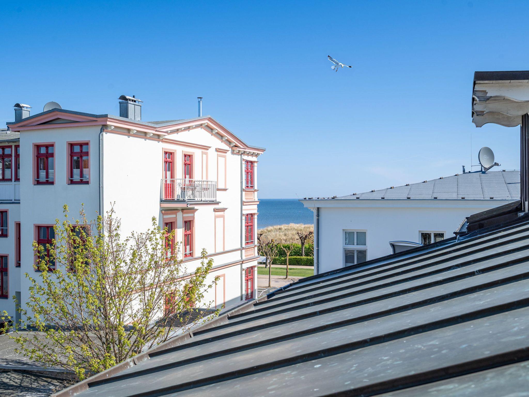 Heimelig wohnen unter dem Dach der Villa Albertine! Freuen Sie sich auf eine gemütliche 1,5-Raum-Ferienwohnung (36 qm) mit Suite Charakter. Neu gestaltet und mit modernen Möbeln ausgestattet ist sie ein ideales Urlaubziel für 2 Personen. Der helle Wohn-/Schlafbereich ist mit einem komfortablen Boxspringdoppelbett ( 1,80m x 2,00m), Flat-TV und zwei bequemen Ohrensesseln ausgestattet. Von hier aus hat man Zugang zum Westbalkon mit kleiner Sitzgruppe. Die separate Küche (2 Platten Cerankochfeld, Geschirrspüler und Mikrowelle) verfügt über einen schönen Essplatz. Ein Bad mit Dusche rundet dieses Appartement ab. Ein PKW-Stellplatz Nr. 9 befindet sich unter einem Carport direkt auf dem Grundstück.
