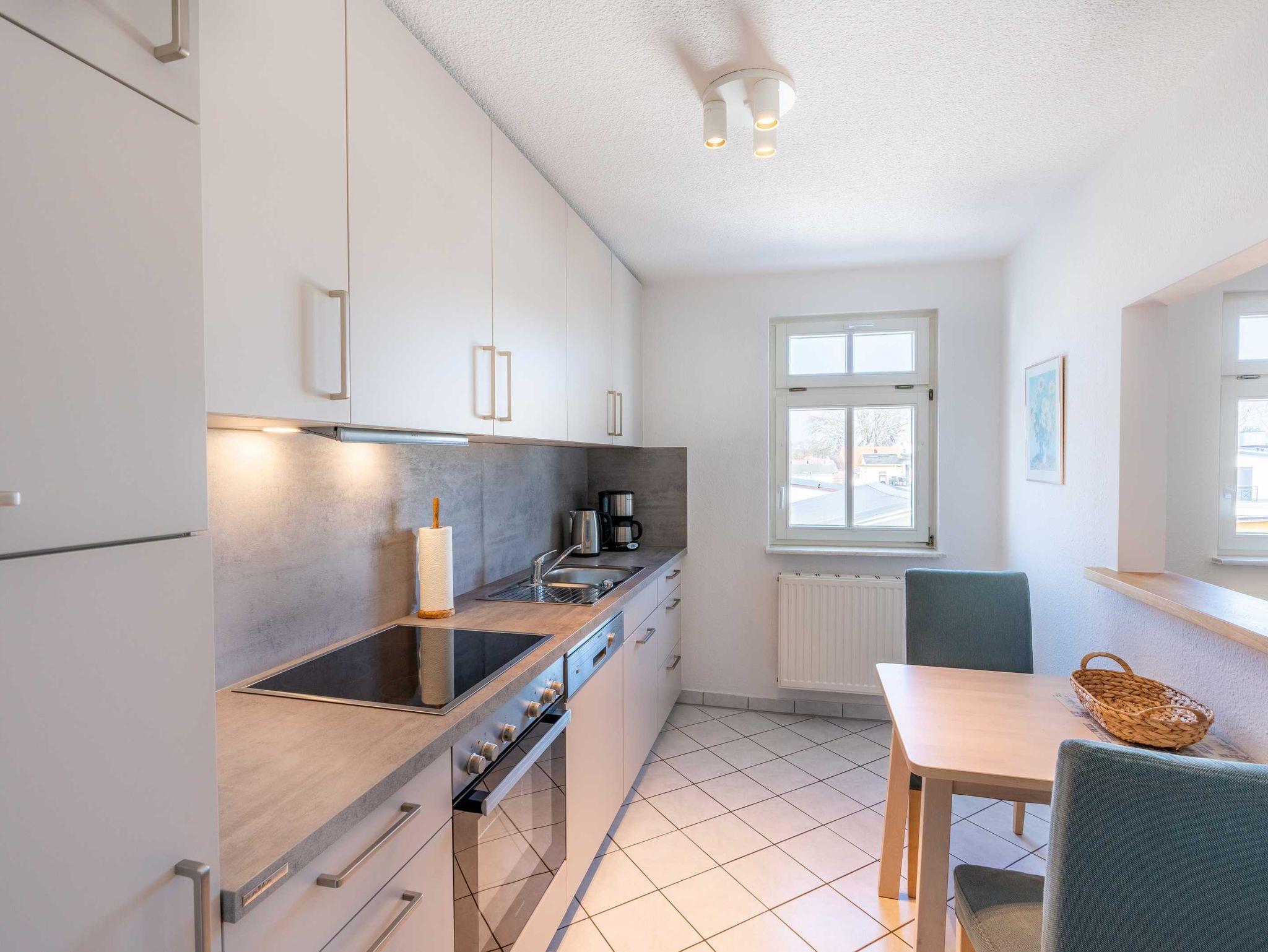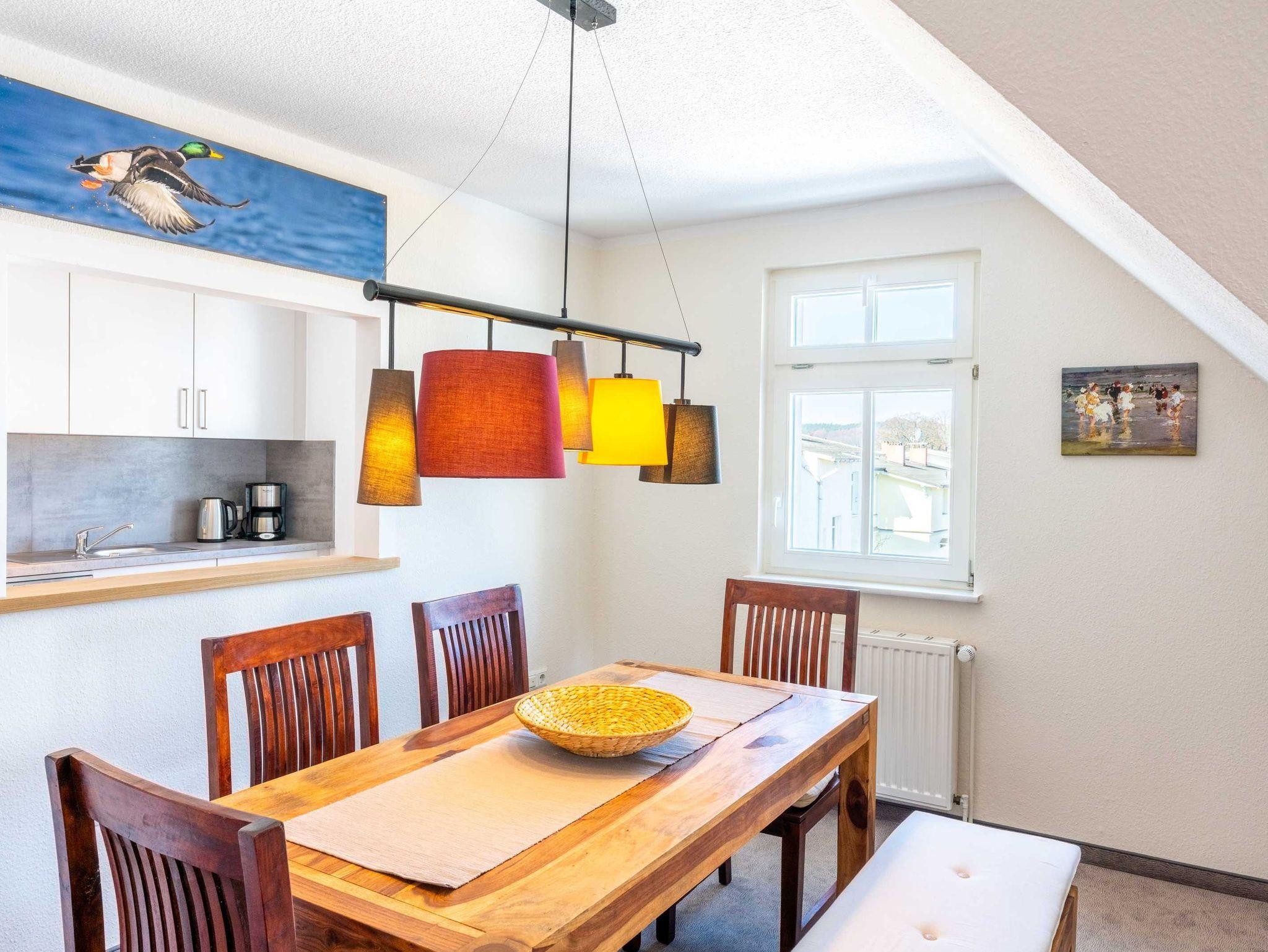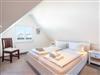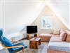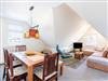 Die im Dachgeschoss (2.OG) liegende Ferienwohnung bietet Platz für 4 - 6 Personen, zwei Schlafzimmer, einen großen Wohn- und Essbereich, eine vollausgestattete Küche und ein Badezimmer mit Dusche/WC.