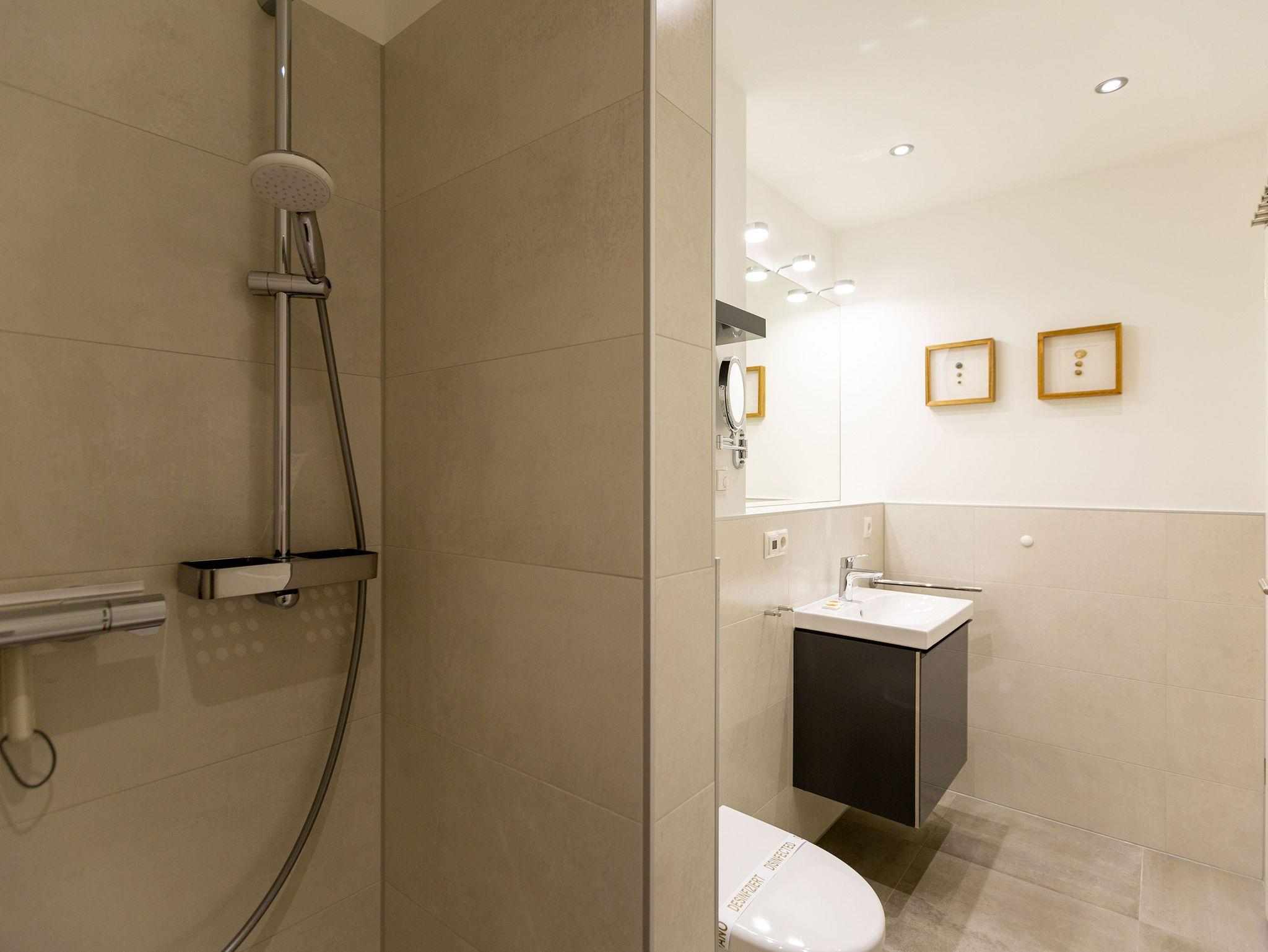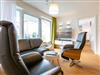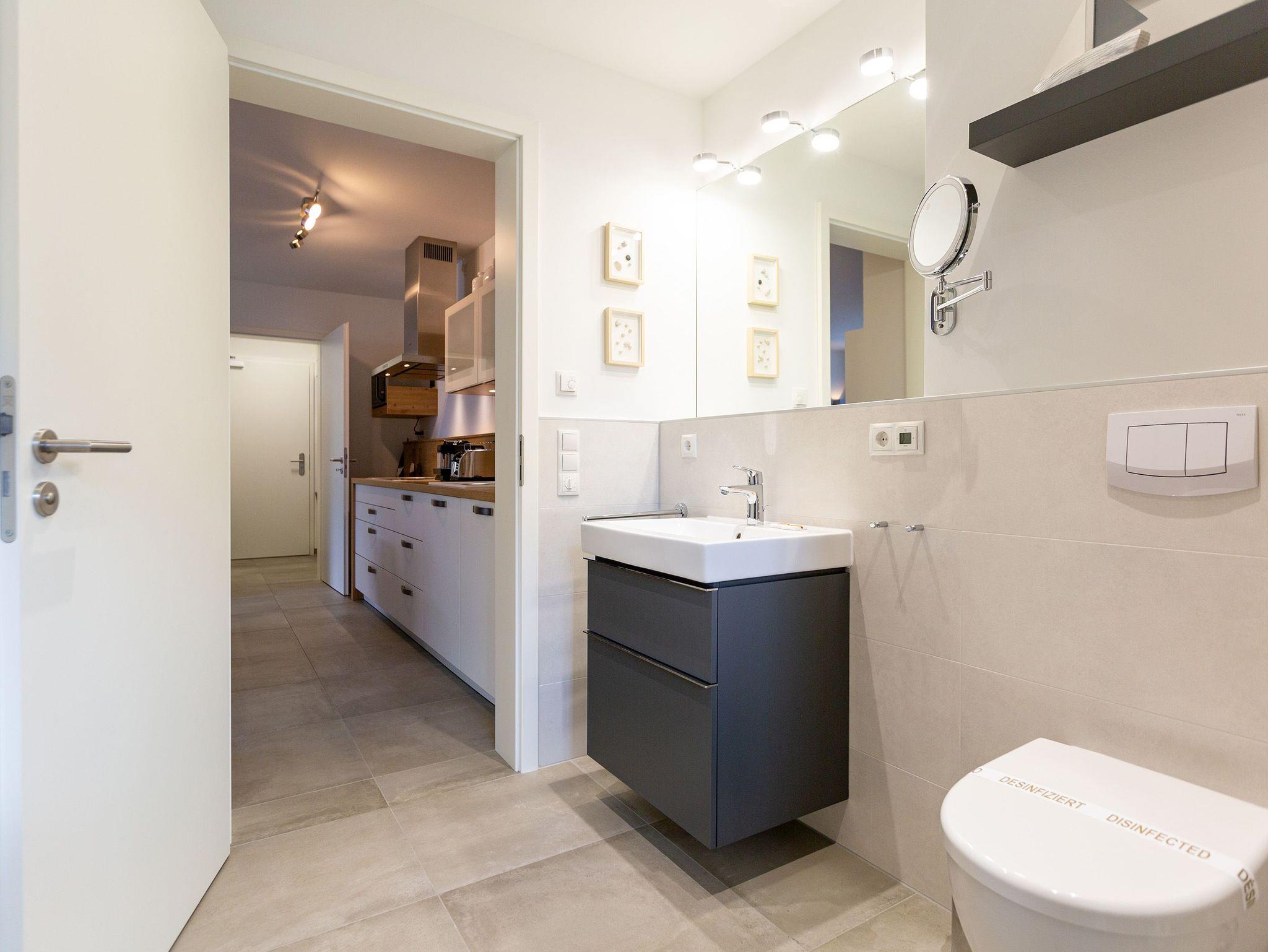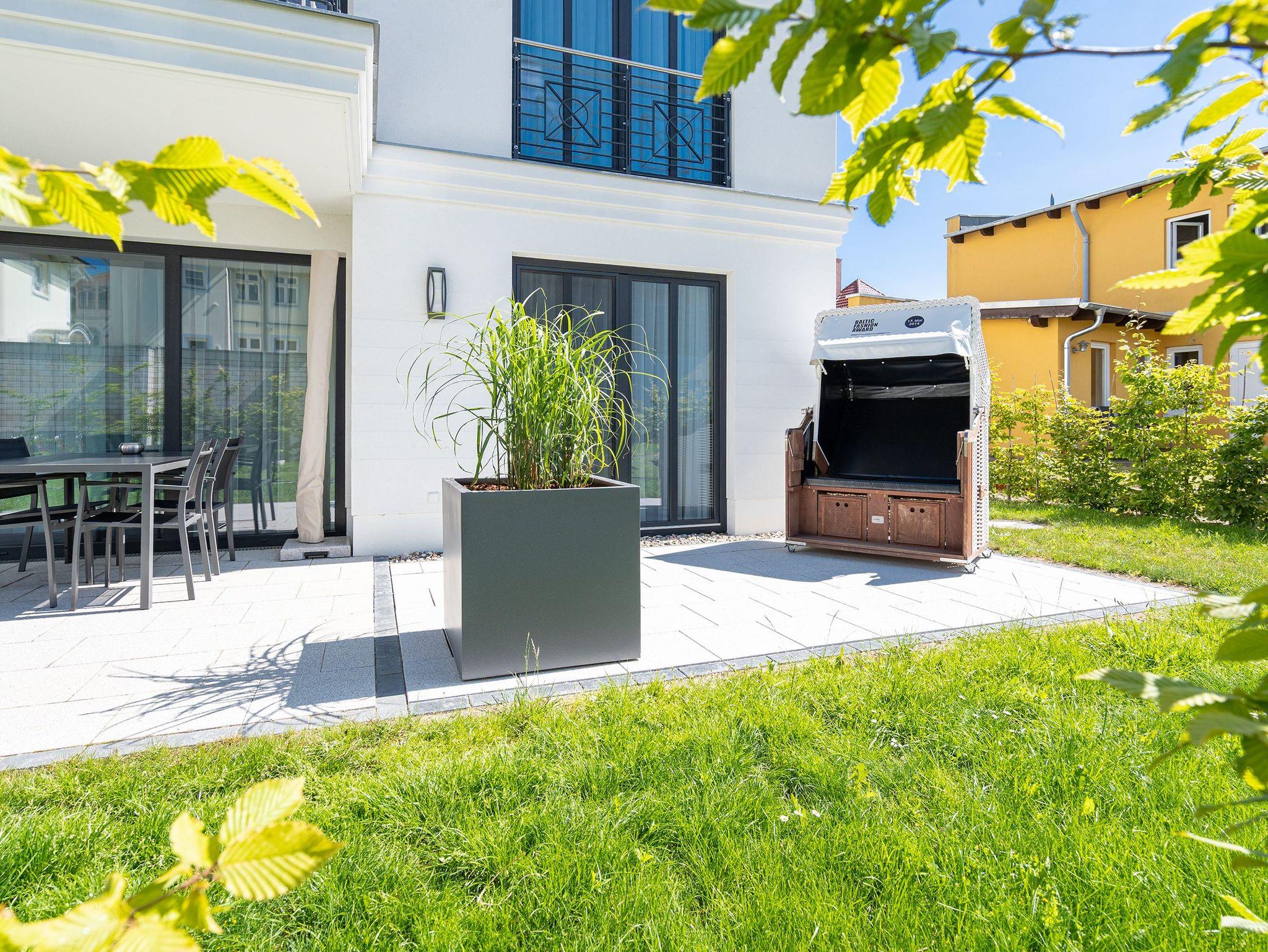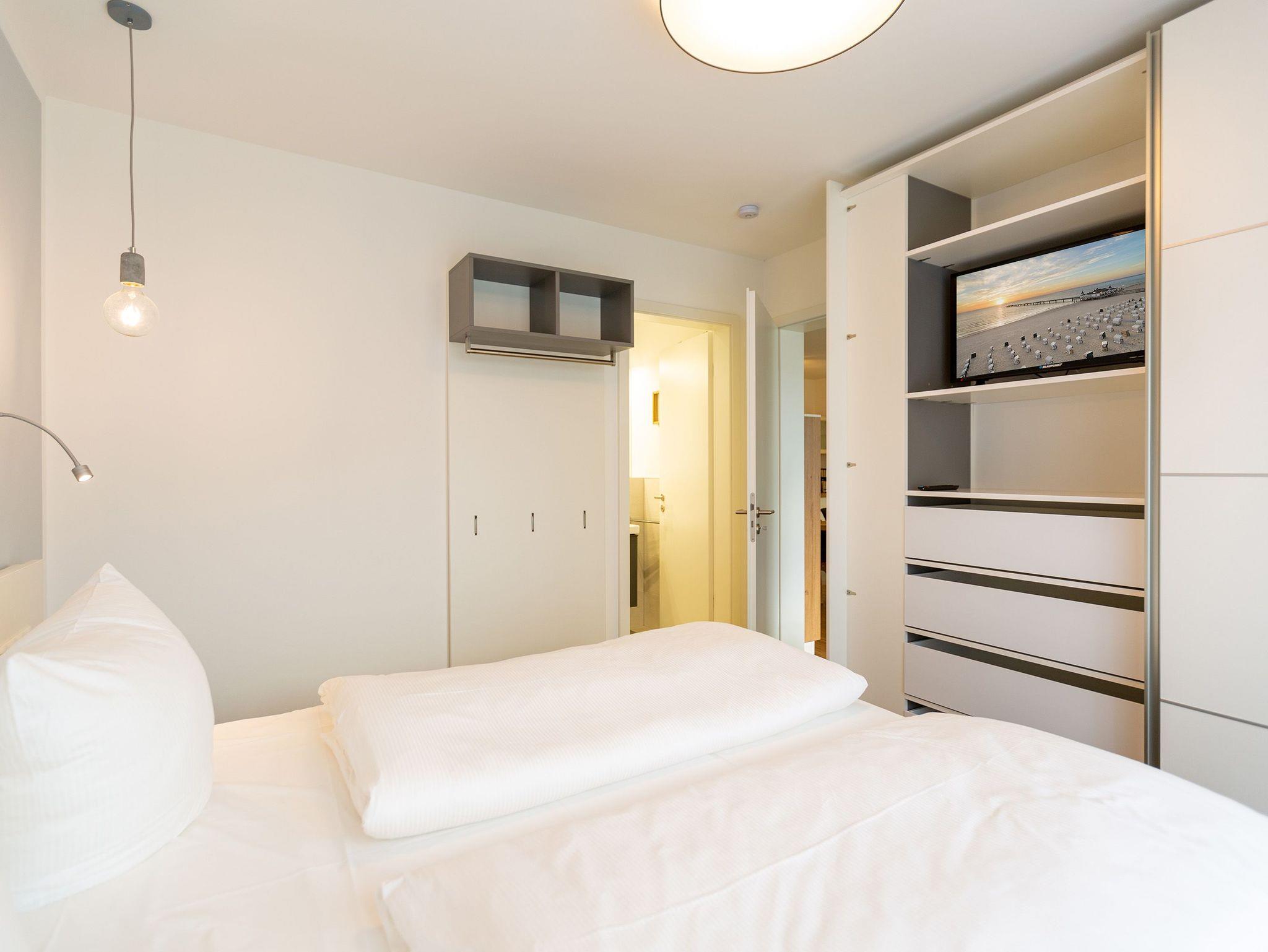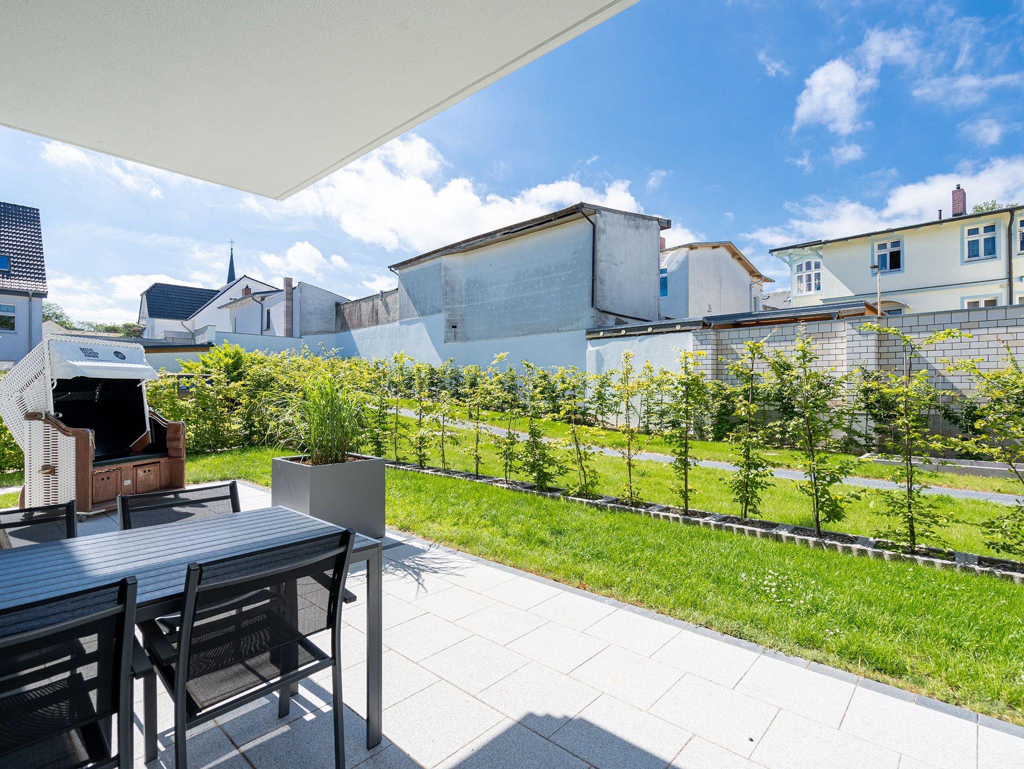 Der Abend senkt sich auf die Insel. Es wird langsam dunkel. In Ihrem Urlaubsdomizil aber wird es kuschelig. Denn im Kamin flackert ein knisterndes Feuer. In diesem Drei-Zimmer-Appartement im Erdgeschoss vom Quartier 7 können es sich bis zu vier Personen gemütlich machen, ausspannen und eine unvergesslich schöne Ostseeauszeit miteinander verbringen. Denn das Rauschen der Wellen ist nur ein paar Gehminuten entfernt. Auf den 68 Quadratmetern finden Sie reichlich Platz, um Zeit für sich und Zeit gemeinsam zu verbringen. Das großzügige, moderne Wohnzimmer mit echtem Holzkamin, Flat-TV und einer gemütlichen Sofalandschaft lädt zum Entspannen und Verweilen ein. Ob Ledersofa oder stylishe Design-Ledersessel ? der Inneneinrichter hatte ein feines Gespür für das gewisse Urlaubsgefühl. Die zum Wohnzimmer hin offene Küche ist voll ausgestattet. Hochwertige Markengeräte wie Herd, Cerankochfeld, Mikrowelle, Geschirrspüler oder Kaffeemaschine gehören ebenso zur Ausstattung wie erlesenes Geschirr. Ein schöner Essplatz lädt zum Verweilen und Genießen ein. Bei schönem Wetter können Sie das Essen aber auch draußen auf der Süd-West-Terrasse (13 Quadratmeter) zu sich nehmen. Sonnenüberflutet eignet sie sich auch bestens zum Sonnenbaden. Das Appartement besitzt zwei Schlafzimmer mit je einem bequemen Boxspringdoppelbett (1,80 m x 2,00 m), einem extra dafür angefertigten Einbauschrank und einem Flat-TV. Kuscheln und träumen werden hier zu Ihren Lieblingsbeschäftigungen. Die Betten sind bei Anreise bezogen. Ebenfalls in doppelter Ausführung ist das Bad mit Dusche, WC und Waschtisch vorhanden. Handtücher liegen bereit. Eines der beiden Bäder können Sie als kleine Wellness-Oase nutzen. Denn es verfügt über eine eigene finnische Sauna. Zur Ferienwohnung gehört in der Tiefagarage ein Pkw-Stellplatz. Das WLAN können Sie kostenfrei nutzen.