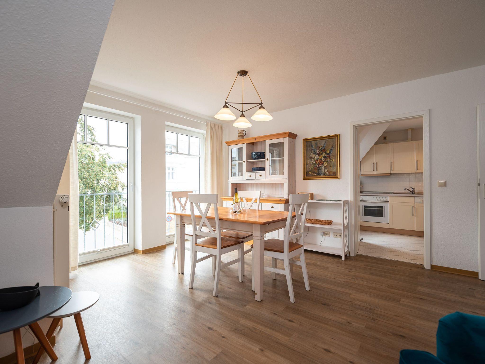 Entdecken Sie das Appartement 7 im Schloss Hohenzollern, einer unter Denkmalschutz stehenden Jugendstilvilla aus dem Jahr 1899, im Herzen von Ahlbeck. Dieses Juwel der Bäderarchitektur befindet sich nur wenige Schritte vom feinsandigen Ahlbecker Strand entfernt.