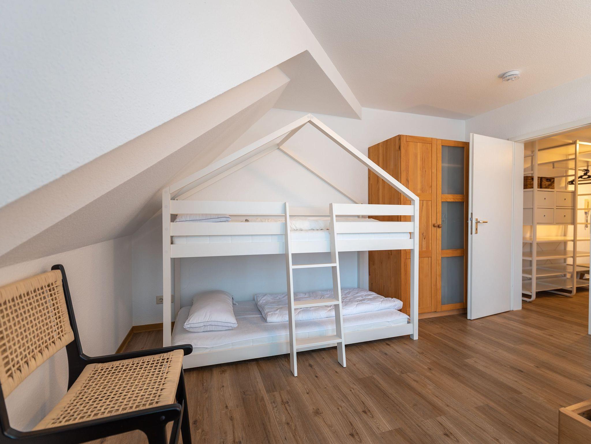 • Schlafzimmer mit Doppelbett und Etagenbett