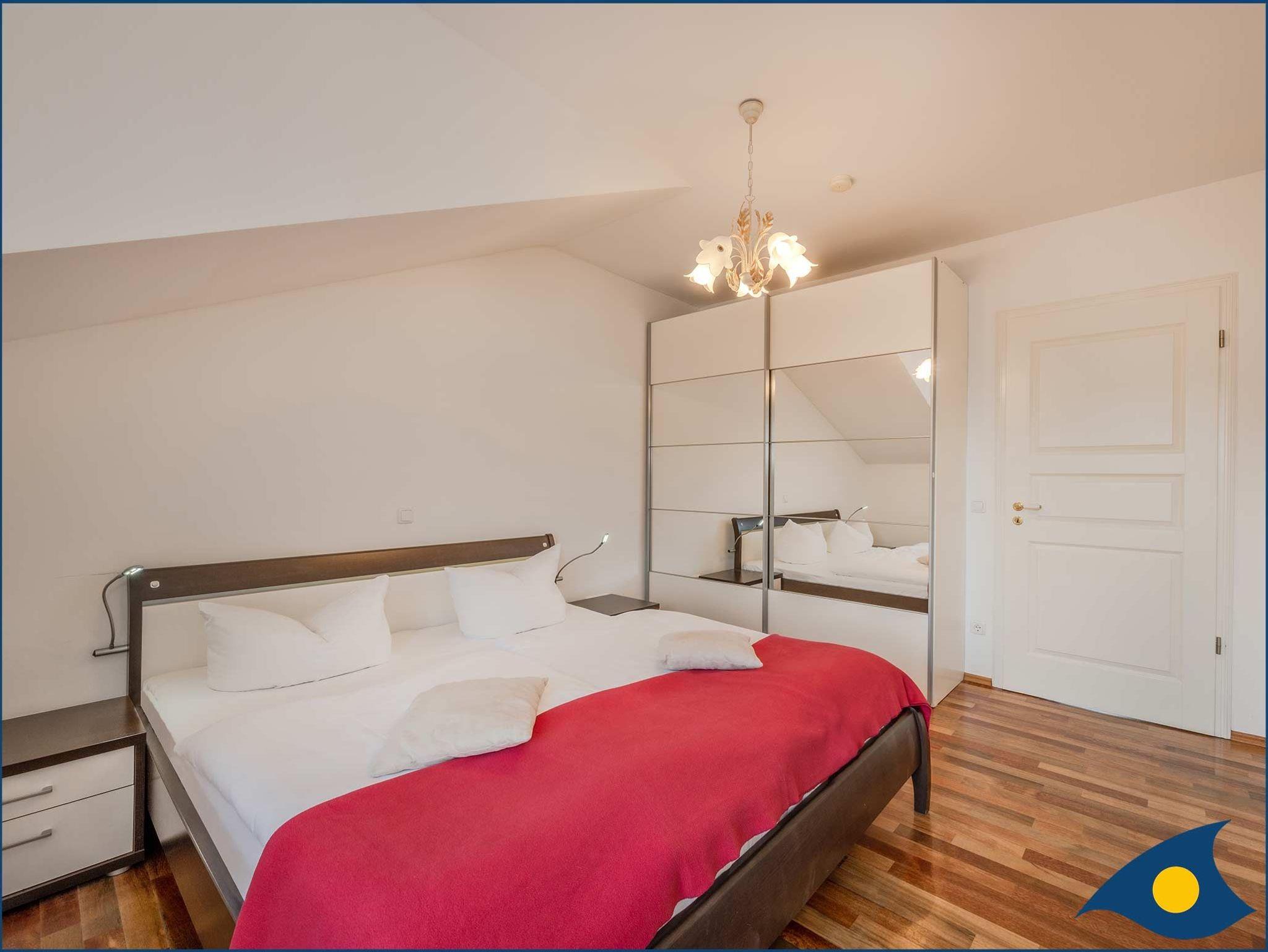 Erholsame Nächte können Sie im separaten Schlafzimmer mit Doppelbett und Südbalkon genießen.