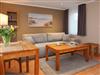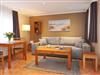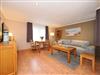 Das Wohnzimmer verfügt über eine Schlafcouch, die als Aufbettung für die 3. Person dient (180 x 200cm) und einen großen TV, der auch an ungemütlichen Tagen für Unterhaltung sorgt.