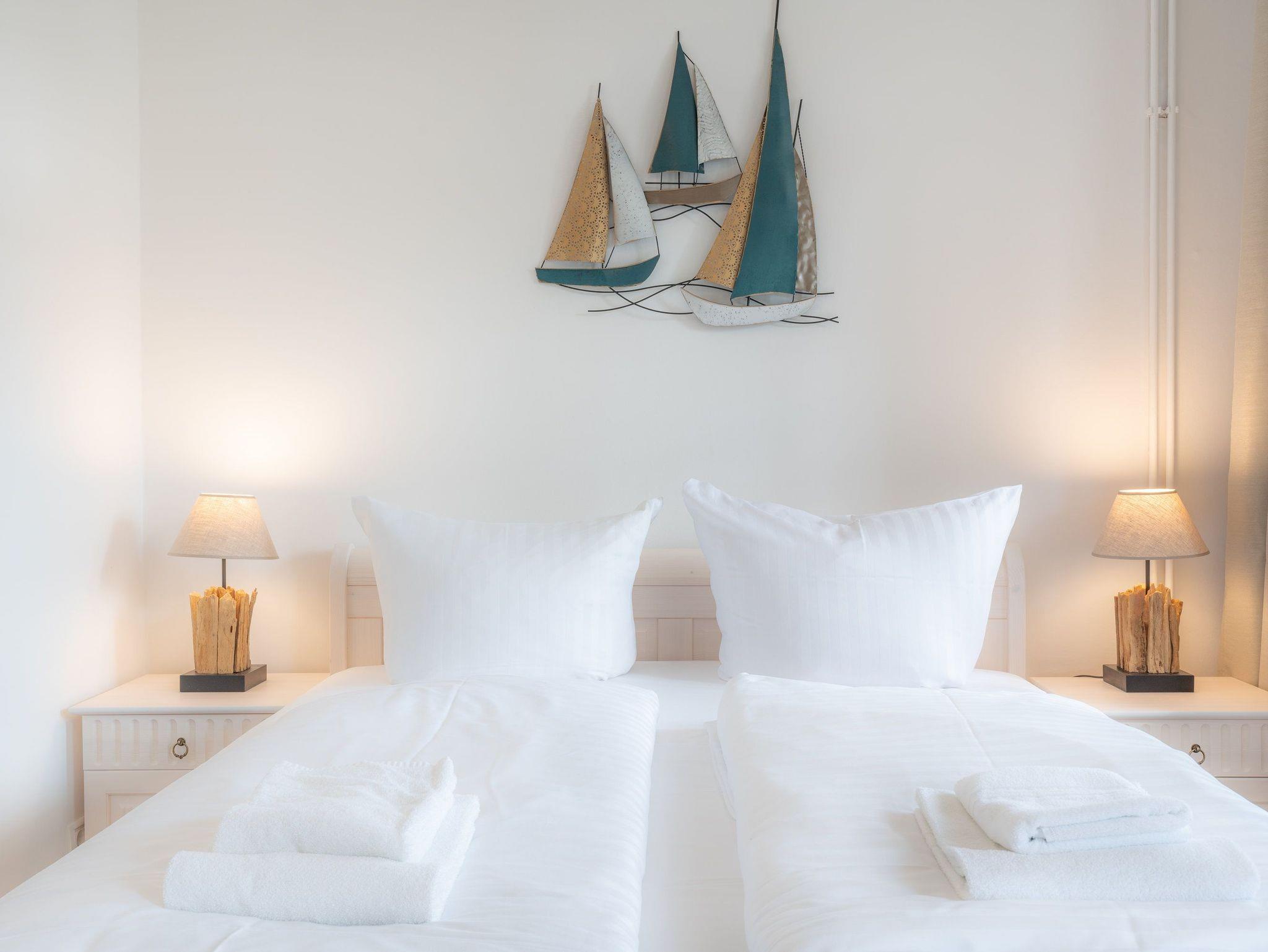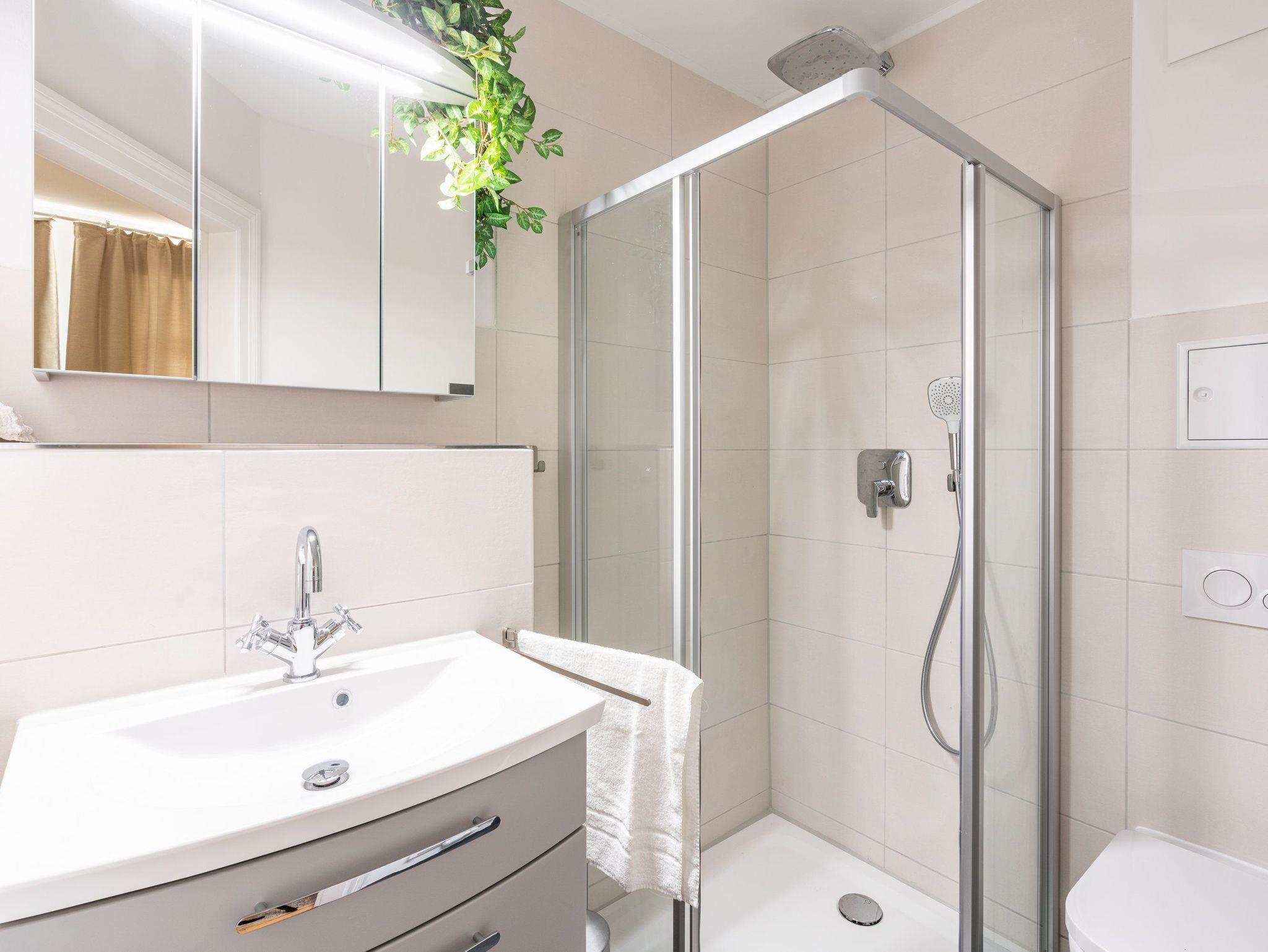 Damit Sie Ihre wohlverdiente Urlaubszeit bereits am Anreisetag in vollen Zügen genießen können, haben wir das Bett für Sie und das für Ihre lieben Mitreisenden bereits bezogen und ein Duschtuch sowie ein kleines Handtuch bereitgelegt. Highlight ist der zweite Wintergarten, welcher sich dem Schlafzimmer anschließt. Das Appartement verfügt über zwei Bäder, welche jeweils mit Dusche, WC und einem Haartrockner ausgestattet sind.