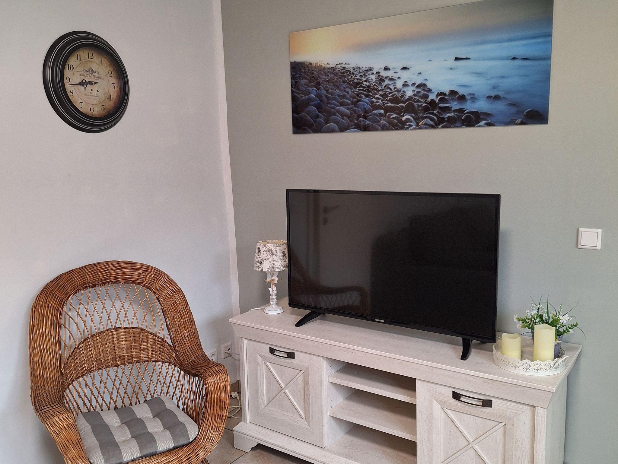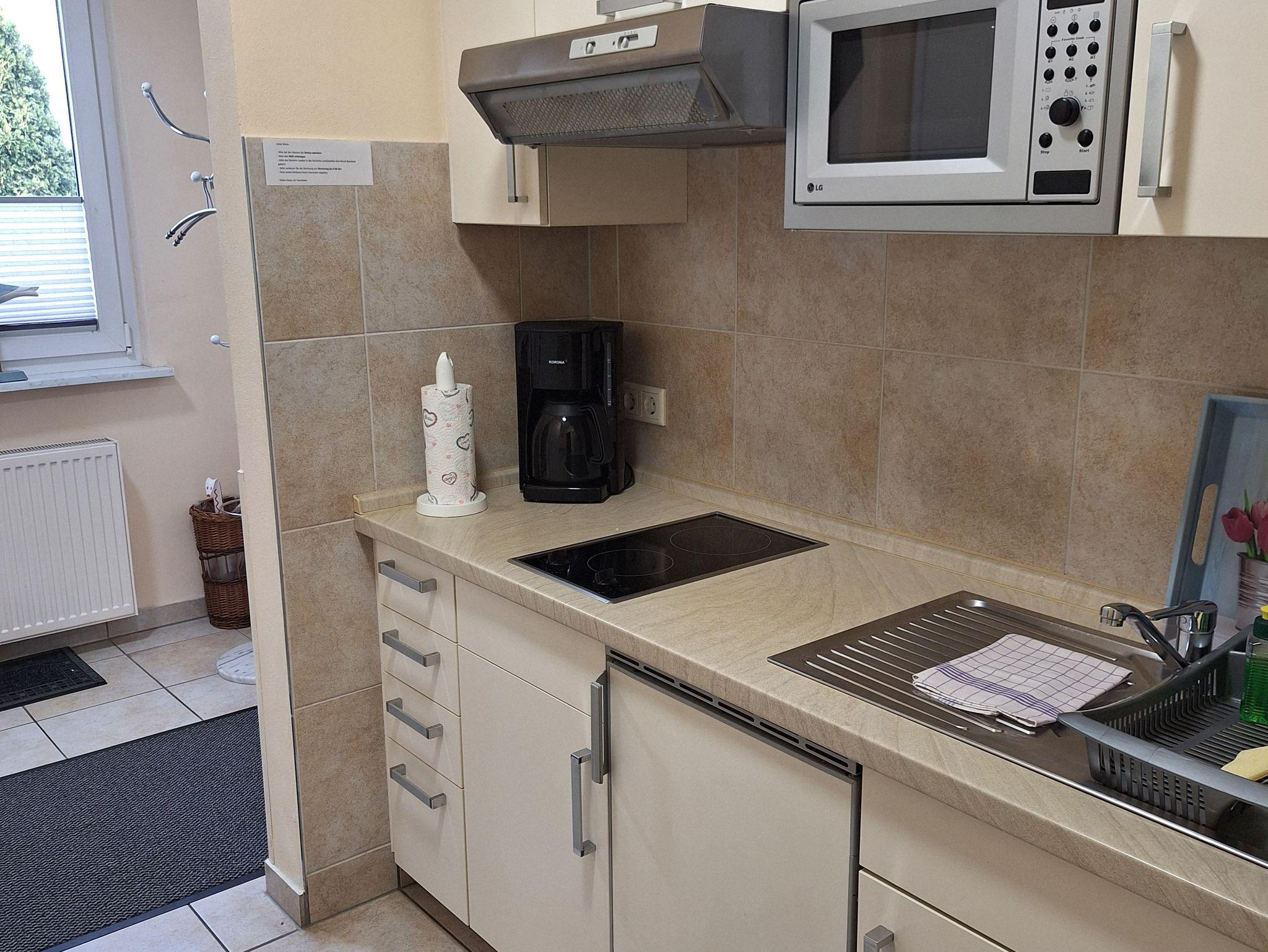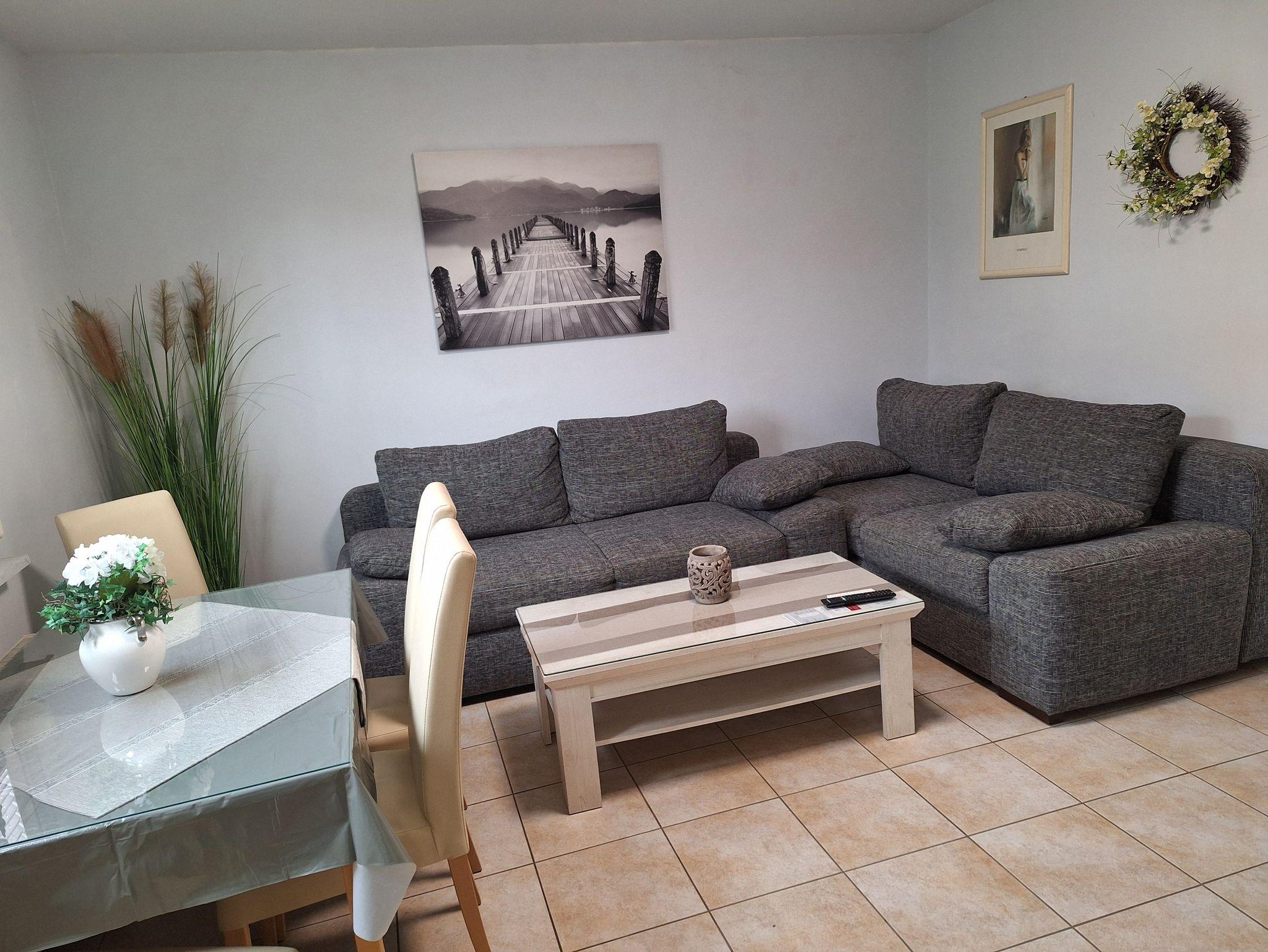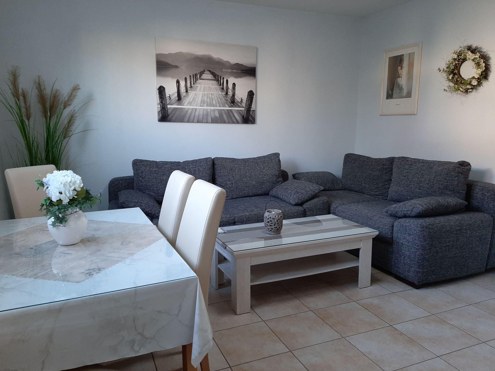 Die 56 qm große Ferienwohnung im Erdgeschoss ist für bis zu 4 Personen ausgestattet. Sie verfügt über ein Wohnzimmer mit gemütlicher Couch-Ecke, TV und Esstisch. Die komplett eingerichtete und separate Einbauküche ist mit Herd mit Cerankochfeld und Dunstabzug, Kühlschrank, Toaster, Kaffeemaschine, Wasserkocher, Mikrowelle u.v.m. ausgestattet. Das Schlafzimmer verfügt über ein Doppelbett und Kleiderschrank. Unser Bad ist mit Dusche und WC ausgestattet.