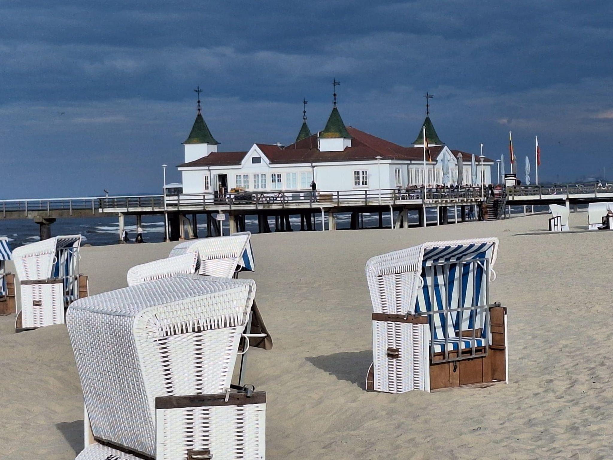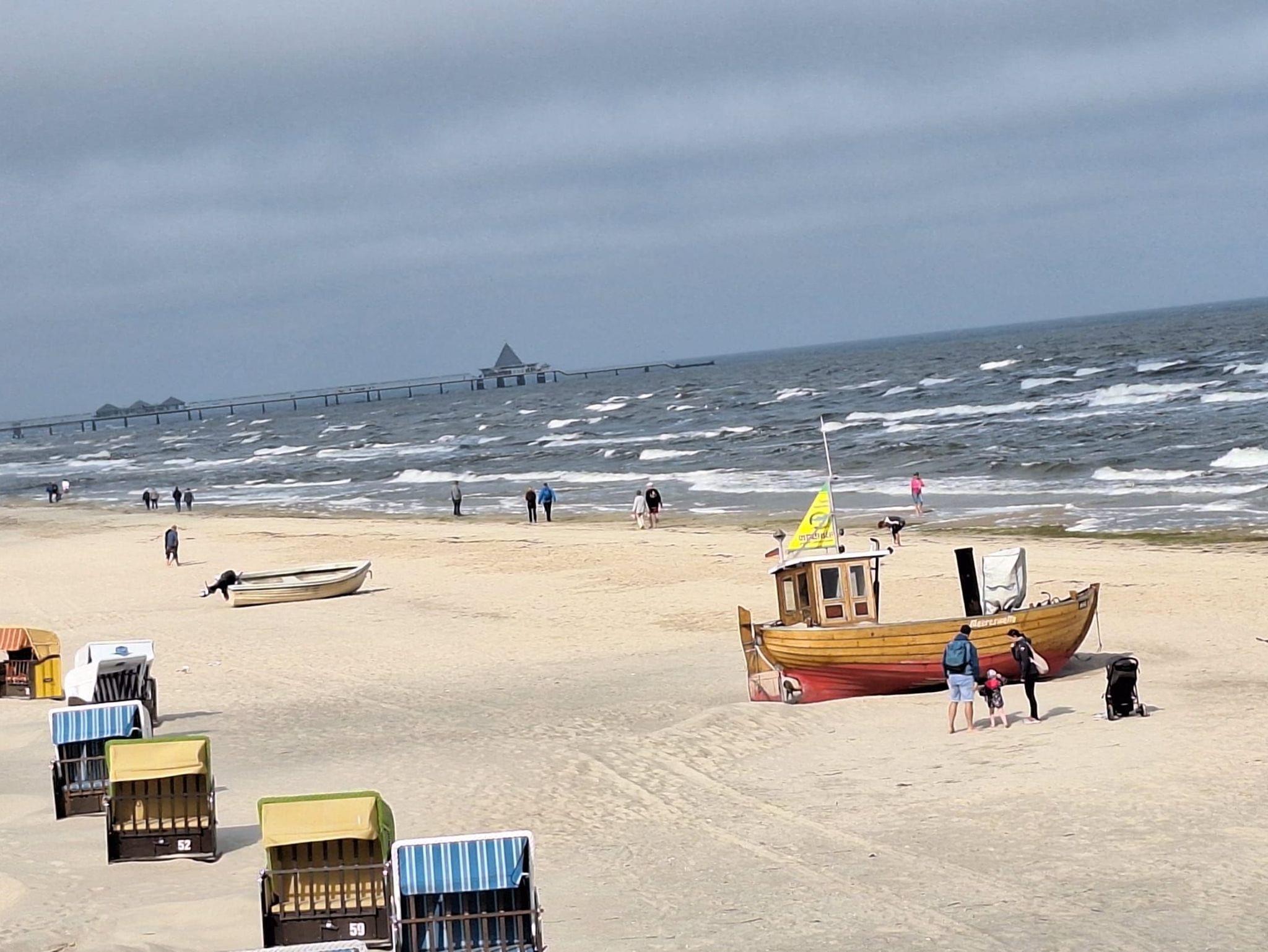 Eine große Terrasse mit zwei Strandkörben , Sonnenliegen, Sitzecken und einer Grillmöglichkeit laden unsere Urlauber zur Erholung und Sonnenbaden ein.