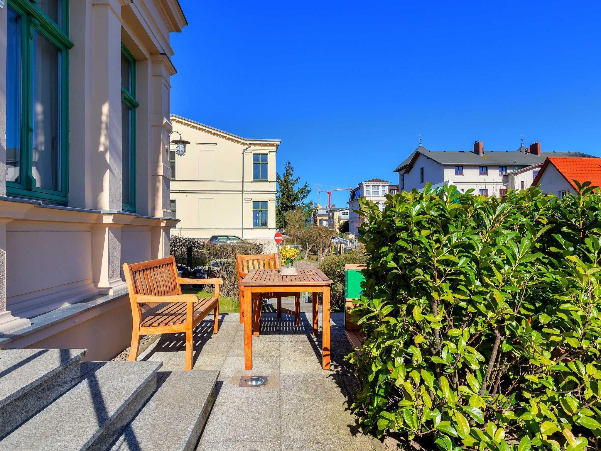 Villa Ostseewarte, STRANDNAH, teilw. SEEBLICK, FAHRSTUHL, Villa Ostseewarte Whg. 2, TERRASSE m. STRANDKORB