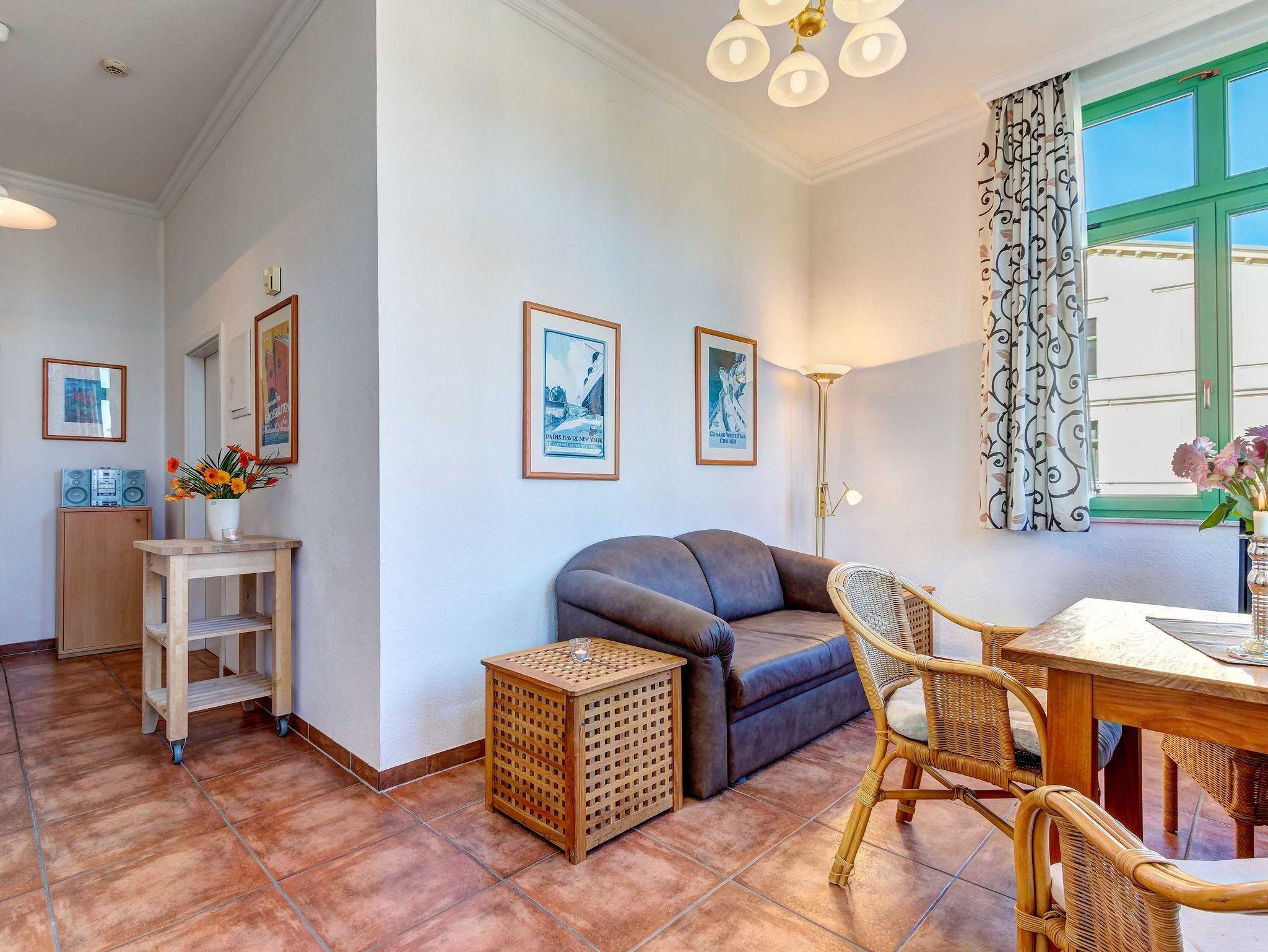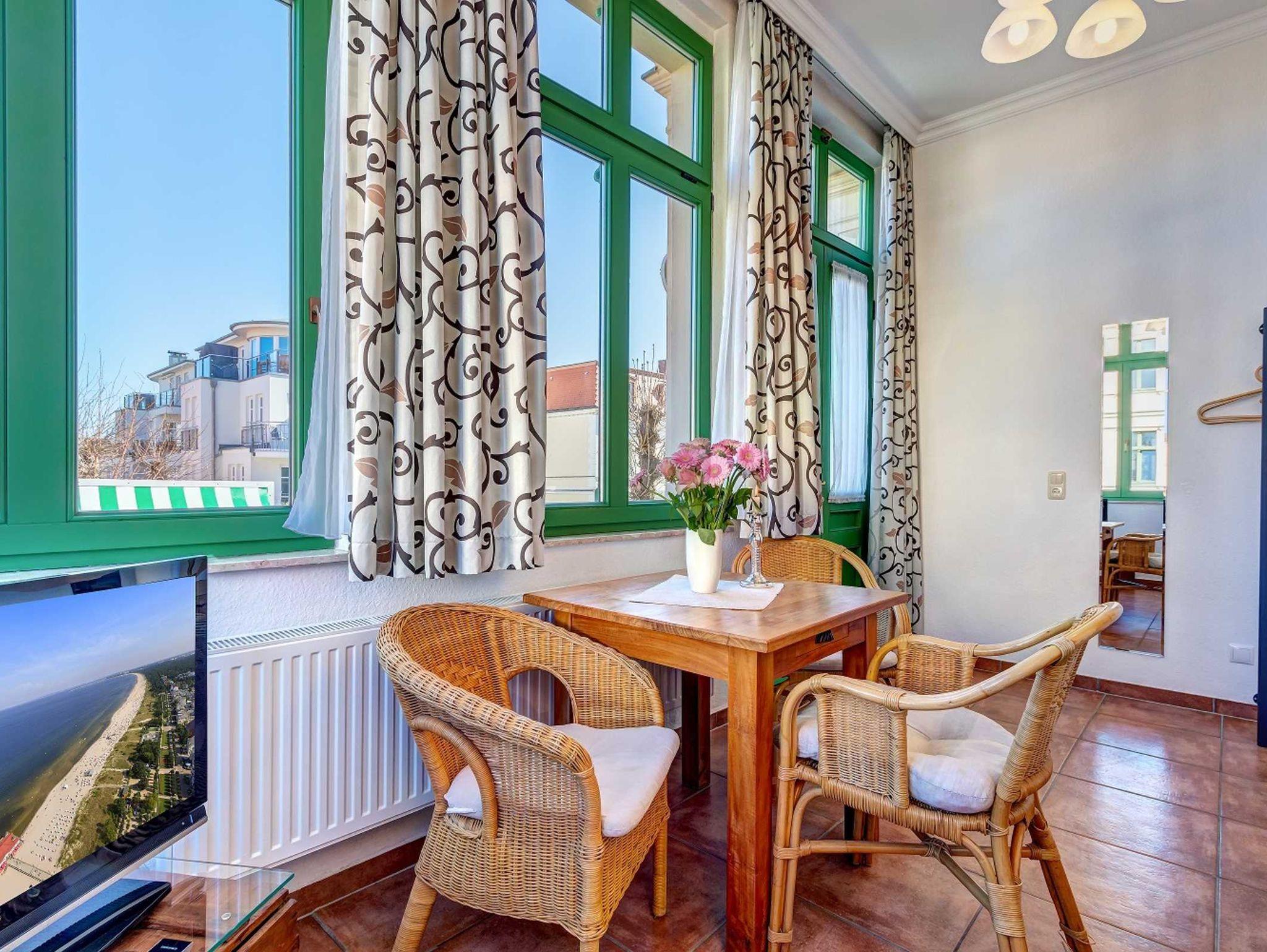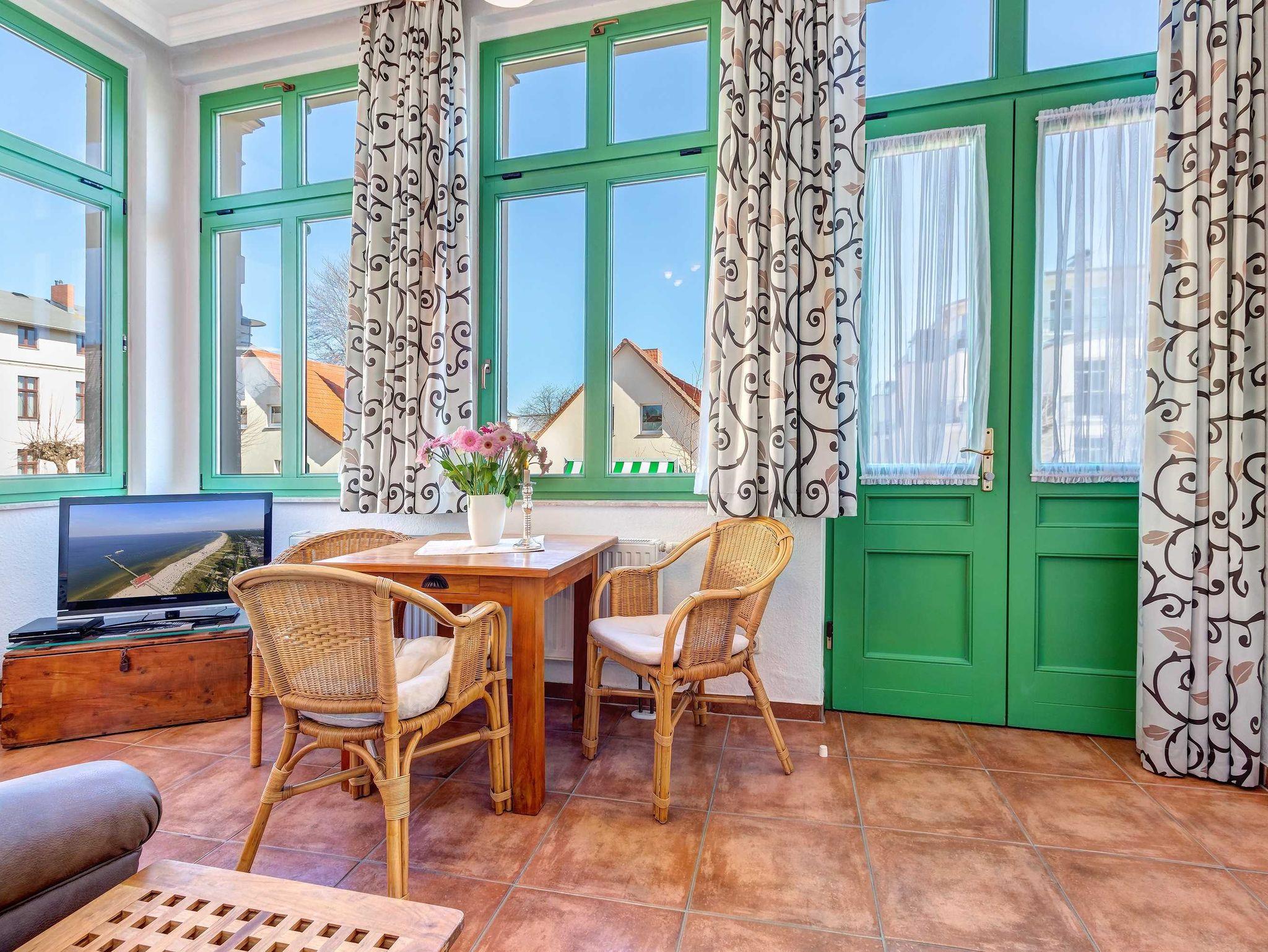 Das gemütliche 2-Zimmer-Appartement Nr. 2 hat einen separaten Eingang und befindet sich im Erdgeschoss der Villa Ostseewarte im Seebad Ahlbeck nur 2 Minuten vom Ostseestrand entfernt. Es verfügt über ein separates Schlafzimmer mit einem Doppelbett und einen Wohnbereich mit gemütlicher Sitzgruppe, auf welcher eine Aufbettung für eine dritte Person vorgenommen werden kann. Die Küchenzeile ist mit Kaffeemaschine, Wasserkocher, Toaster sowie Geschirrspüler ausgestattet. Das Bad verfügt über Dusche und WC. Zum Appartement gehört darüber hinaus eine große Terrasse mit Gartenmöbeln und einem Strandkorb. Ein Pkw-Stellplatz steht Ihnen auf dem Grundstück kostenfrei zur Verfügung und Ihre Fahrräder können Sie ebenfalls auf dem Grundstück in einem separaten Abstellraum unterbringen. Alle Wohnungen in der Villa Ostseewarte haben passwortgeschütztem DSL-WLAN Internetzugang (gerätegebunden, Euro 1,50 pro Tag und Gerät). Eine Waschmaschine können Sie gegen Gebühr gern nutzen (Münzgerät).