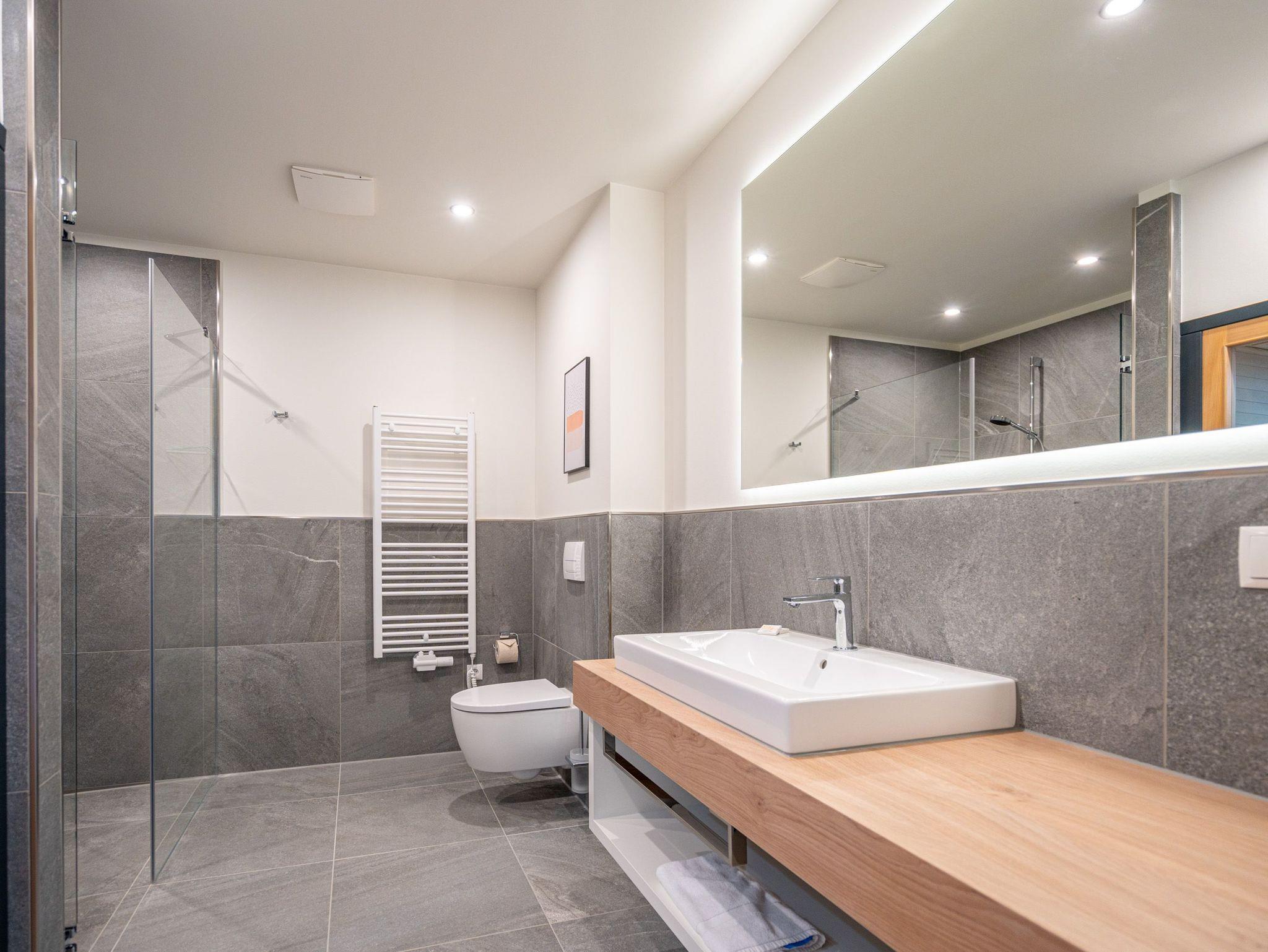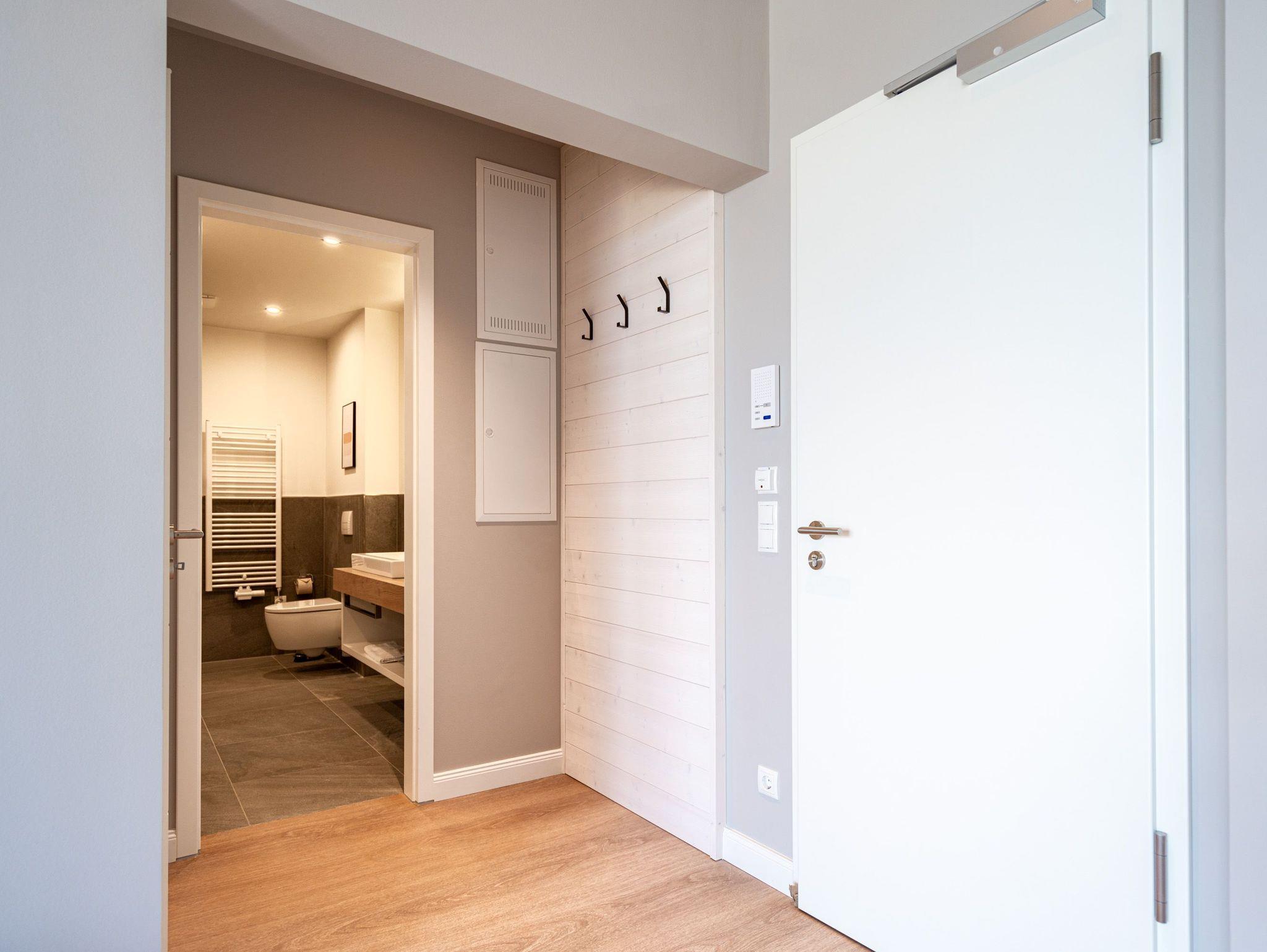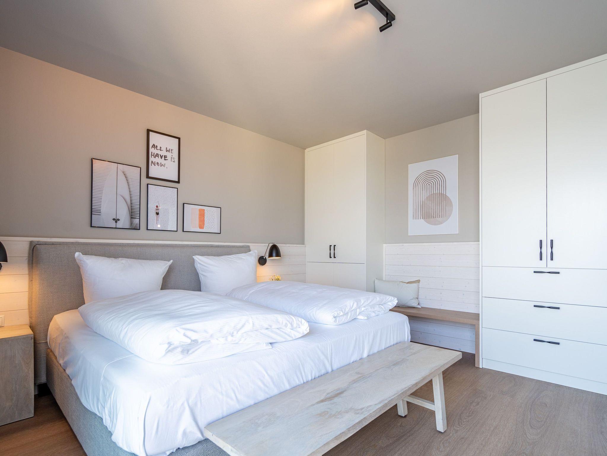 Die 2024 fertig gestellte Strandterrasse liegt direkt an der belebten Strandpromenade und bietet einen einzigartigen Ausblick auf die Grand Dame der historischen Seebrücken sowie die historische Konzertmuschel, einem beliebten Treffpunkt für Kunst und Kultur. Dahinter liegt die Ostsee ? ein Panorama, das zu den schönsten in den Kaiserbädern gehört. Es ist wie das Abtauchen in eine andere Zeit. In eine Zeit, in der man mit Stock, Sonnenschirm und Hut fürs „Sehen und gesehen werden“ über die Promenade schlenderte; aber auch in eine Zeit, in der ? damals wie heute ? Zeit einmal für eine kurze Weile keine Rolle spielt. Weil man angekommen ist im Loslassen, Entspannen und Genießen. Es ist dieser besondere Geruch nach Meeresluft und Freiheit, der in Erinnerung bleibt. Dazu die Bilder, die man mitnimmt. Von langen Strandspaziergängen, vom Lachen in fröhlich schäumenden Ostseewellen, von der Zeit in einem wunderschönen Urlaubsdomizil. Denn genau das ist die Strandterrasse mit ihren 56 modernen und exklusiven Ferienappartements direkt gegenüber der Ahlbecker Seebrücke. Die Ein-, Zwei- oder Dreizimmerwohnungen ? zwischen 40 und 70 Quadratmeter groß ? sind von einer Innenarchitektin gemeinsam mit unserem Erfahrungsschatz an Gästewünschen mit viel Liebe zum Detail und ganz individuell konzipiert worden. Entspannung und Wohlfühlen stehen an erster Stelle. Alles ist aufeinander abgestimmt und sorgt für eine gemütliche Atmosphäre. Wählen Sie zwischen einem Domizil in einem hellen, sandfarbenen Designkonzept oder einem Appartement mit anthrazitfarbenen Farbakzenten. Alle Appartements verfügen gleichermaßen über eine stilvolle und komfortable Einrichtung, die passgenau angefertigt worden ist, sowie über moderne Küchen und Bäder. Jedem Schlafzimmer ist ein eigenes Bad mit Dusche zugeordnet (außer App. B4.5). Die Appartements besitzen fast alle einen Balkon ? viele schauen sogar zur Ostsee hinaus. Die meisten Feriendomizile haben einen Elektrokamin und Infrarotsaunen. Im Erdgeschoss befindet sich ein separater Gemeinschaftsraum für Fahrräder. Außerdem besteht die Möglichkeit, im Gemeinschaftswaschraum 2 Waschmaschinen [&] Trockner zu nutzen. Ergänzt wird das Angebot durch eine Gemeinschaftssauna, die täglich von 11:00 bis 22:00 Uhr nutzbar ist. In der Tiefgarage (Einfahrtshöhe 2,03 Meter) steht für jede Wohnung 1 Pkw-Stellplatz zur Verfügung. Ist alles zur Zufriedenheit untergebracht? Dann kann der Urlaub ja beginnen. Und beim Blick vom Balkon über die Ostsee treffen sich zum Sonnenaufgang das Heute und das Damals. Gelassenheit legt sich beim Gang hinunter an den Strand auf die Seele. Jetzt darf die Zeit stehenbleiben.