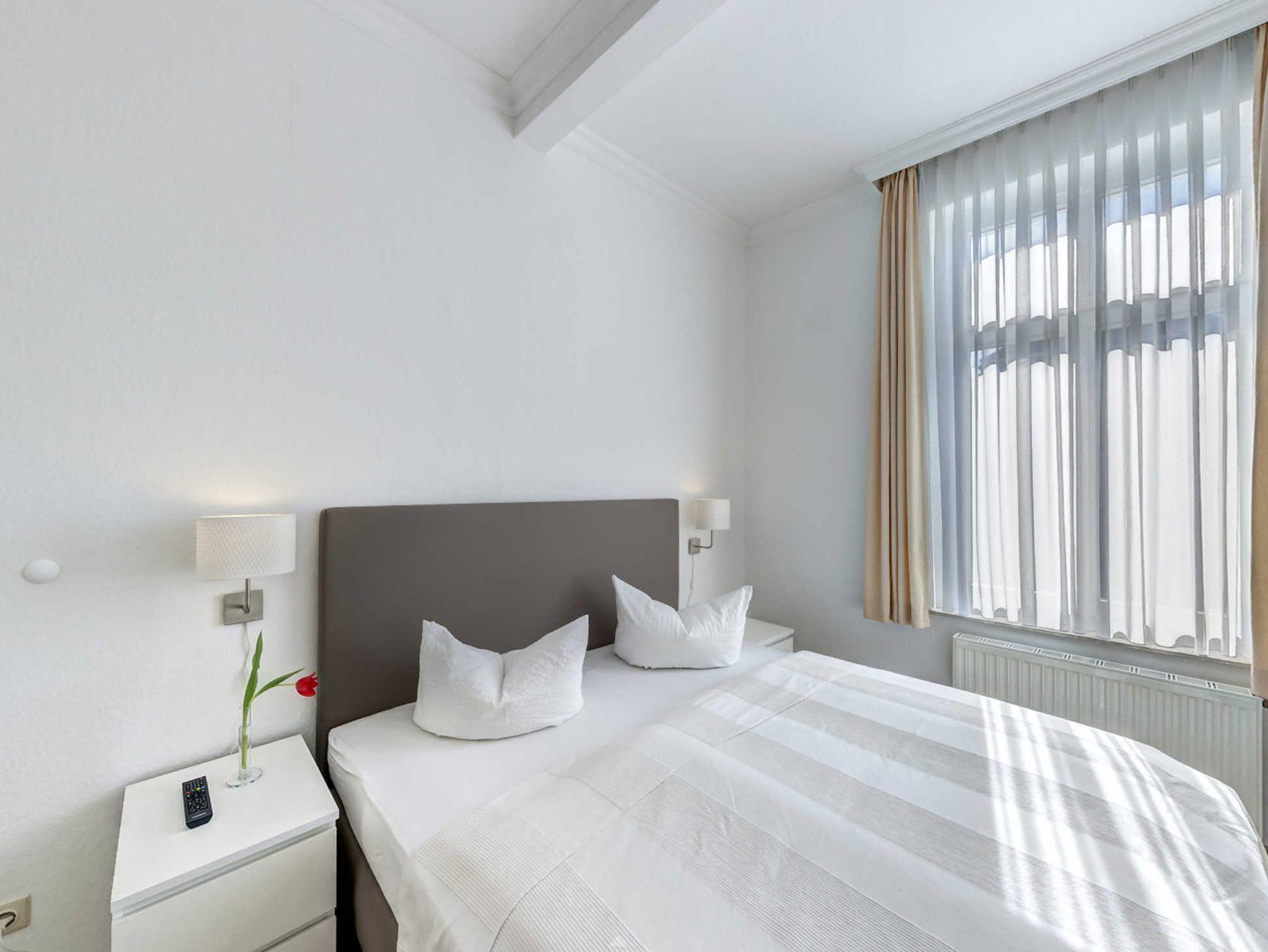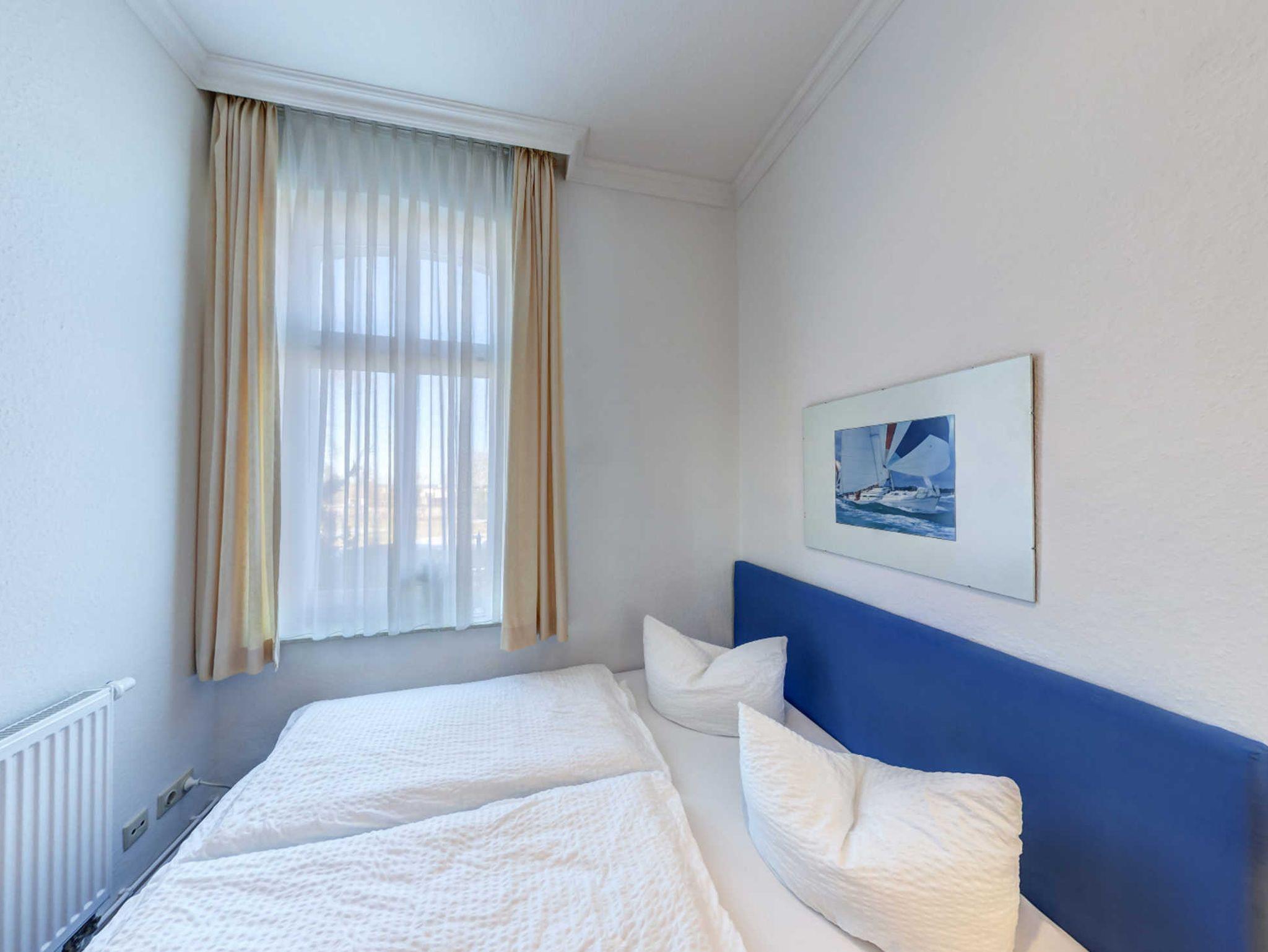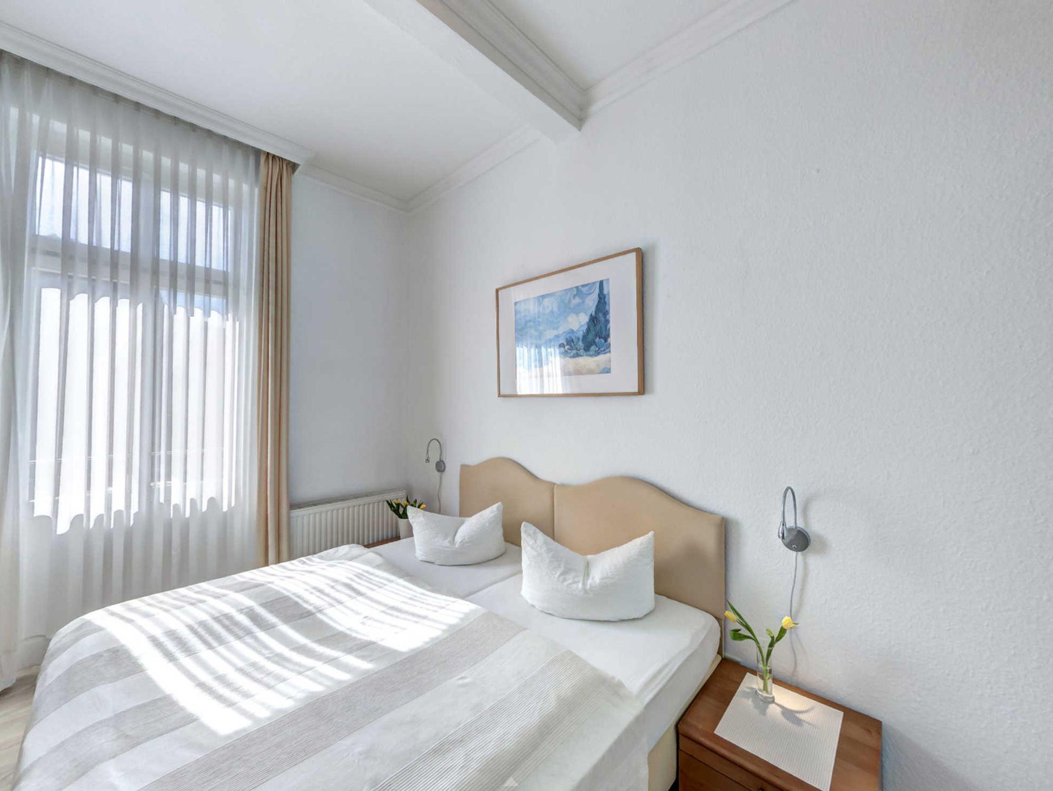 Das komfortable 4-Zimmer-Appartement EG 2 befindet sich im Erdgeschoss der Villa Germania nur 40 Meter vom Strand entfernt. Es verfügt über 3 separate Schlafzimmer mit je einem Doppelbett, einen geräumigen Wohnraum mit gemütlicher Sitzgruppe und einem Essbereich. Die separate Küche ist mit Kaffeemaschine, Wasserkocher, Toaster, Mikrowelle voll ausgestatteten und hat einen zusätzlichen Essbereich. Das Bad ist mit Dusche und WC ausgestattet und das Appartement verfügt über ein zusätzliches Gäste-WC. Vom Wohnraum haben Sie direkten Zugang in den großen möblierten Gartenbereich sowie die Terrasse. Ein Pkw-Stellplatz steht Ihnen auf dem Grundstück kostenfrei zur Verfügung und Ihre Fahrräder können Sie ebenfalls auf dem Grundstück in einem separaten Abstellraum unterbringen. Alle Wohnungen in der Villa Germania haben passwortgeschütztem DSL-WLAN Internetzugang (gerätegebunden, Euro 1,50 pro Tag und Gerät). Eine Waschmaschine, einen Trockner und den Saunabereich mit Ruheraum können Sie jeweils gegen Gebühr nutzen (Münzgeräte).