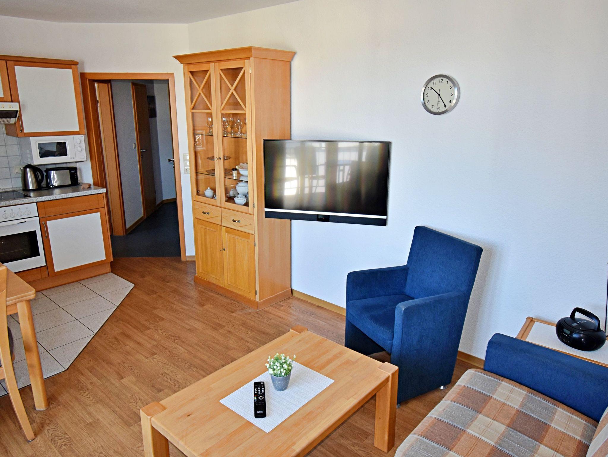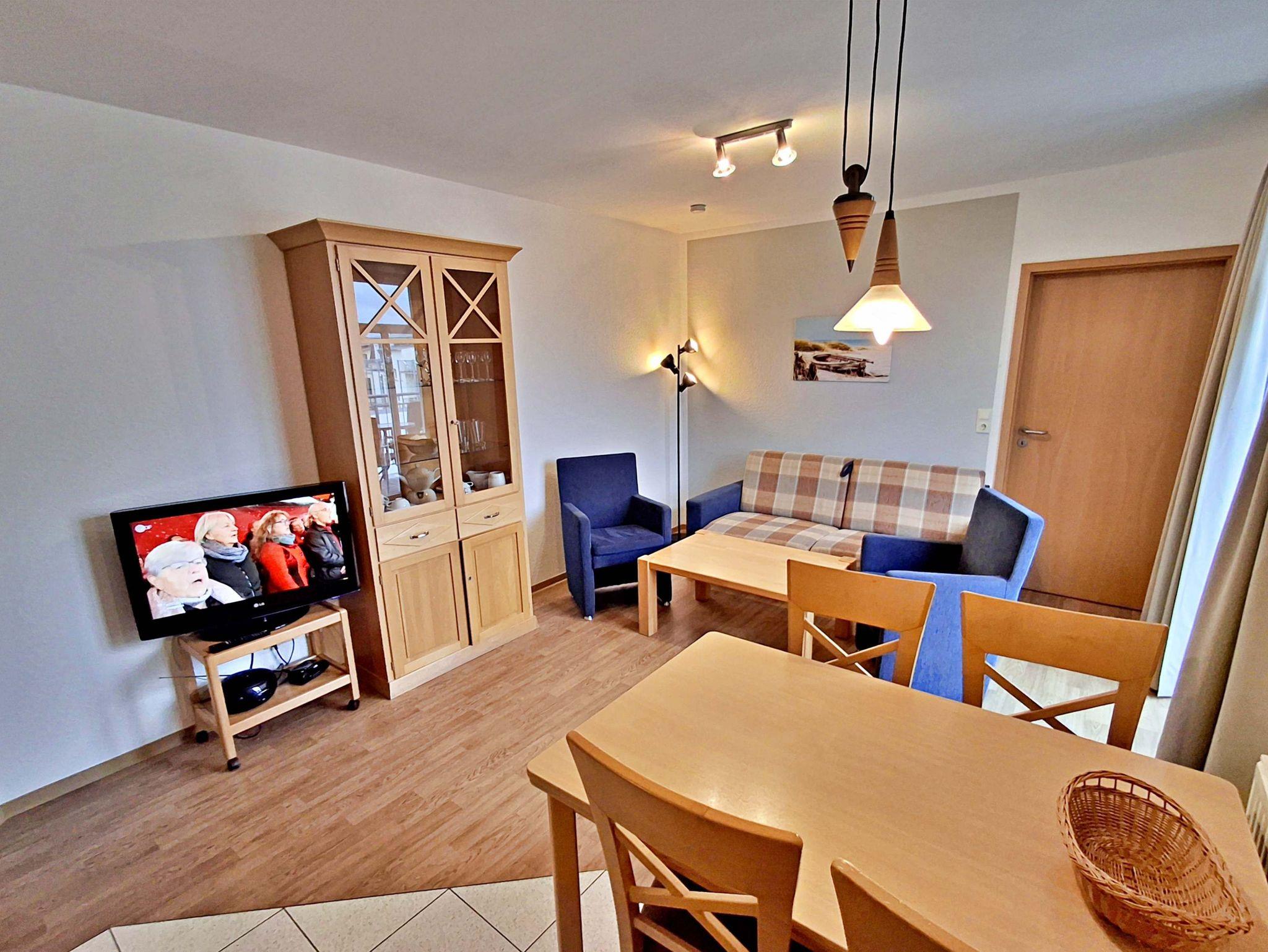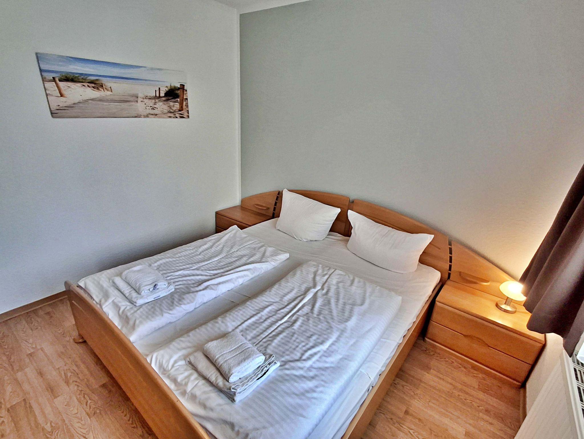 Die freundliche 3-Zimmer-Wohnung Korswandt mit Balkon für max. 4 Erwachsene und 1 Kleinkind bis 3 Jahre befindet in der zweiten Etage im Haus am Kurpark - nur wenige Schritte von der Promenade und dem Strand entfernt. Im Wohnbereich befinden sich neben der gemütlichen Couch auch zwei Sessel sowie ein Esstisch mit 4 Stühlen, der genügend Platz bietet. Vom Wohnbereich aus gelangen Sie auf den Balkon, welcher zur See-/Hofseite gelegen ist. Hier können Sie bereits morgens Ihren Kaffee genießen oder den Abend bei einem Glas Wein ausklingen lassen. Die moderne Küchenzeile mit Ceranherd, Backofen, Geschirrspüler, Mikrowelle, Kaffeemaschine, Wasserkocher und Toaster lässt keine Wünsche offen. Für die Unterhaltung sorgen ein Flachbild-TV, Radio-CD-Player und kostenfreies W-LAN. Das 1. Schlafzimmer verfügt über ein Doppelbett und das zweite Schlafzimmer über 2 Einzelbetten. Das Badezimmer hat DU/WC.