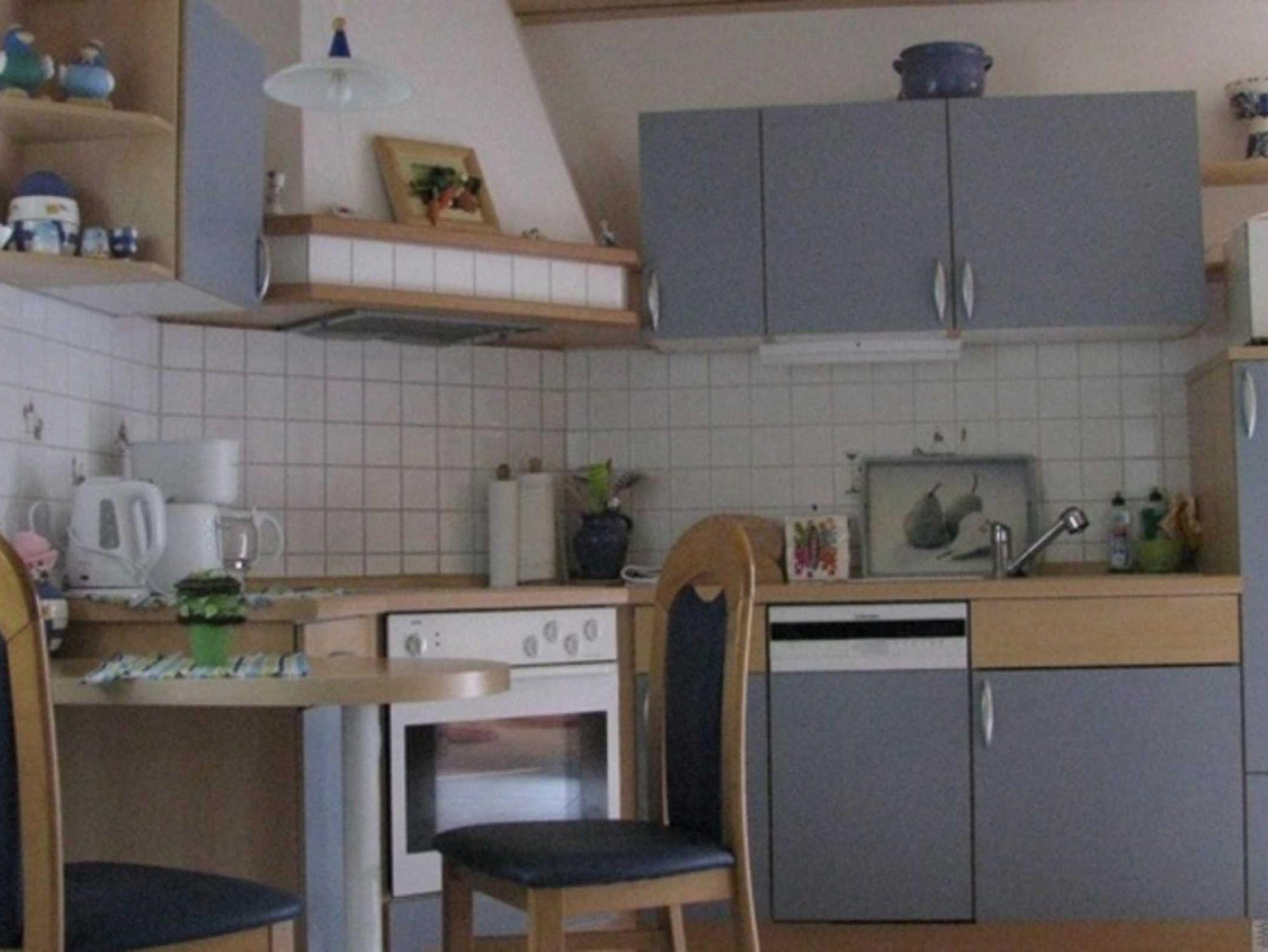1 komb. Wohn- und Schlafzimmer mit integrierter Einbauküche, Bad mit DUWC, Garten mit Sitzecke und Grill, Parkplatz am Haus