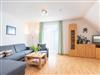 Im Wohnbereich ist eine Schlafcouch als Aufbettung für die 5. und 6. Person vorhanden, in beiden Schlafzimmern befindet sich jeweils ein Doppelbett.