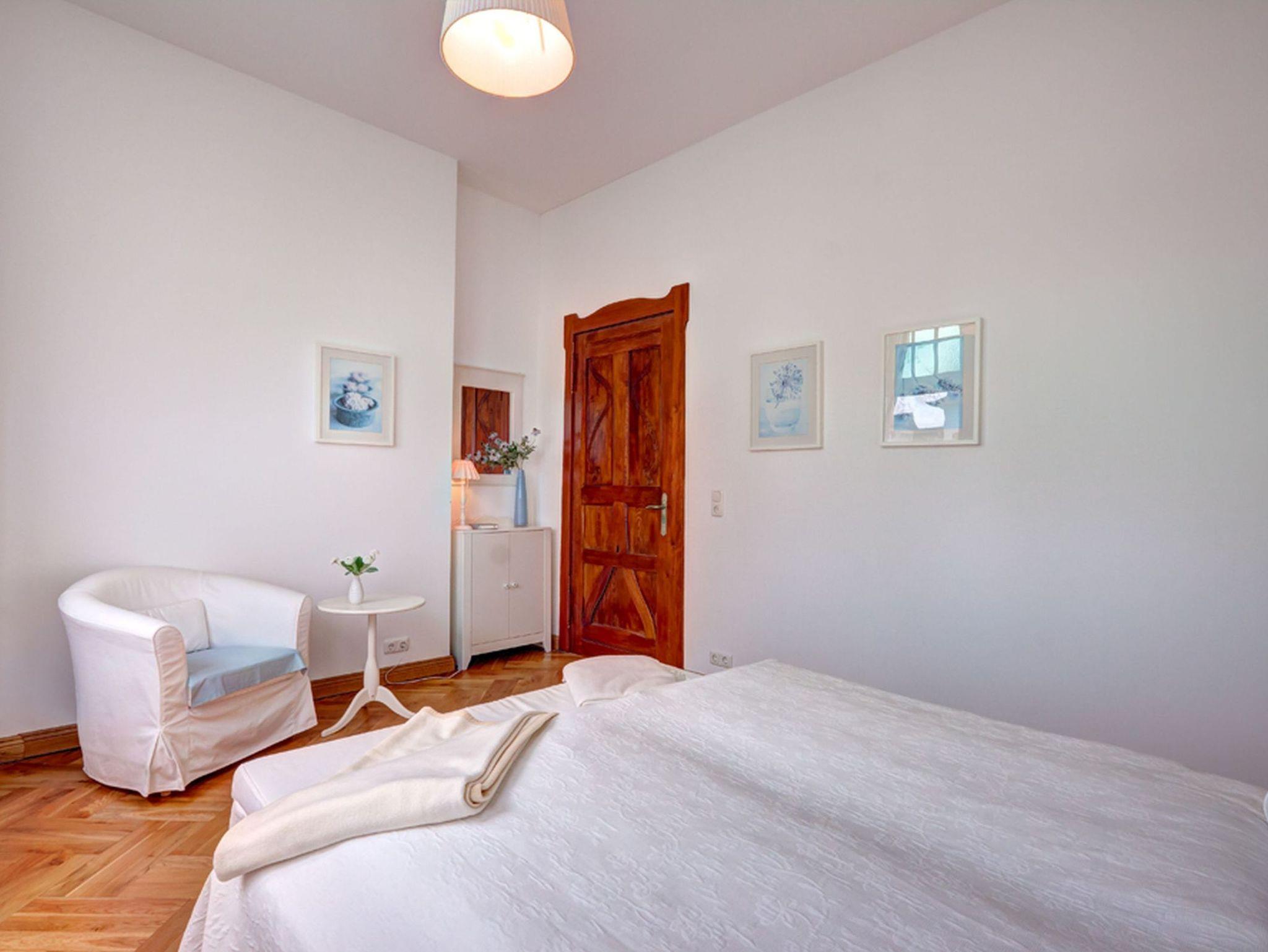Das stilvoll eingerichtete Schlafzimmer mit einem komfortablen 1,60 m breiten Doppelbett sorgt für erholsame Nächte. Sie können die Bettwäsche ganz bequem dazubuchen oder selbst mitbringen ? ganz nach Wunsch!