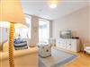 Leichtigkeit und Klarheit strahlt das Appartement Nummer 8 in der 1. Etage aus. Mit viel Liebe zum Detail sind die 57 Quadratmeter eingerichtet, bieten Platz für zwei Personen plus eine Aufbettung (eventuell für ein Kind bis 15 Jahre) auf dem Schlafsofa. Lagom nennen es die Schweden, wenn sich alles, womit man sich umgibt, in einer harmonischen Balance befindet. Das in skandinavischem Landhausstil eingerichtete Zwei-Zimmer-Appartement empfängt Ostseeliebhaber mit genau diesem Lagom. Lichtdurchflutet ist das geräumige Wohnzimmer mit der offenen Loggia, von der aus Sie sogar seitlichen Meerblick haben. Viel Weiß herrscht vor ? kombiniert mit maritimen Farbakzenten und maritimen Accessoires. Das bequeme Sofa, das zu einer Schlafcouch umfunktioniert werden kann, lädt zum Entspannen ein. Ein großer Flat-TV mit DVD-Player gehört zur Ausstattung des Raumes dazu. In der glasumrandete Veranda befindet sich ein schöner Essplatz für drei Personen. Die Küche ist voll ausgestattet mit Herd, Geschirrspüler, Kühl-Gefrierschrank, Kaffeevollautomat, Mikrowelle und Wasserkocher. Auch Geschirr finden Sie in den Schränken. Ein gemütlicher Rückzugsort ist das Schlafzimmer mit großem Doppelbett (1,80 m x 2,00 m). Passend zum mondänen Charme der alten Bädervilla ist die Ausstattung des Tageslichtbades äußerst schick und nobel. Eine ebenerdige Dusche, die viel Platz zum ausgiebigen Berieseln bietet, ein großzügiger Waschtisch, WC und Bidet gehören dazu. Handtücher liegen für Sie bei Anreise bereit. Und auch das Bett ist bezogen. Das WLAN ist kostenfrei und in der Tiefgarage ist für Sie der Stellplatz Nummer 8 reserviert.