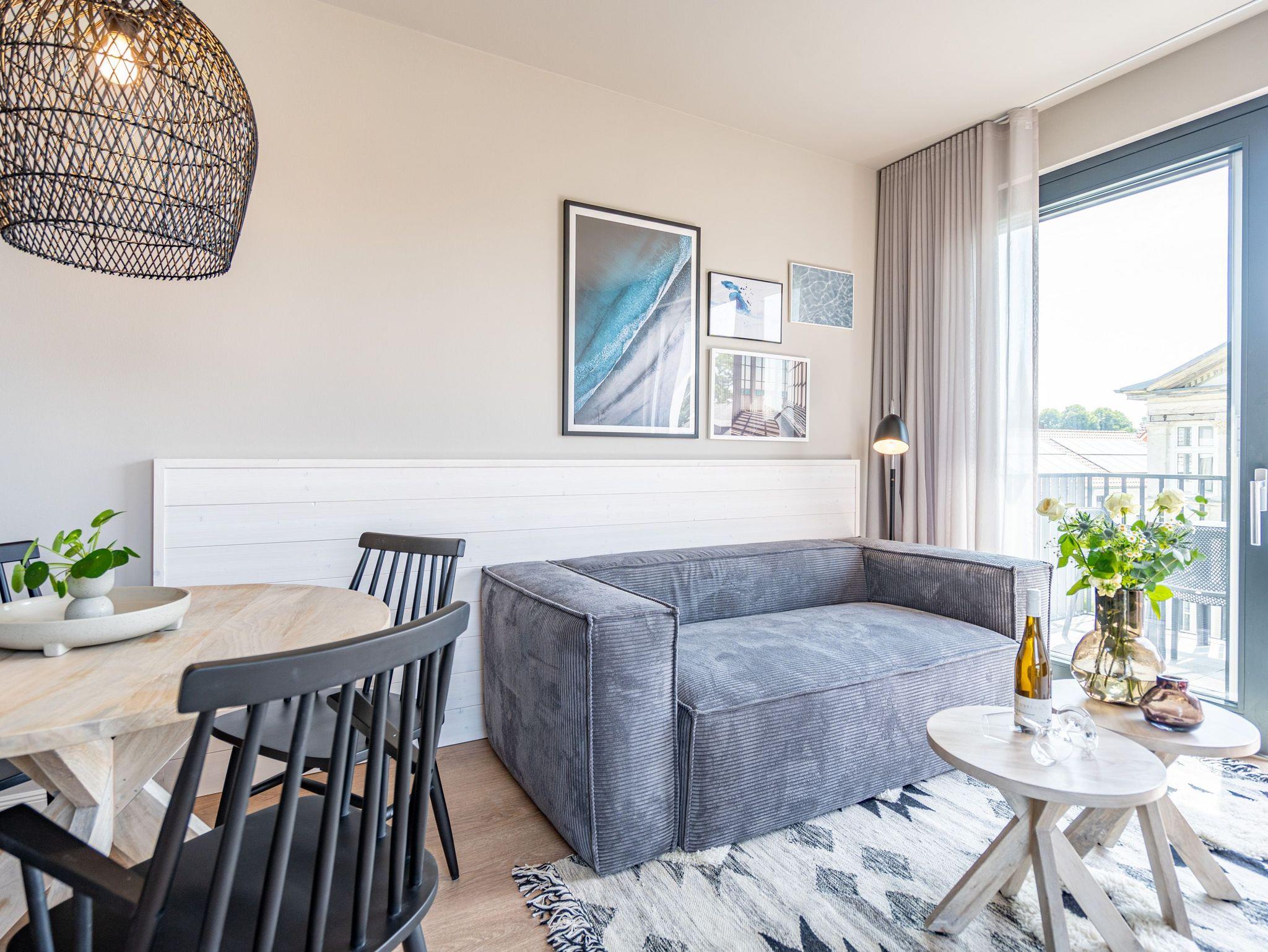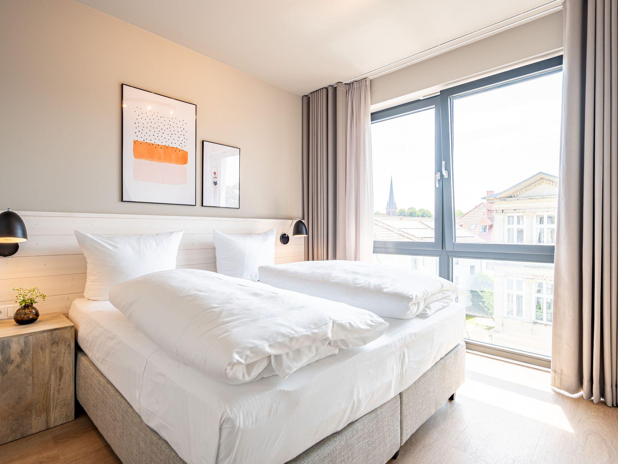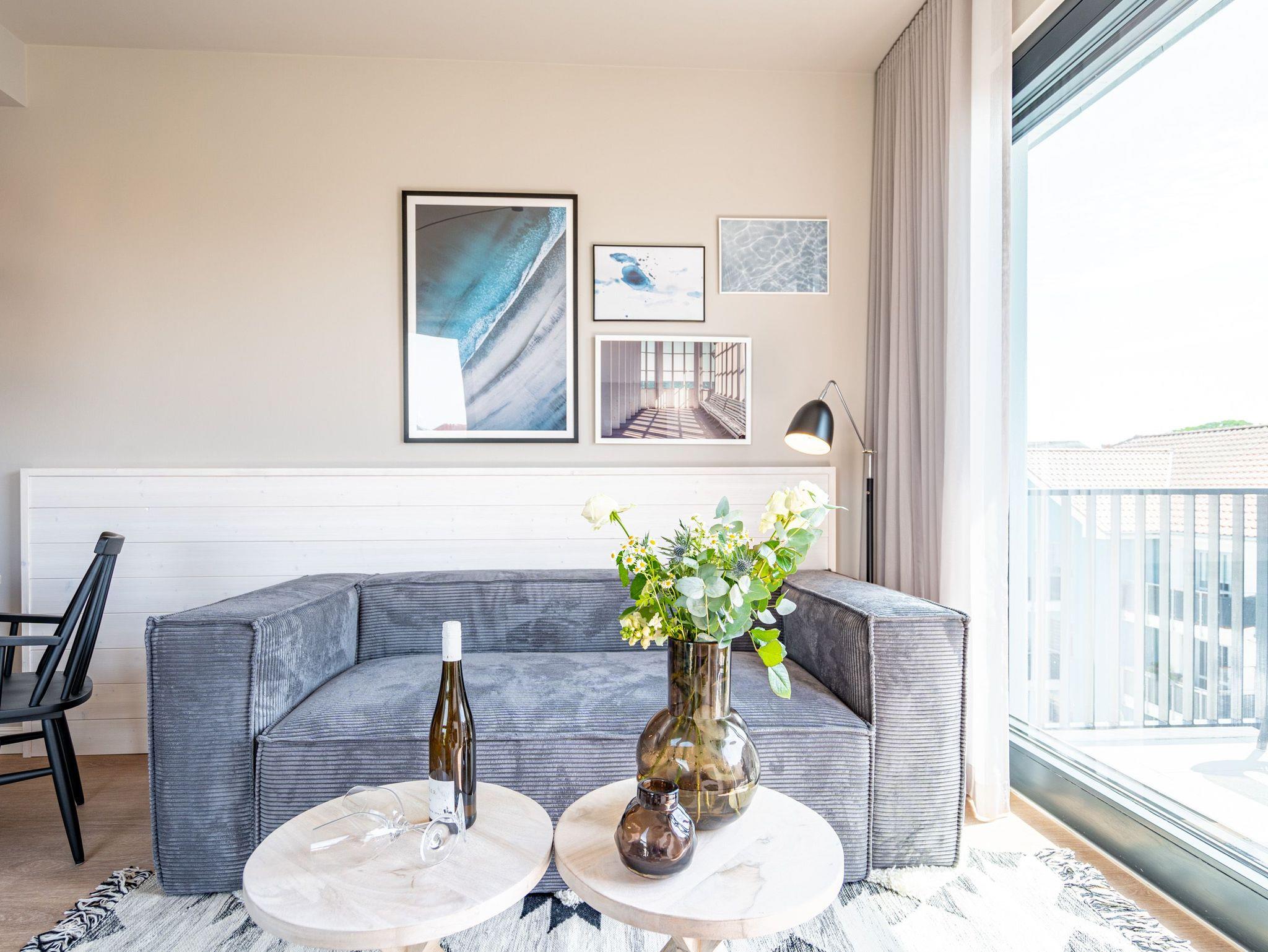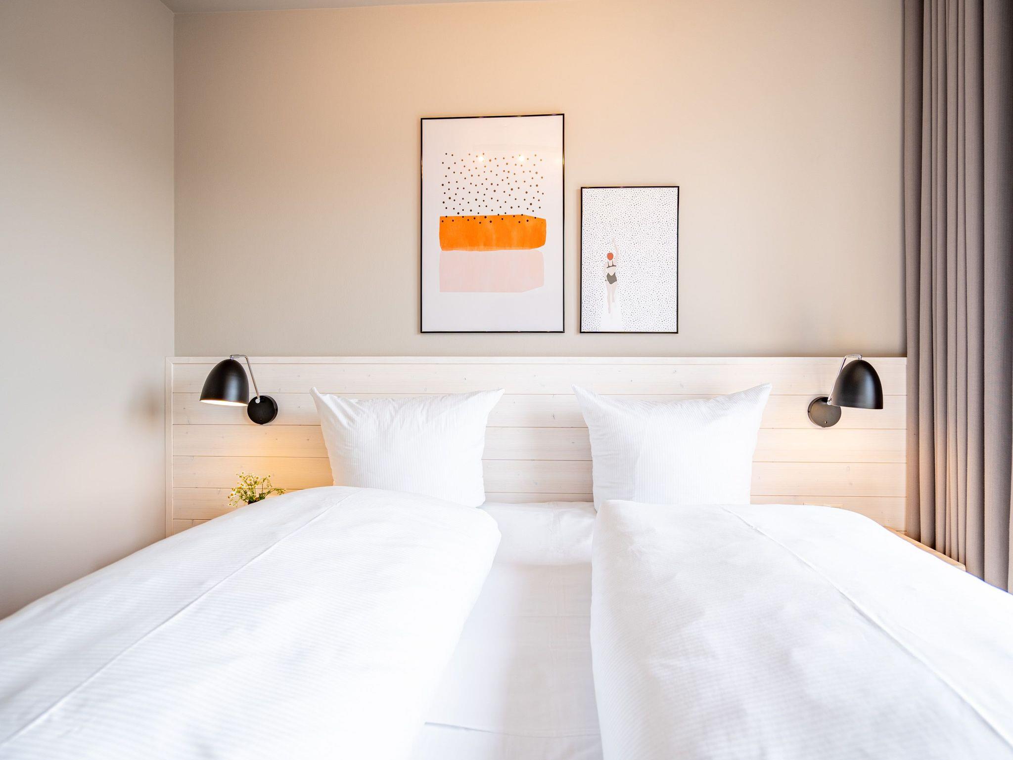 Einfach entspannt in den Tag hineinleben, die Ostsee, die direkt vor der Haustür rauscht, genießen und den Kopf auf neue Gedanken bringen in einer Umgebung, die rundum glücklich macht ? das und vieles mehr bietet das 3-Raum-Appartement B 3.7 (Haus B) in der 3. Etage der Strandterrasse bis zu 4 Personen. Die mit viel Liebe eingerichteten 58 Quadratmeter schaffen Urlaubsfeeling vom Feinsten. Das Möbel-und Lichtkonzept ist genau aufeinander abgestimmt. Und jedes Detail wurde eigens für dieses Traumdomizil angefertigt oder ausgesucht. So zum Beispiel die gemütliche Sofa-Sitzgruppe im Wohnzimmer, die zum ausgiebigen Entspannen einlädt. Der Flat-TV (50 Zoll) sorgt für Unterhaltung und ein Elektrokamin (ohne Wärmeabgabe) für eine kuschelige Atmosphäre. Ein großer Esstisch bietet genug Platz für ausgefeilte Mahlzeiten, aber auch zum Klönen und Schnacken. In der offenen Küche können Sie sich Dank der hochwertigen Elektrogeräte wie einem 4-Platten-Induktionsherd, einem Backofen, einem Toaster und sogar einer Nespresso-Kapselmaschine kulinarisch austoben und ausprobieren. Zur Wohnung gehört ein Süd-Balkon, den Sie vom Wohnzimmer aus betreten können. Genießen Sie auf ihm die Sonnenseite der Insel. Essen unter freiem Himmel, während Ihnen die Ostseebrise um die Nase weht, ist ein besonderes Erlebnis, bei dem das Essen gleich nochmal so gut schmeckt. Für erholsame Nächte stehen Ihnen zwei Schlafzimmer zur Verfügung, jeweils mit einem komfortablen Boxspringdoppelbett (1,80m x 2,00m), einem Kleiderschrank und einem Flat-TV (43 Zoll). Zwei moderne Bäder mit Dusche, Waschtisch und WC geben Raum für Privatsphäre. Das Appartement verfügt außerdem über einen PKW-Stellplatz in der Tiefgarage. So können Sie stressfrei in Ihrem Feriendomizil ankommen und sofort in die Urlaubsstimmung eintauchen.