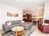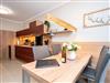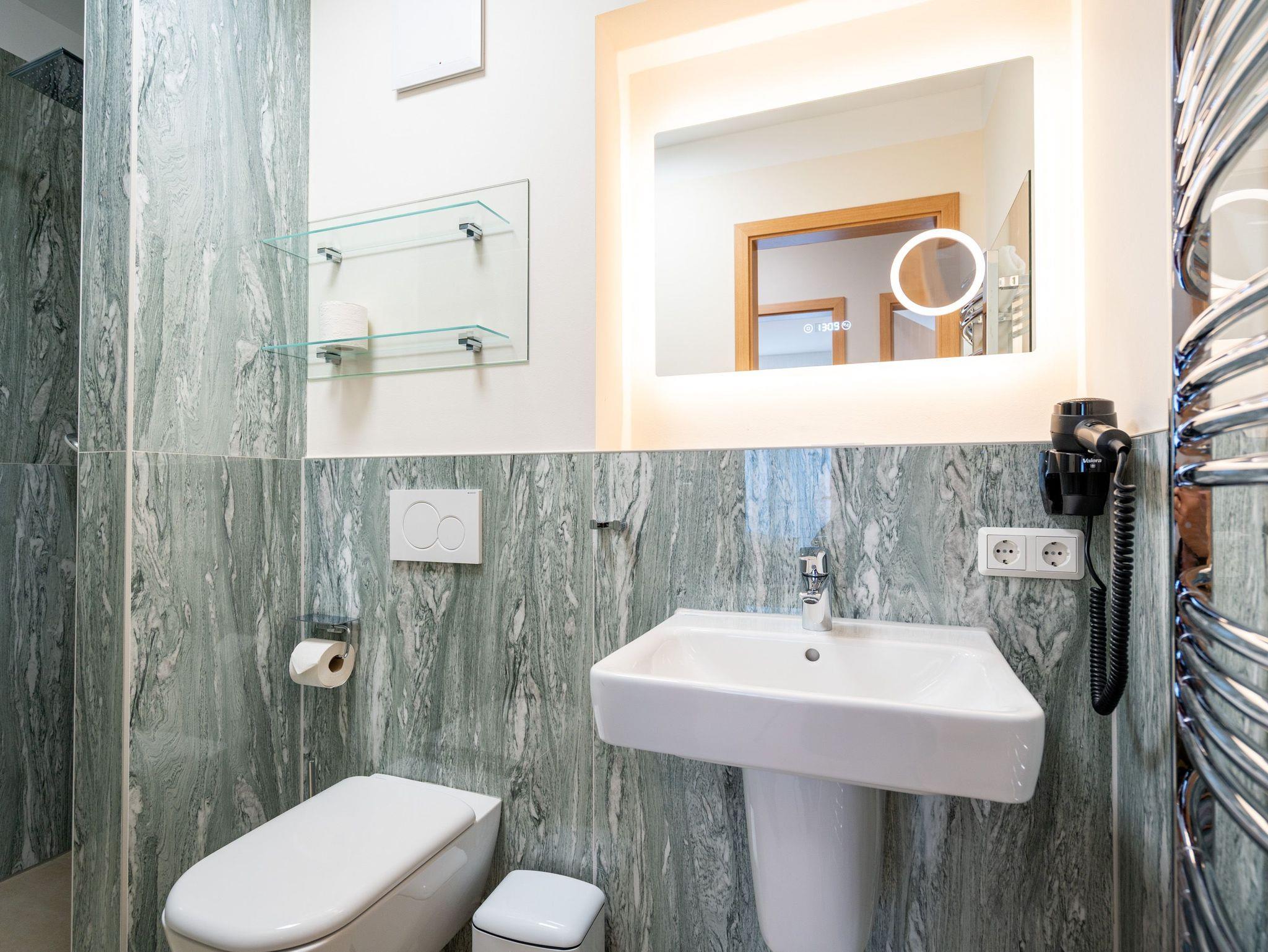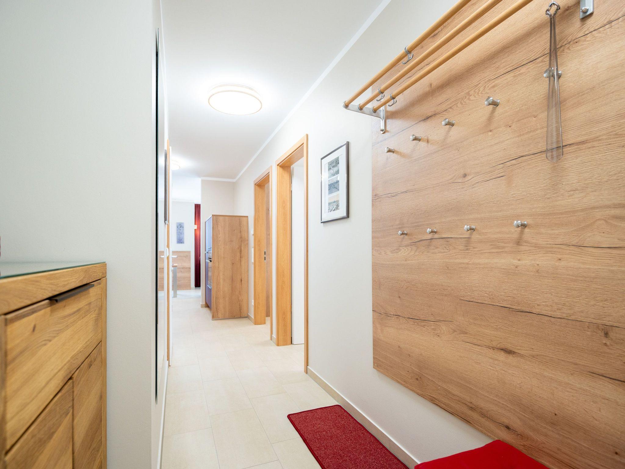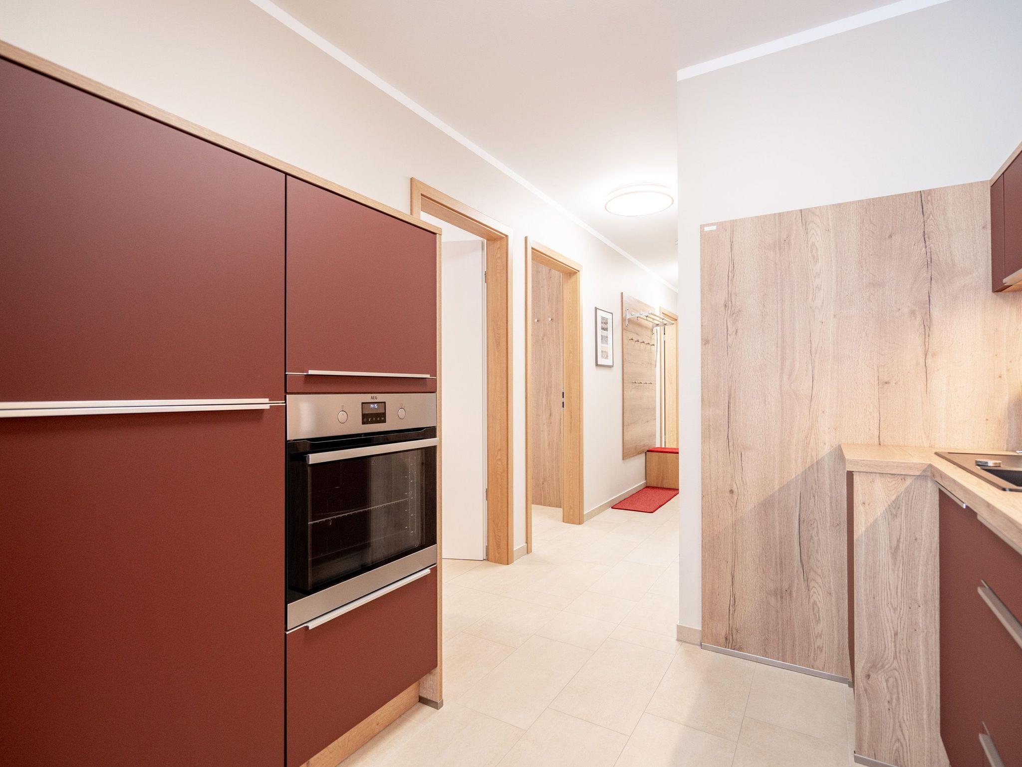 Die 3-Raum-Ferienwohnung Nr. 02 im Erdgeschoss des Quartier 6 bietet auf 73 m² Platz für bis zu 4 Personen und überzeugt mit einer modernen und komfortablen Ausstattung. Der offene Wohnbereich verfügt über eine voll ausgestattete Küchenzeile mit Induktionsherd, Mikrowelle und Backofen. Ein Essplatz für 4 Personen lädt zu gemeinsamen Mahlzeiten ein, während die gemütliche Sitzgruppe mit Flat-TV und ein per Fernbedienung gesteuerter Gas-Kamin für entspannte Abende sorgen. Von hier aus gelangen Sie auf die sonnige Süd-West-Terrasse mit einer Fläche von 10 m², die einen seitlichen Blick in Richtung Ostsee bietet. Die Ferienwohnung verfügt über zwei Schlafzimmer, jeweils mit einem Doppelbett (1,60 m x 2,00 m), Kleiderschrank und Flat-TV ausgestattet. Es stehen Ihnen zwei Bäder zur Verfügung: das erste innenliegende Bad bietet eine Dusche, einen Waschtisch, einen Haarfön und ein WC, während das zweite Bad ebenfalls mit Dusche, Waschtisch und WC ausgestattet ist und zusätzlich über eine Infrarotwärmekabine verfügt. Ein Hauswirtschaftsraum mit Waschmaschine und Trockner sorgt für zusätzlichen Komfort. Zur Wohnung gehört ein PKW-Stellplatz in der Tiefgarage sowie ein eigener Abstellraum im Keller für Fahrräder.