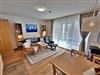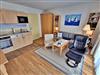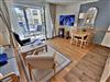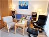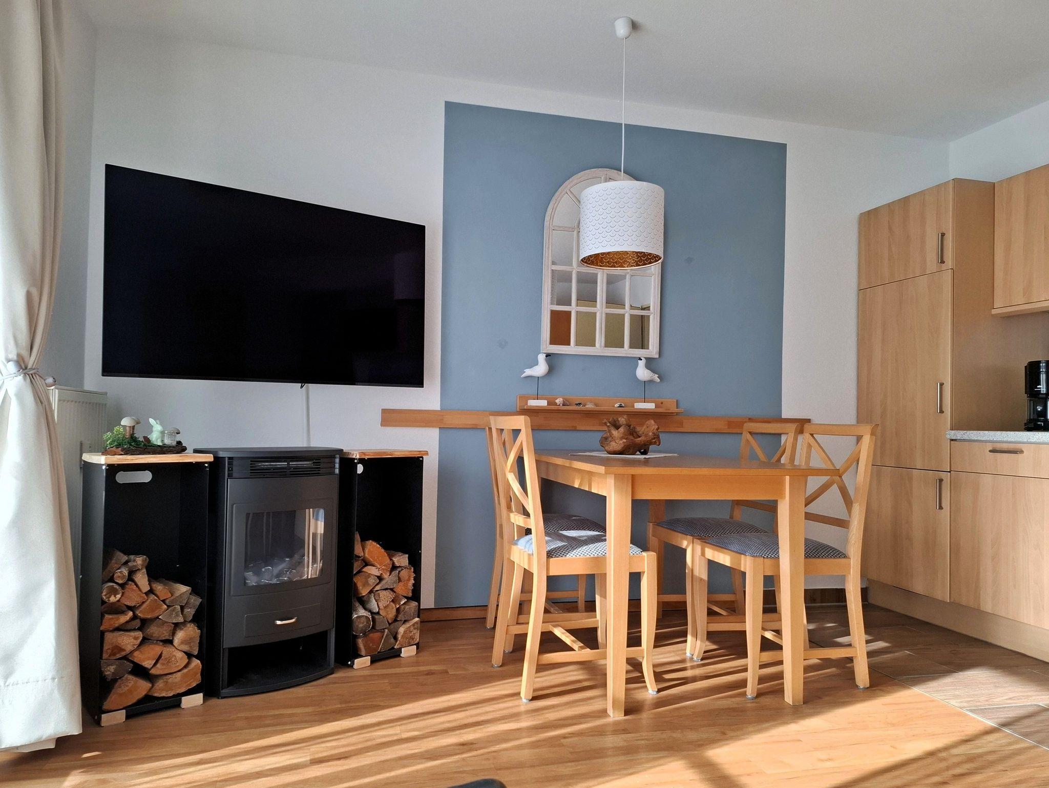 Die 47 qm große 2-Raum-Ferienwohnung befindet sich im zweiten Obgeschoss der Appartementanlage (Fahrstuhl vorhanden, ein stufenloses Erreichen der Wohnung ist gegeben). Die Wohnung verfügt über ein Wohnzimmer mit einem gemütlichen Sofa, Sessel, Elektro-Kamin sowie Esstisch mit 4 Stühlen. Für Unterhaltung sorgen ein internetfähiger Flachbild-TV, eine Stereo-Anlage, DVD-Player und eine Spielesammlung. Die vollständig ausgestattete Küche mit Ceranherd, Backofen, Mikrowelle, Kühlschrank mit Gefrierfach und Spülmaschine lässt keine Wünsche offen. Im Schlafzimmer befinden sich ein Doppelbett, ein Schlafsessel (90cm x 190 cm) und ein zweiter internetfähiger Flachbild-TV. Das Tageslicht-Bad ist mit Dusche/WC, Haarfön nebst Kosmetikspiegel ausgestattet. Eine möblierte Loggia zur Süd-Seite lädt zum Sitzen und Verweilen ein. WLAN steht Ihnen kostenfrei zur Verfügung. Ein Kinderbett mit Wäsche sowie ein Hochstuhl können auf Anfrage gegen eine Gebühr von einmalig 50 € vom Verwalter zur Verfügung gestellt werden.